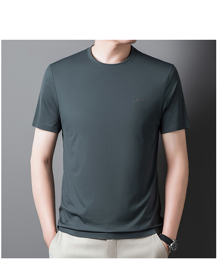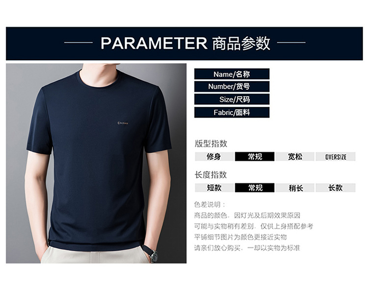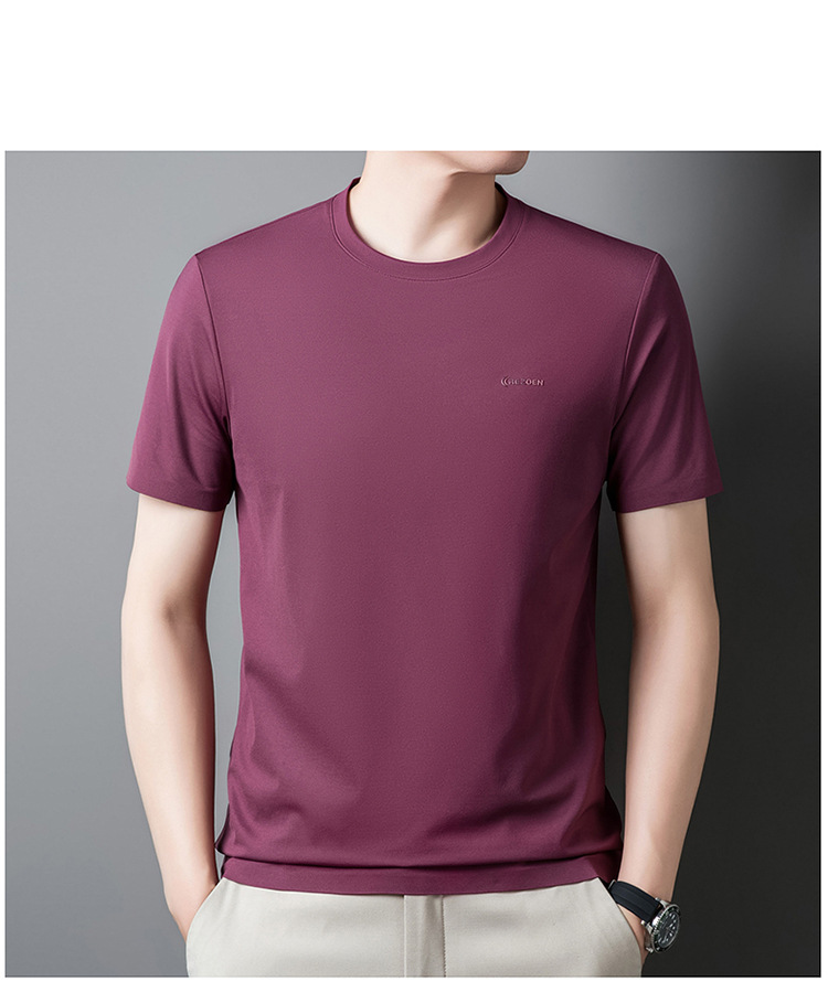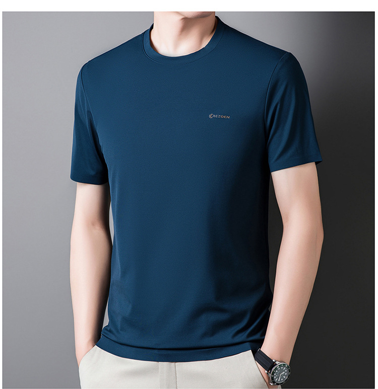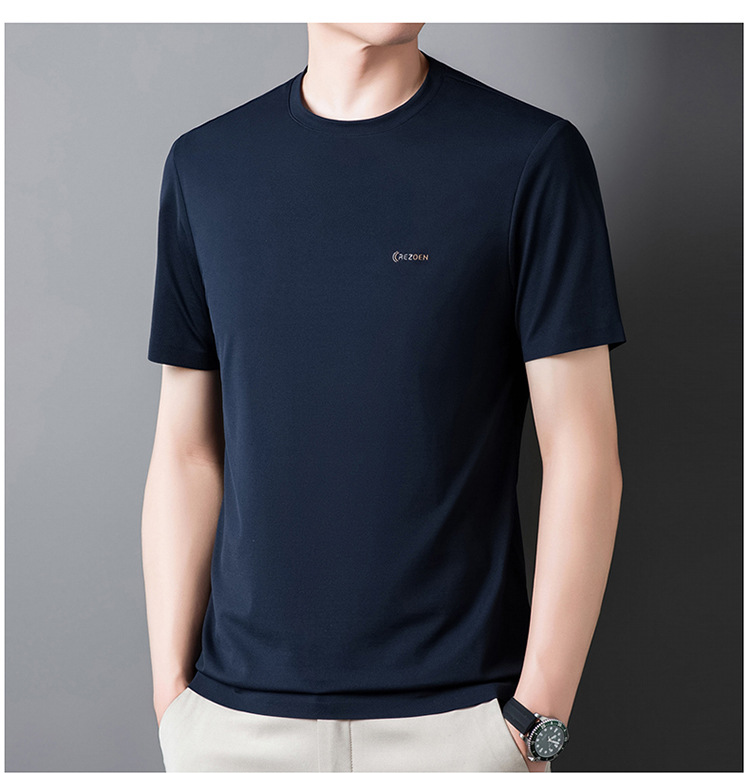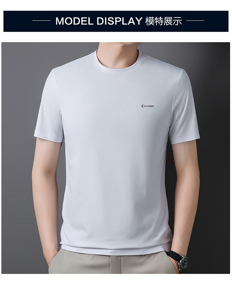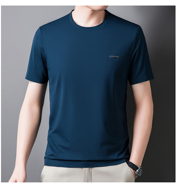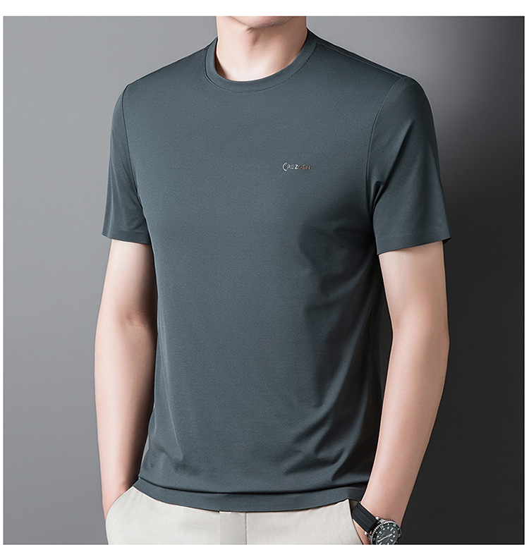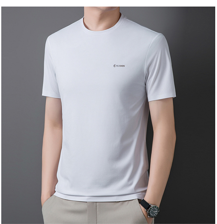 无痕含桑蚕丝圆领短袖T恤男士夏季时尚休闲打底衫冰丝上衣男代发