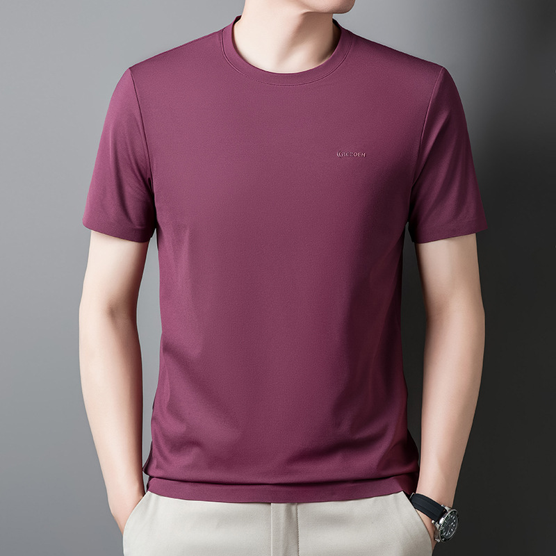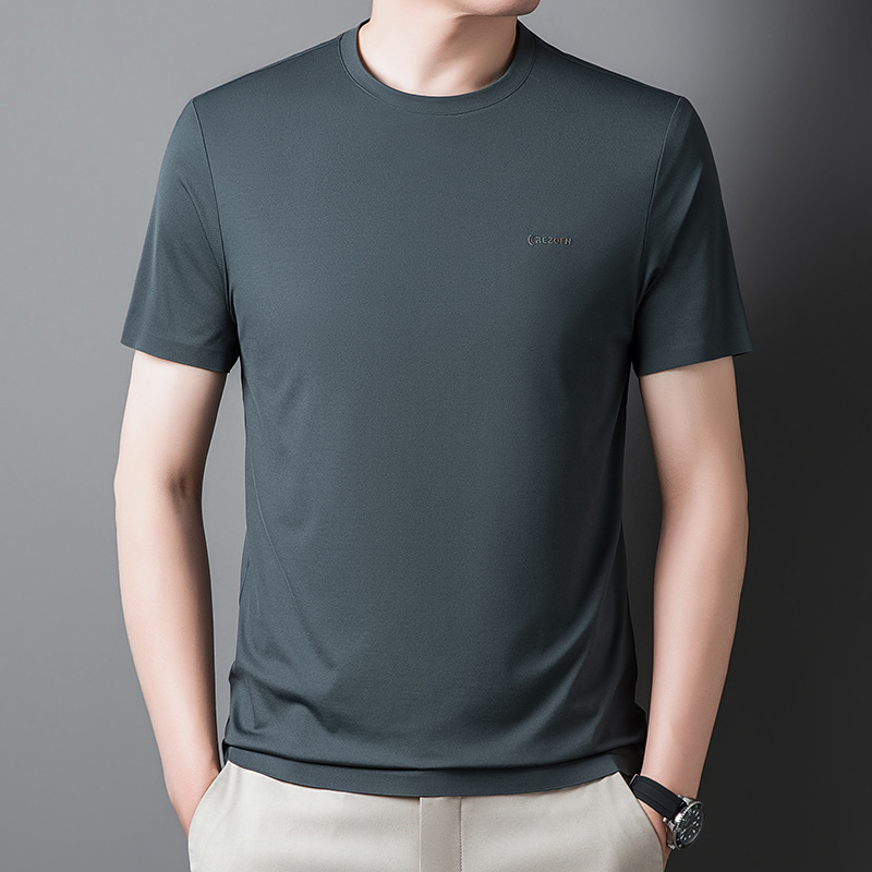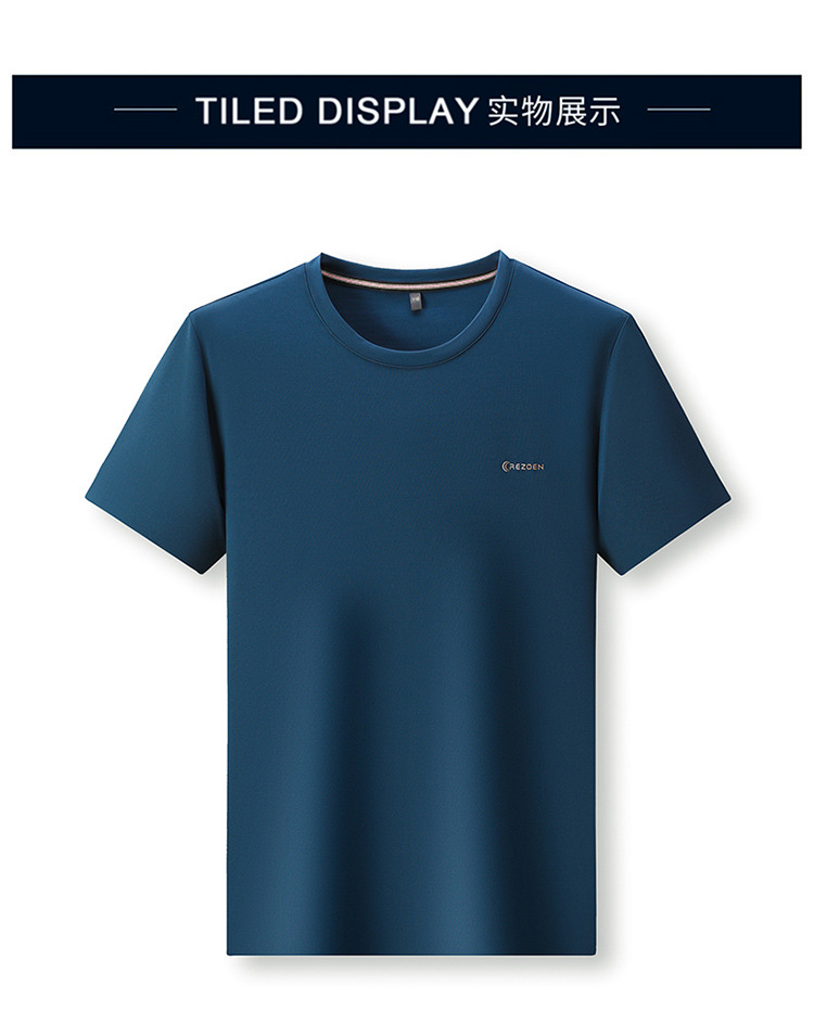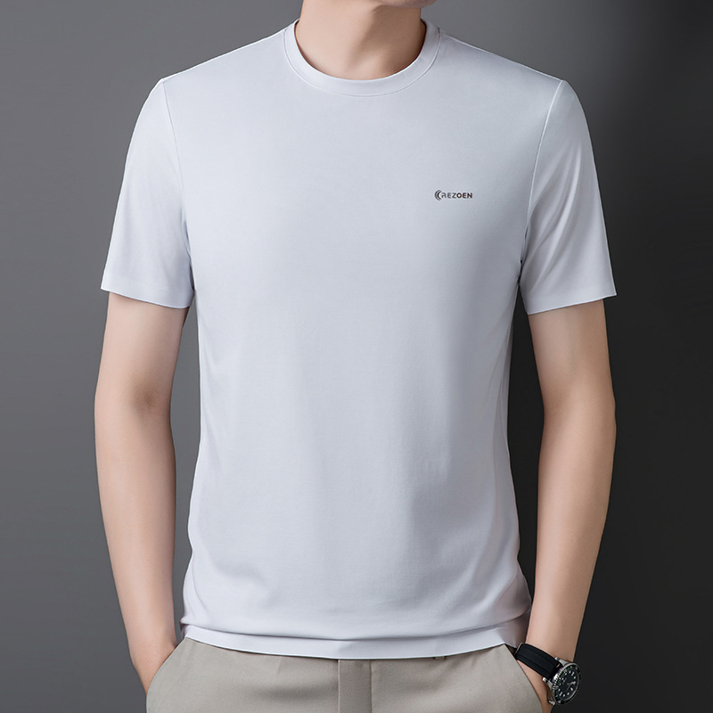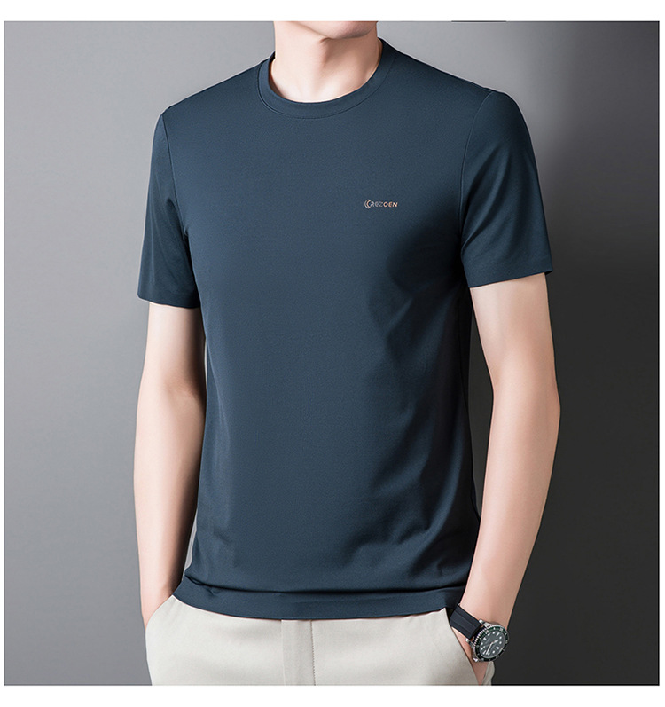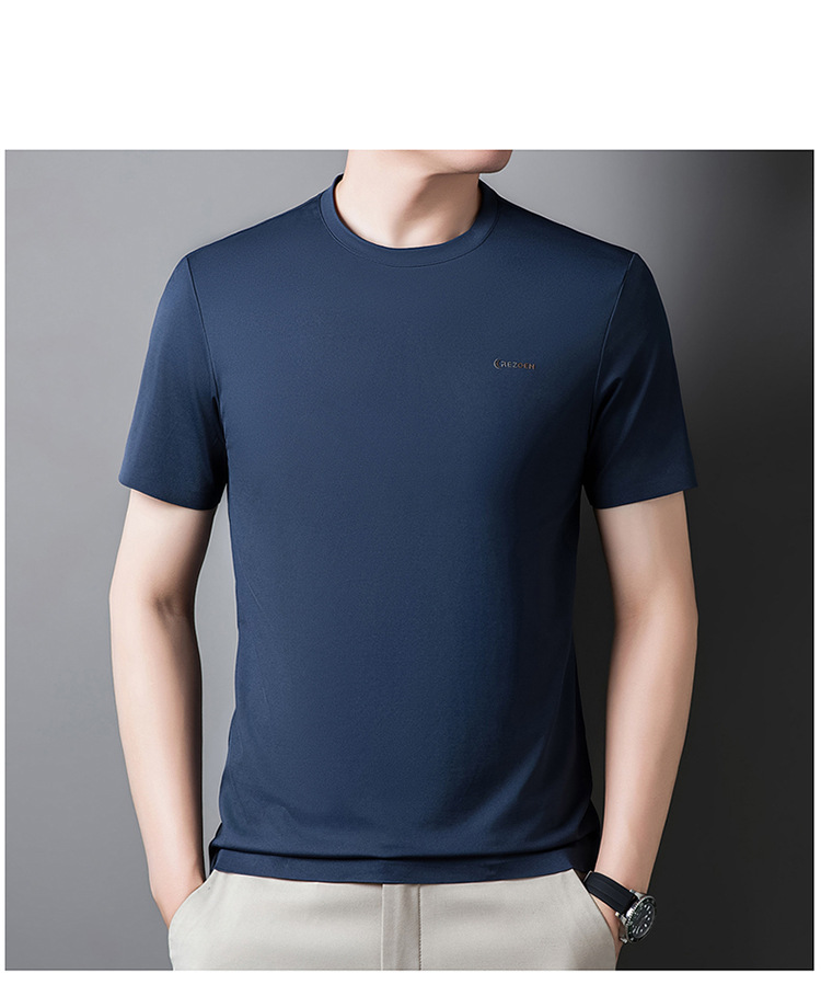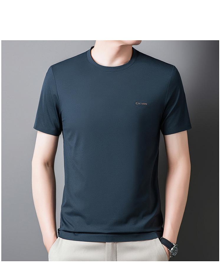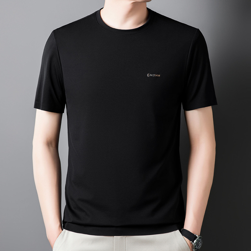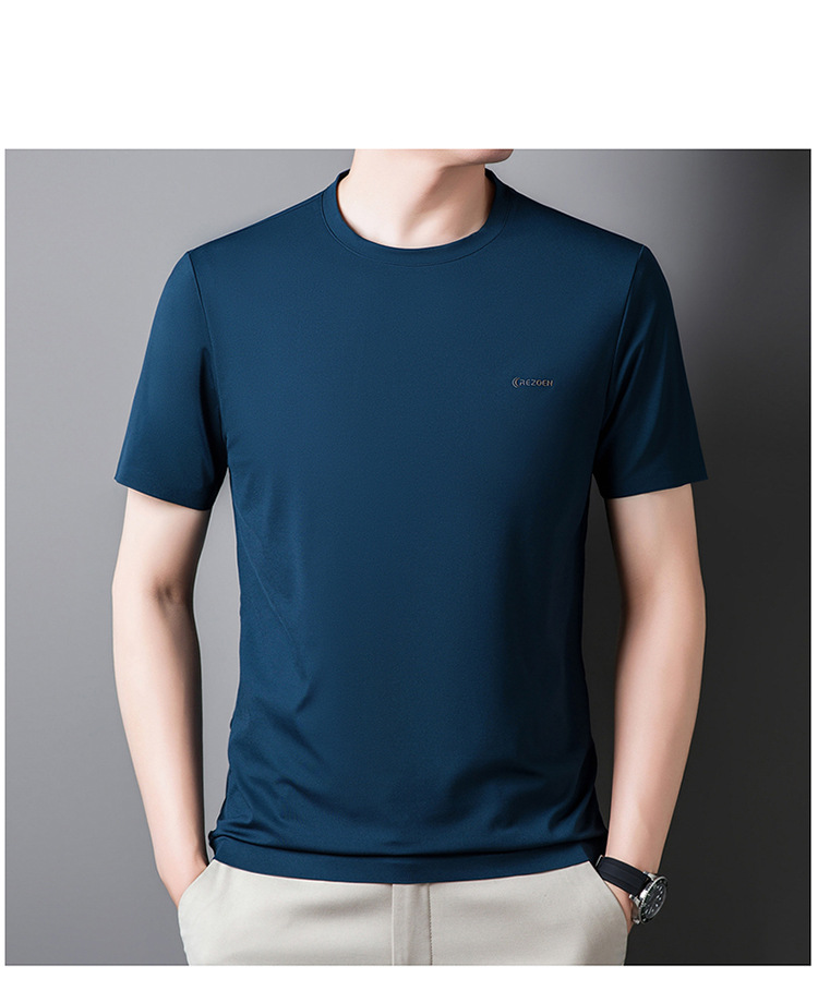 无痕含桑蚕丝圆领短袖T恤男士夏季时尚休闲打底衫冰丝上衣男代发