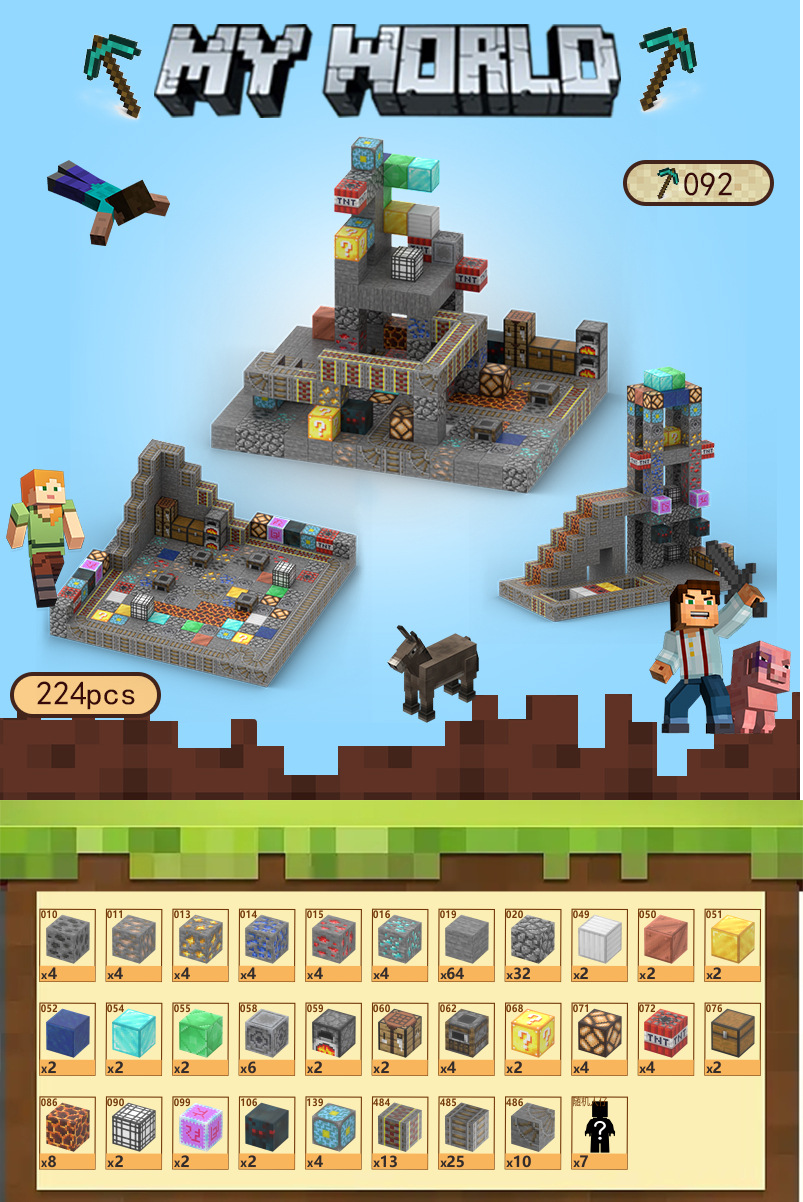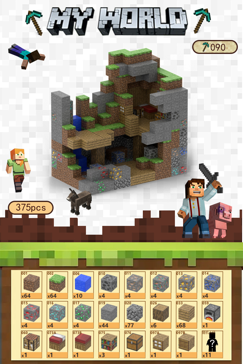 磁力方块玩具我的世界磁力积木矿洞钻石拼搭人仔地下探索儿童益智