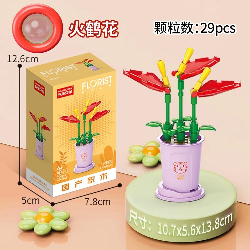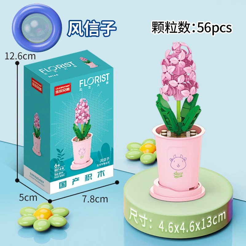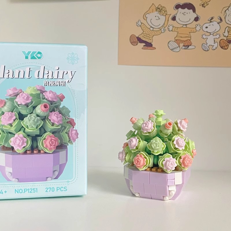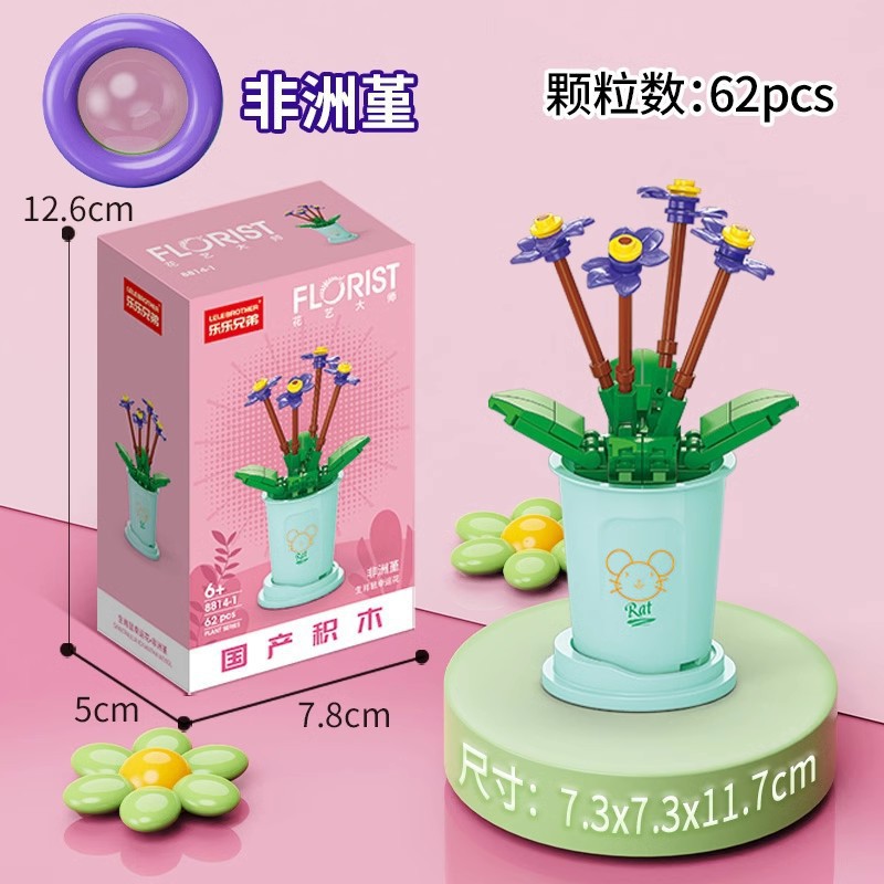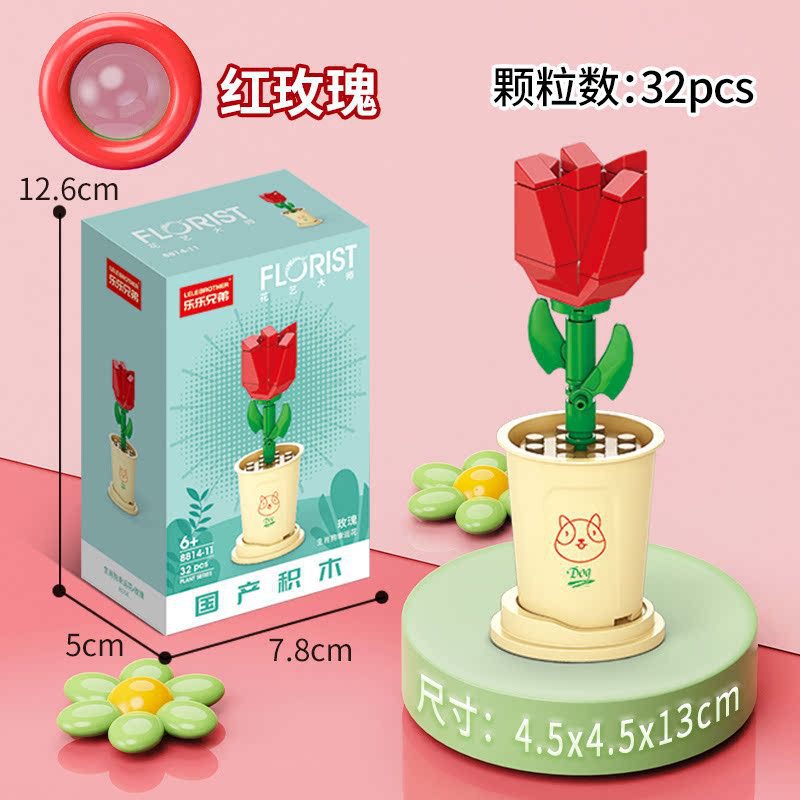兼容乐高积木多肉盆栽玫瑰花束永生花植物拼装玩具女孩生日礼物
