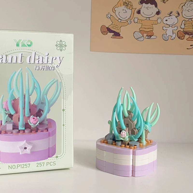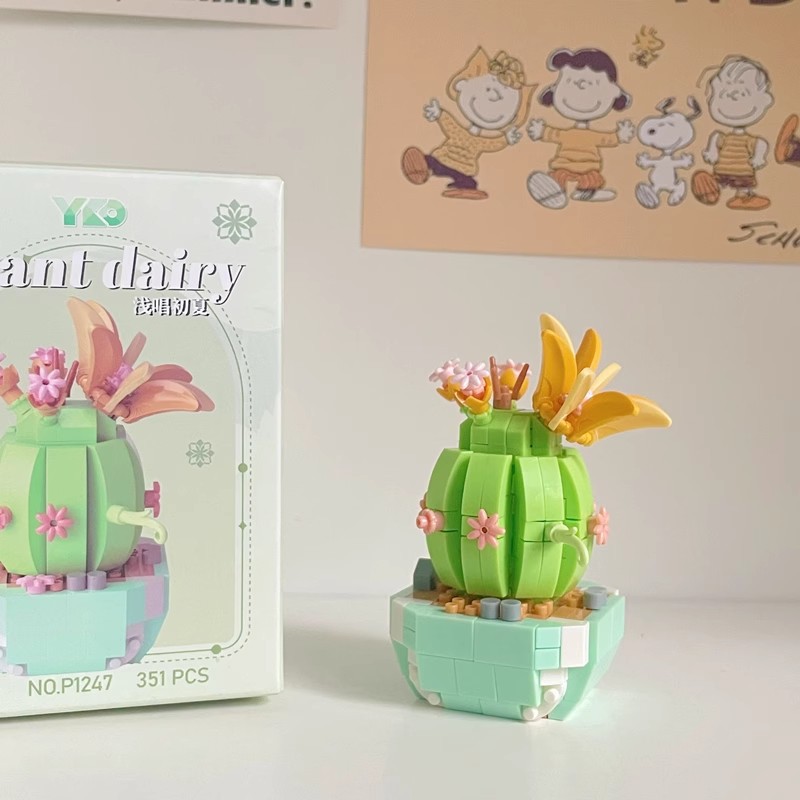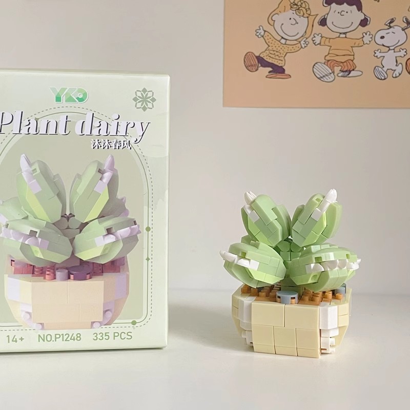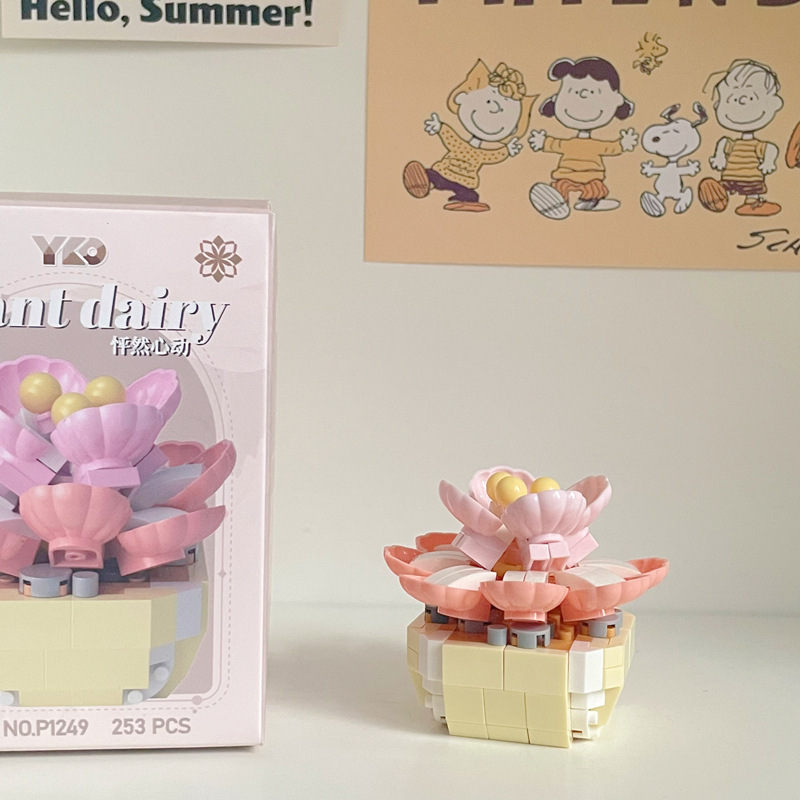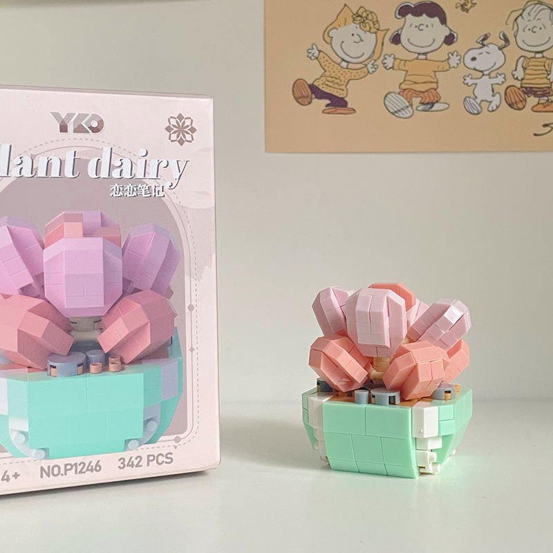 兼容乐高积木多肉盆栽玫瑰花束永生花植物拼装玩具女孩生日礼物