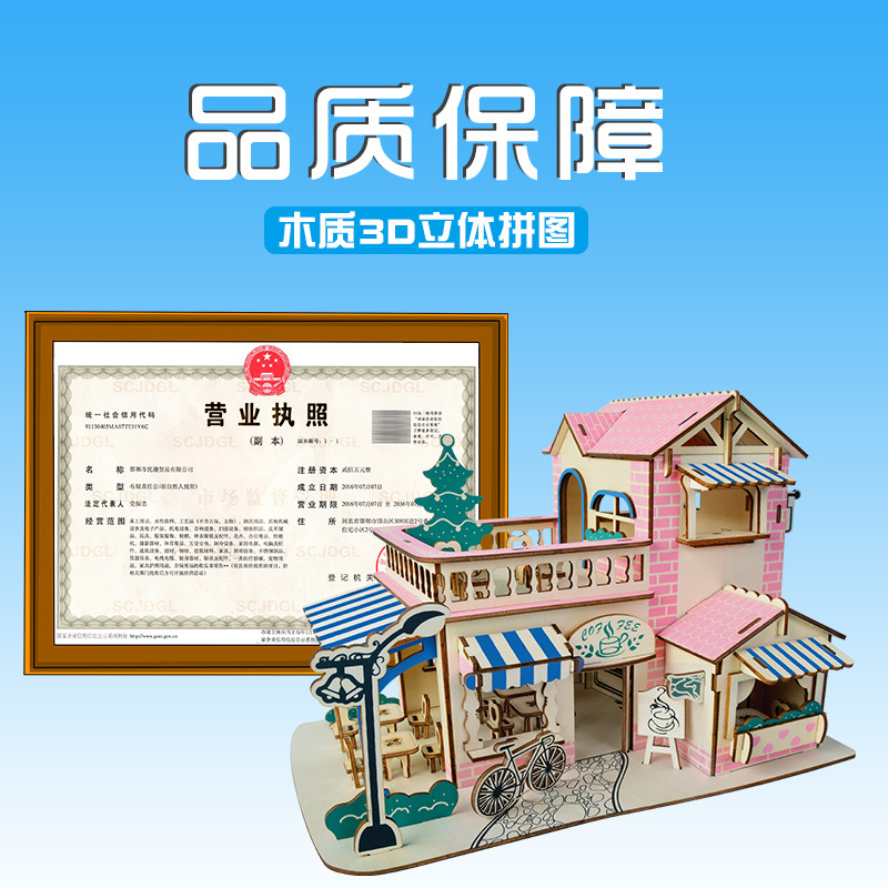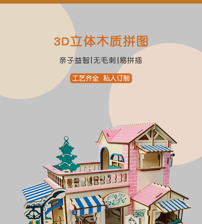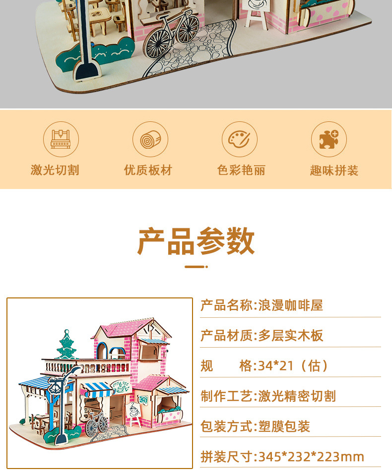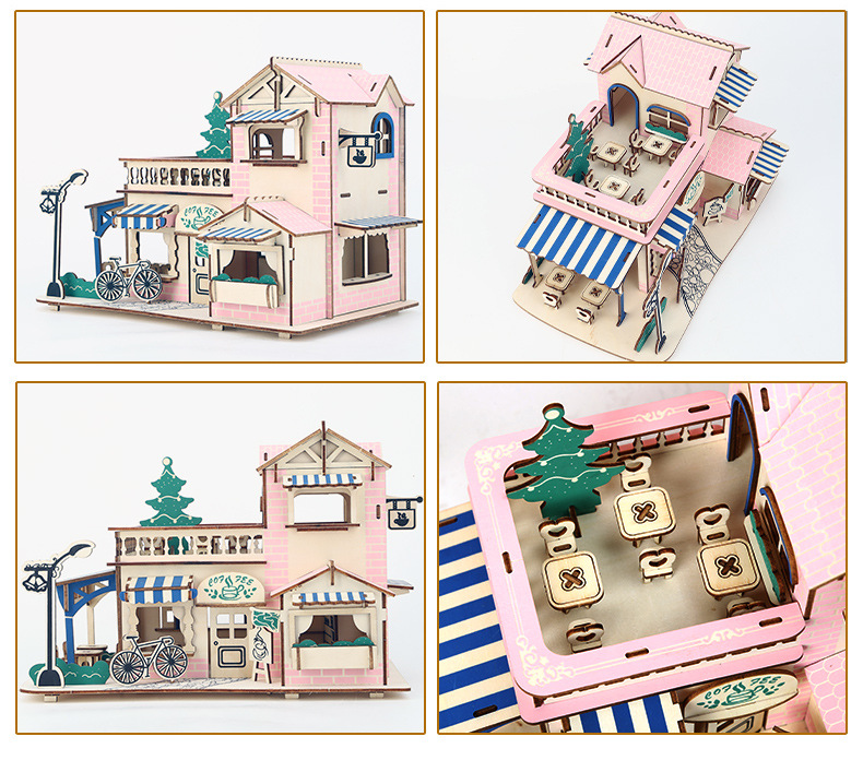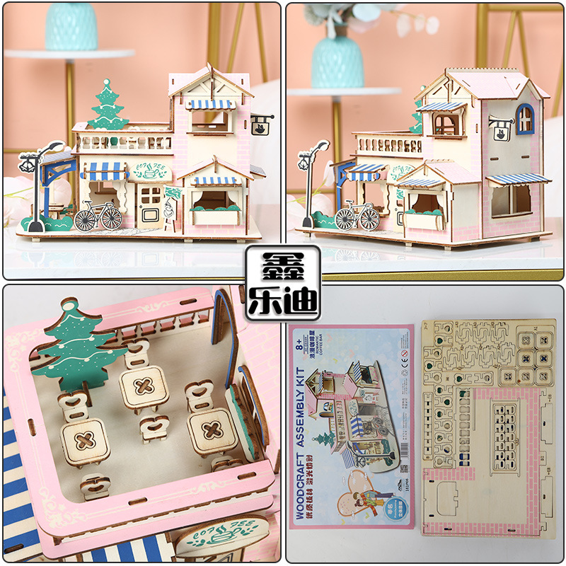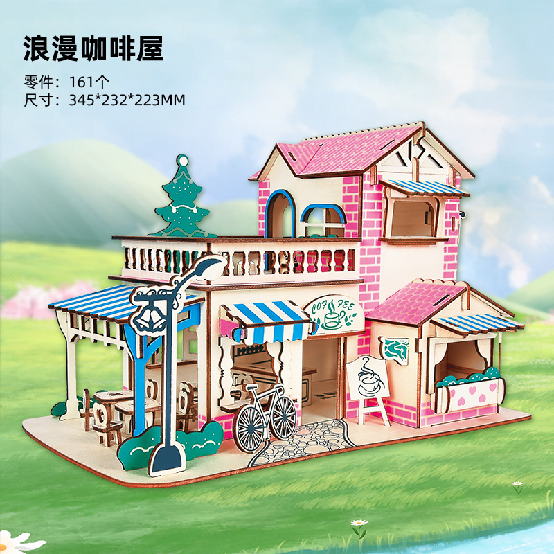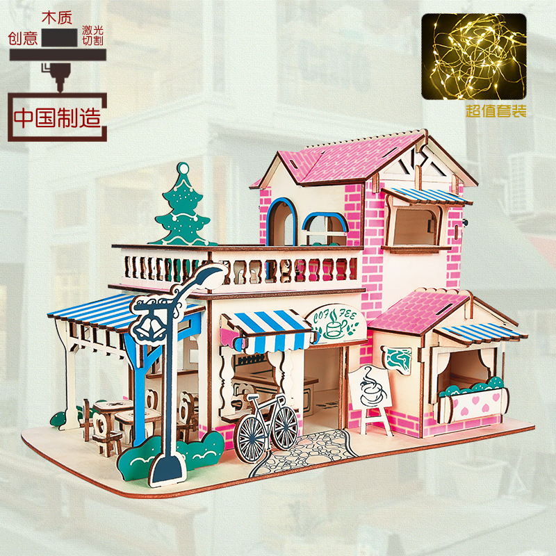 场景模型木制浪漫咖啡屋 女孩公主房装饰摆件diy拼装积木立体拼图