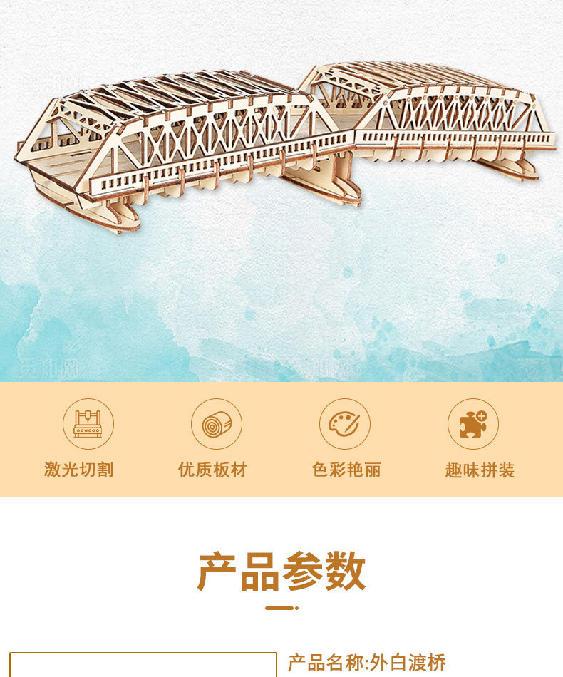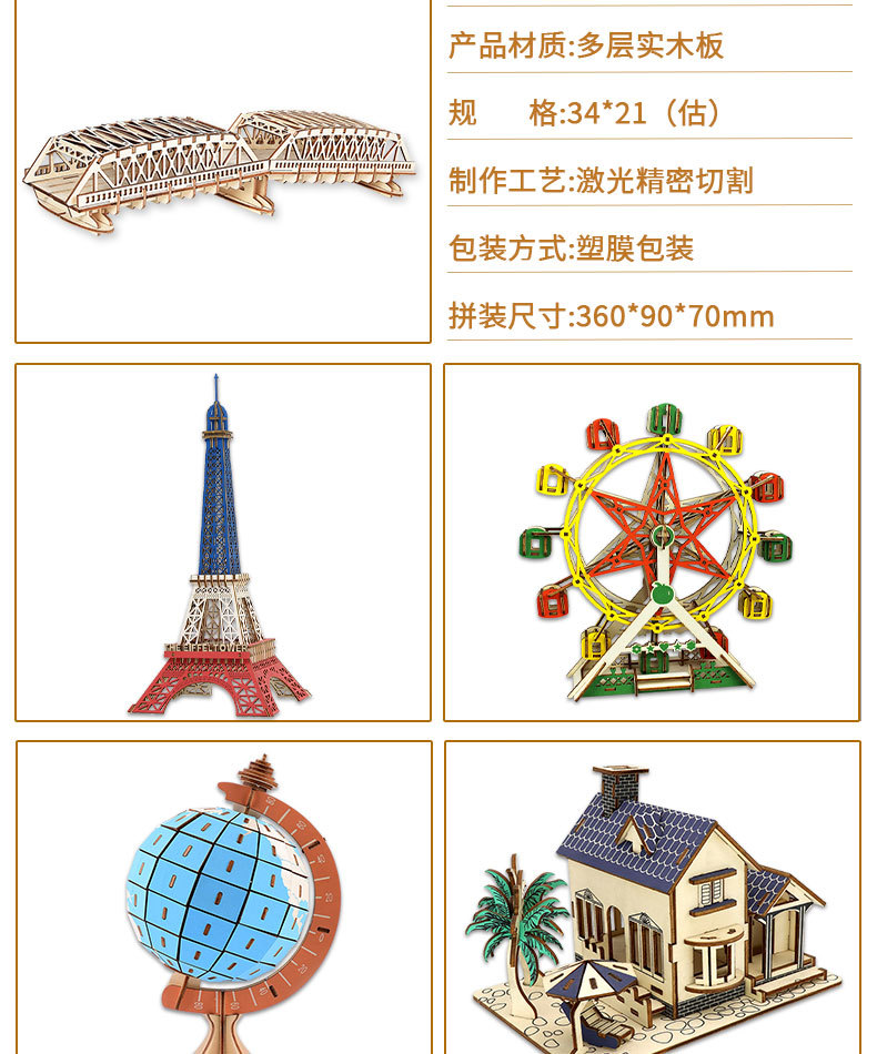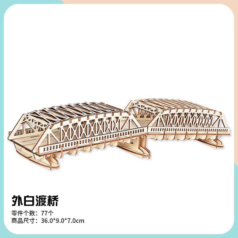 上海外白渡桥场景摆件模型 木质立体拼图建筑diy积木玩具厂家直销
