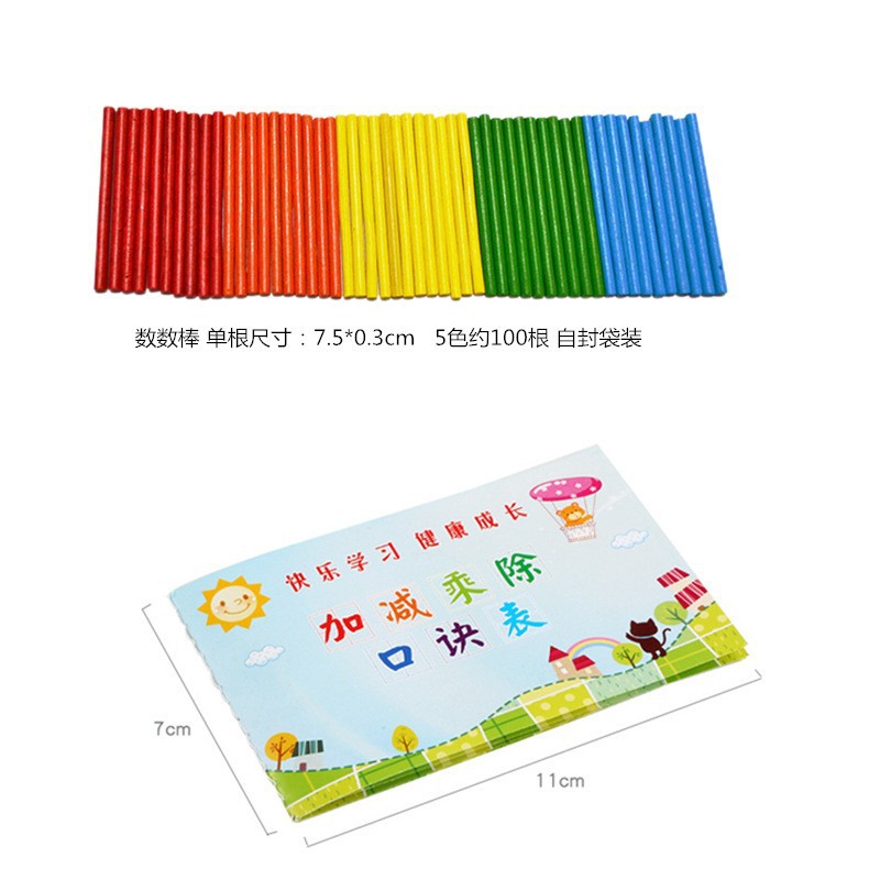 加减乘除口诀表九九乘法表儿童彩色算数木质数数棒学习棒教具批发