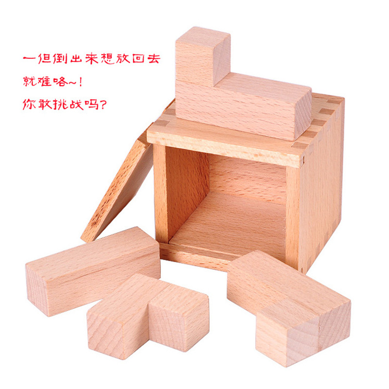 木制孔明锁鲁班锁 桌面解压益智玩具机关盒奇思妙想 斜放积木块
