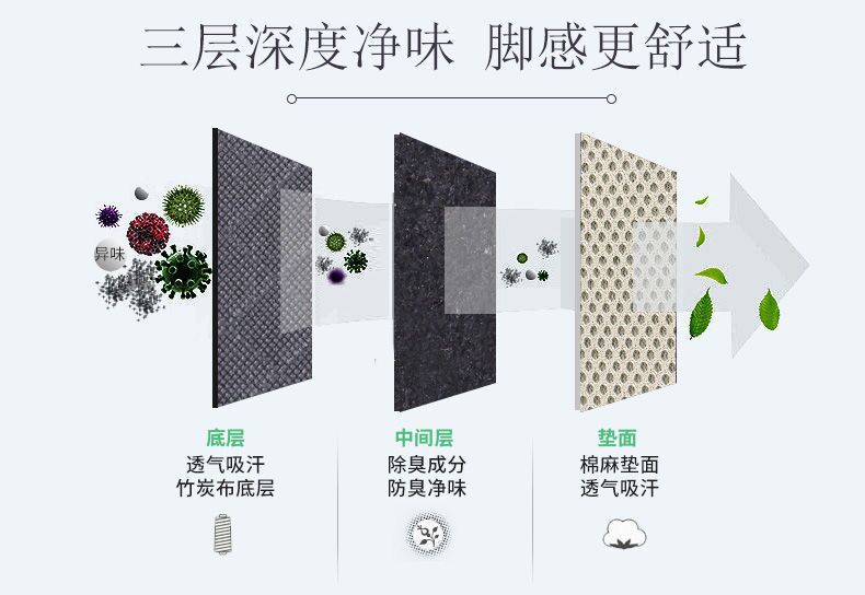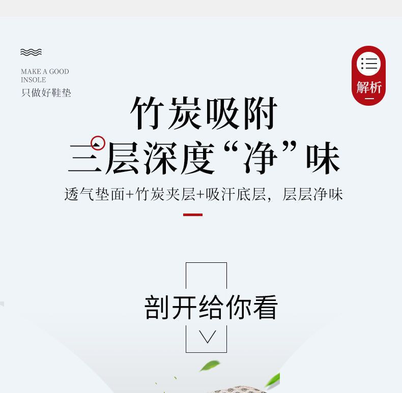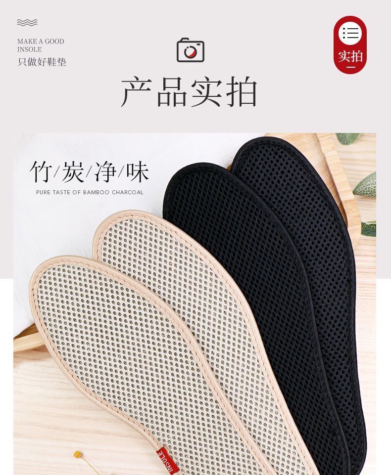 步云竹炭防臭鞋垫男女透气吸汗除臭软底舒适加厚运动鞋皮鞋鞋垫
