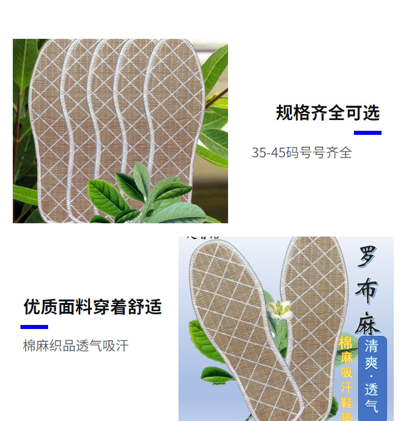 四季罗布麻竹炭透气亚麻减震按摩电商跑江湖地摊绿布鞋垫厂家批发