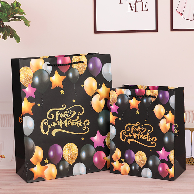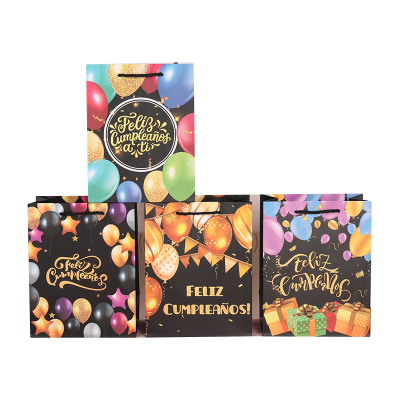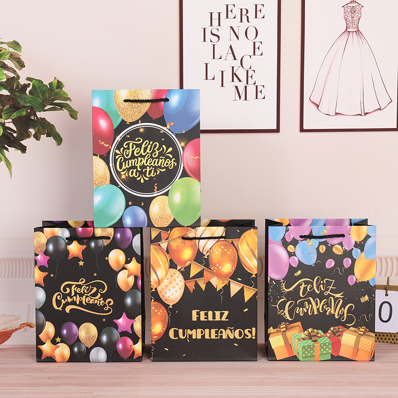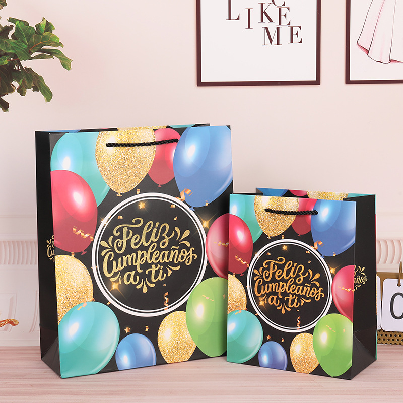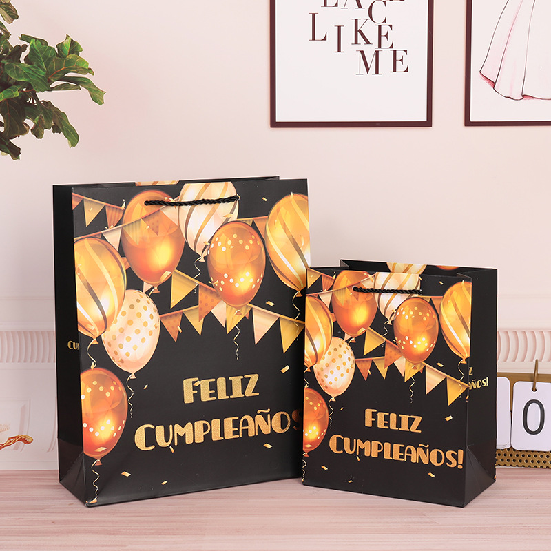 西班牙语生日快乐礼品袋 白卡烫金纸袋排队生日礼物包装手提袋子
