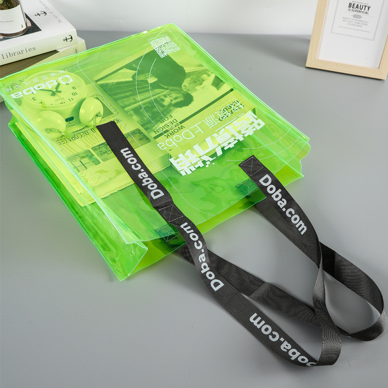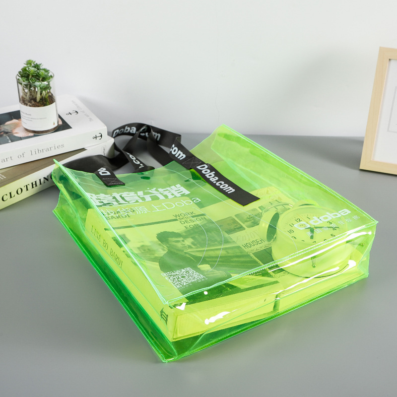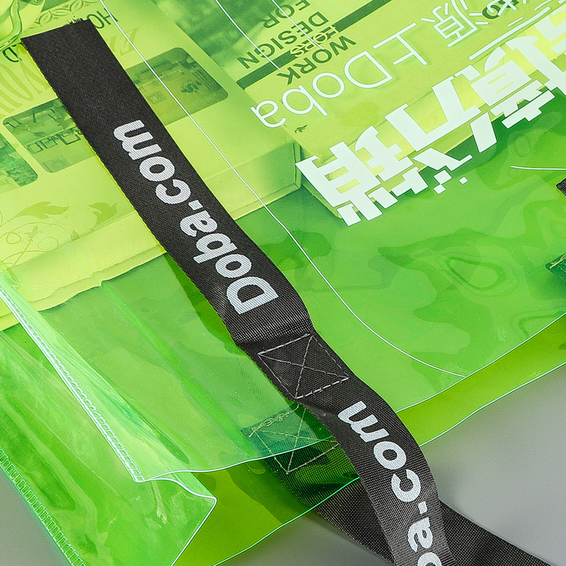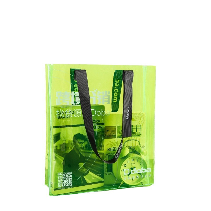 【源头厂家】绿色透明pvc手提购物袋可印logo 商务礼品广告袋定做