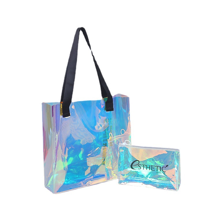 幻彩镭射手提包 pvc透明手提袋定制 网红ins风炫彩果冻包定制