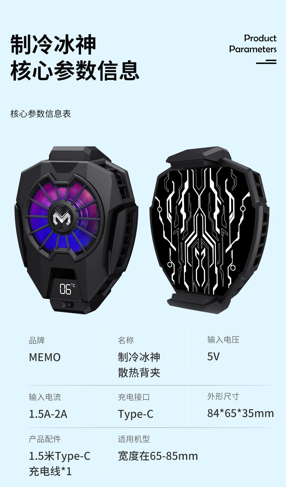 抖音爆卖款DL05手机散热器温度显示半导体制冷高性价比背夹式散热