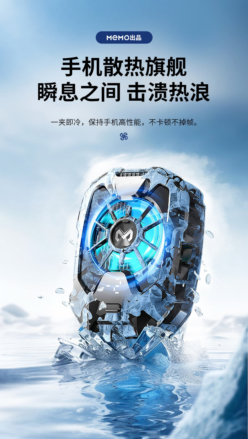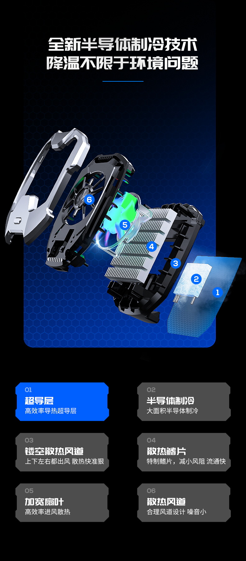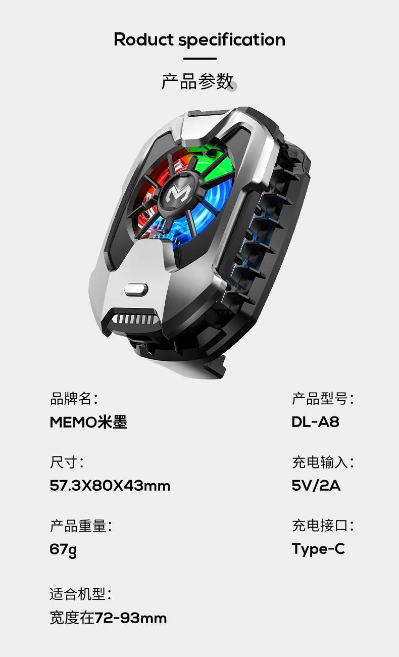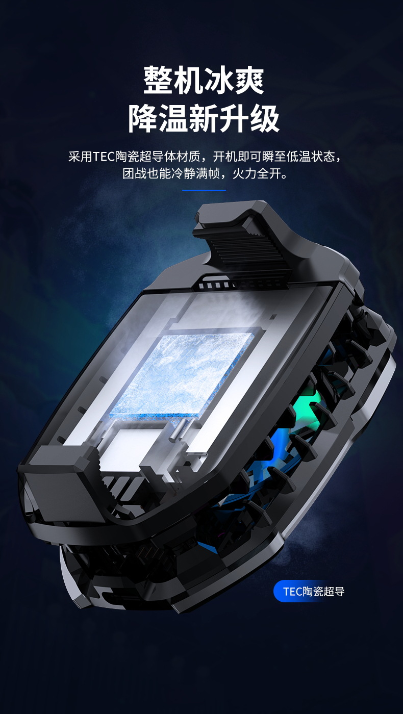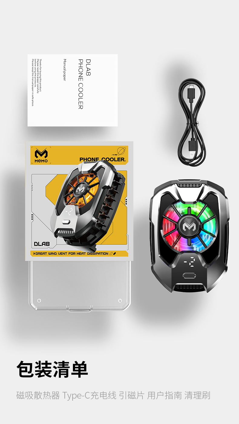 新款DLA8手机散热器数显三档调节背夹散热器低音降噪制冷炫酷灯效