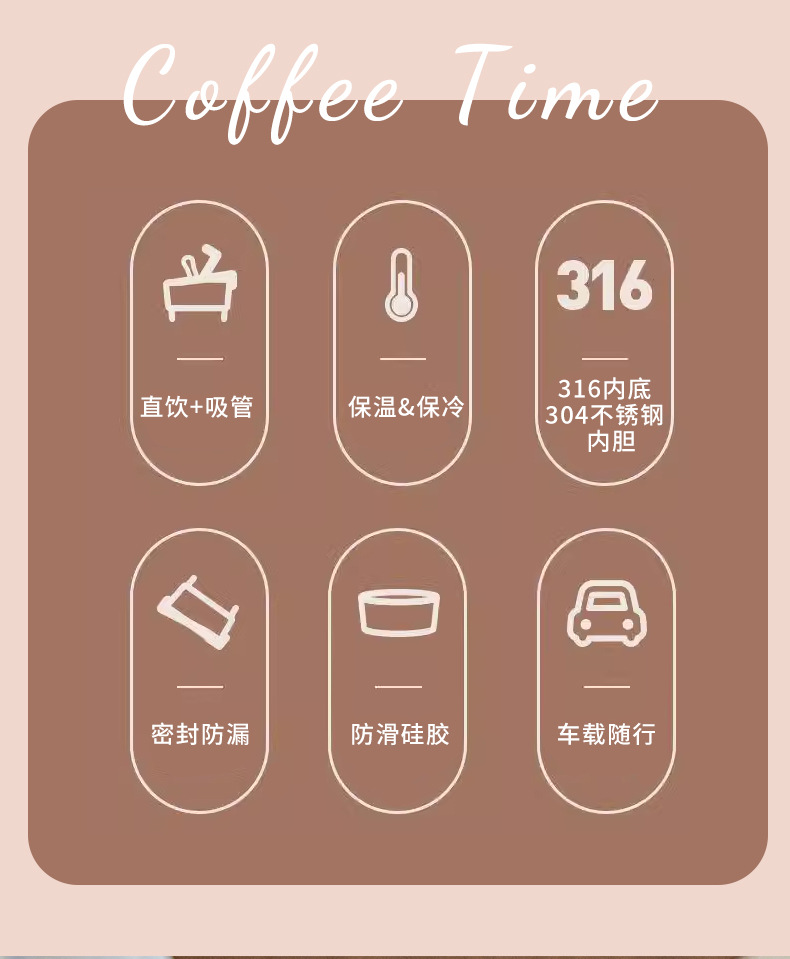 定制潮杯库保温杯316食品级便携随行杯高颜值不锈钢冰美式咖啡杯