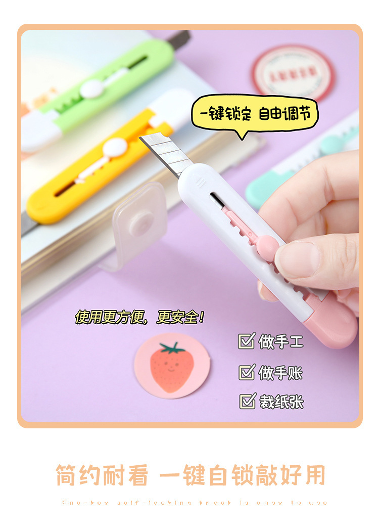 可爱卡通糖果色美工刀迷你小号学生裁纸刀随身便携开箱拆快递神器