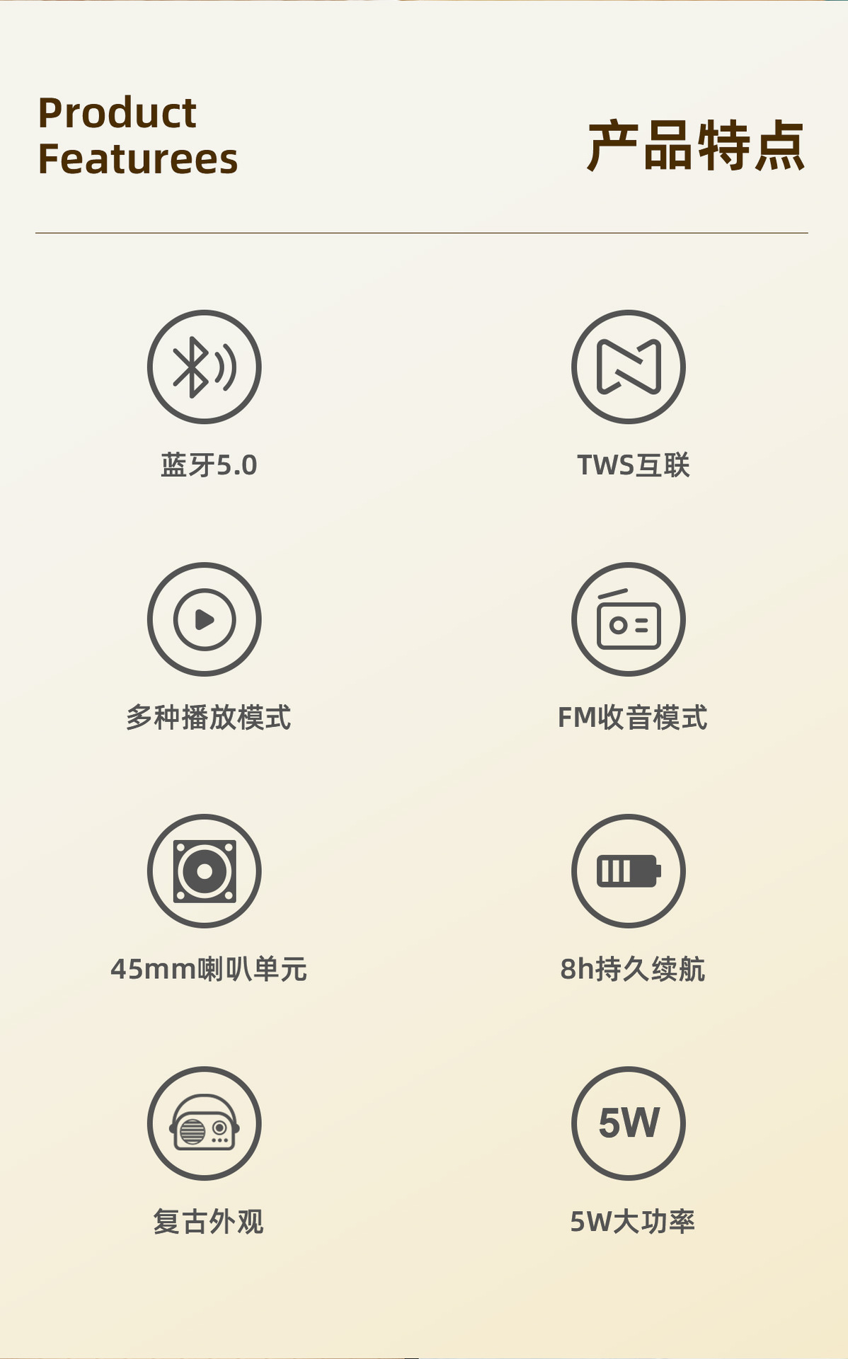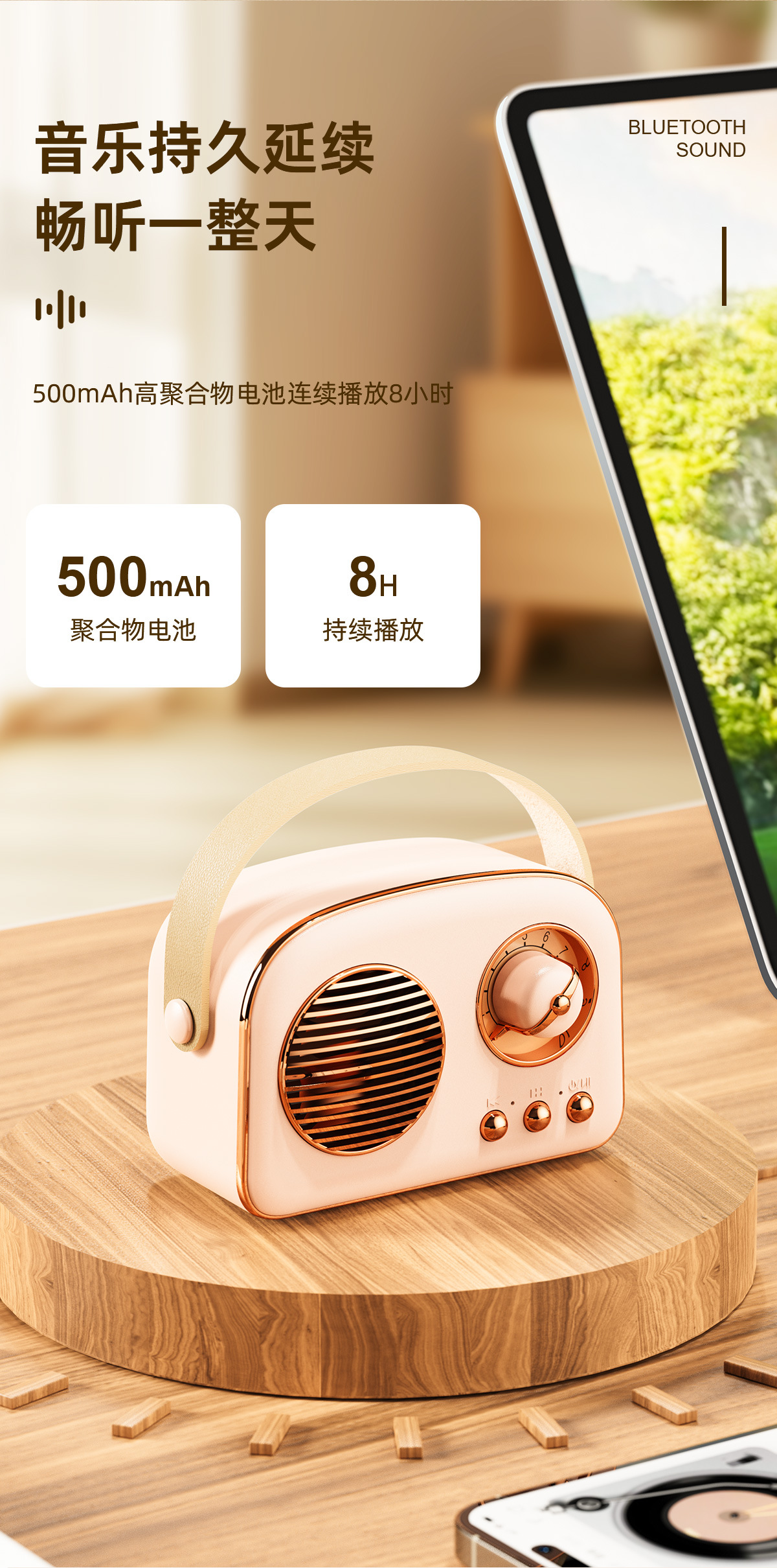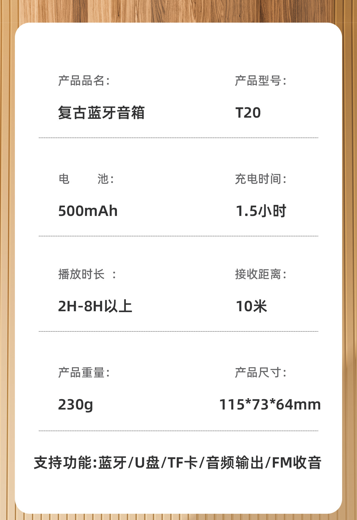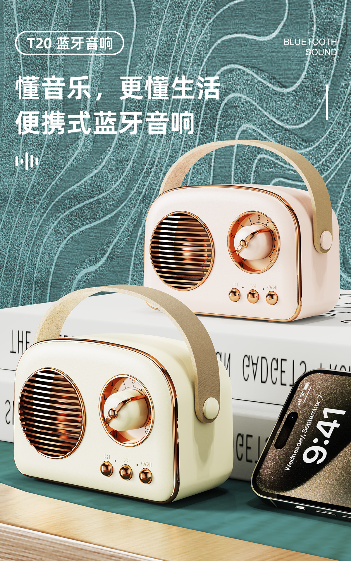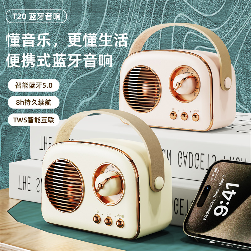 跨境T20复古蓝牙音箱小型家用音响高音质无线低音迷你重低音插卡