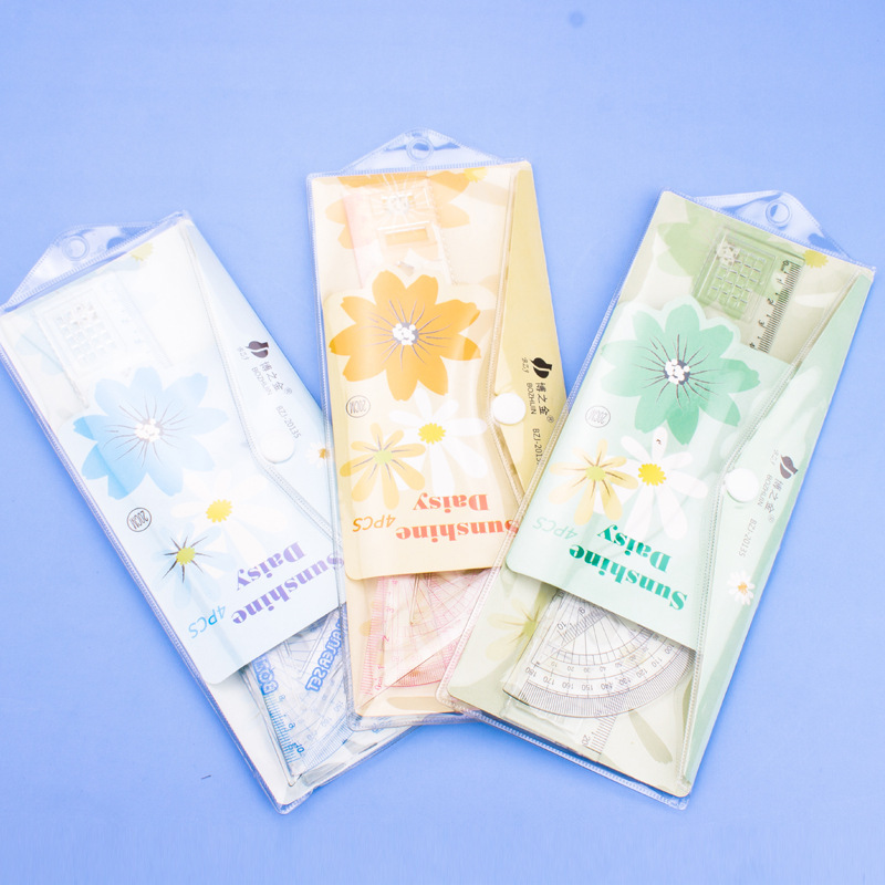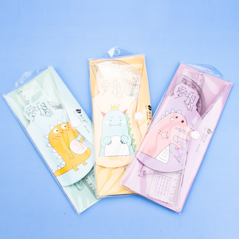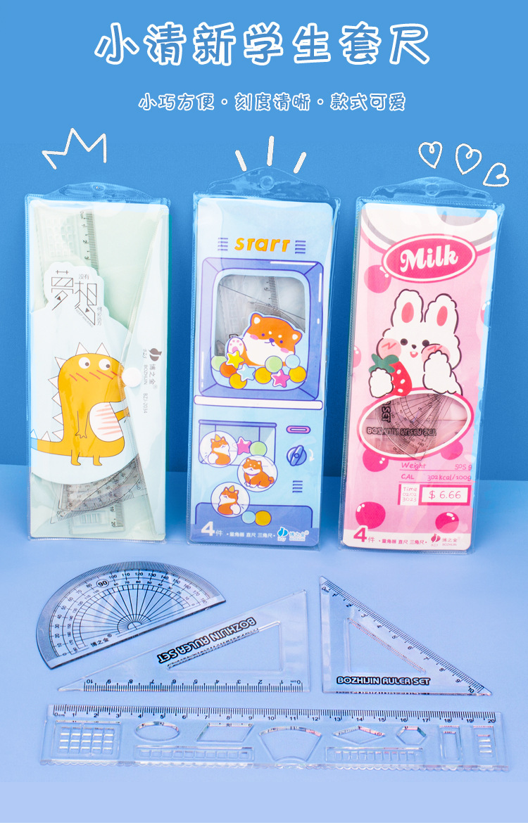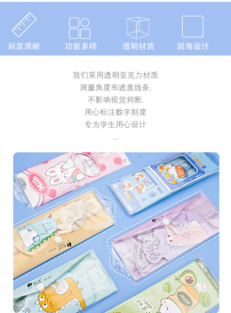 小学生可爱直尺三角尺卡通学习文具 儿童绘画数学多功能尺子套装