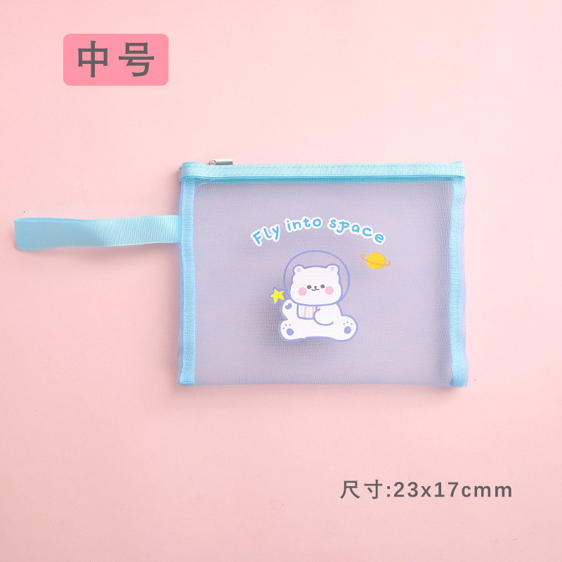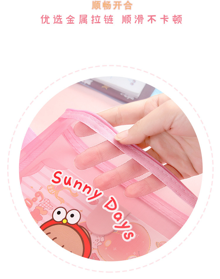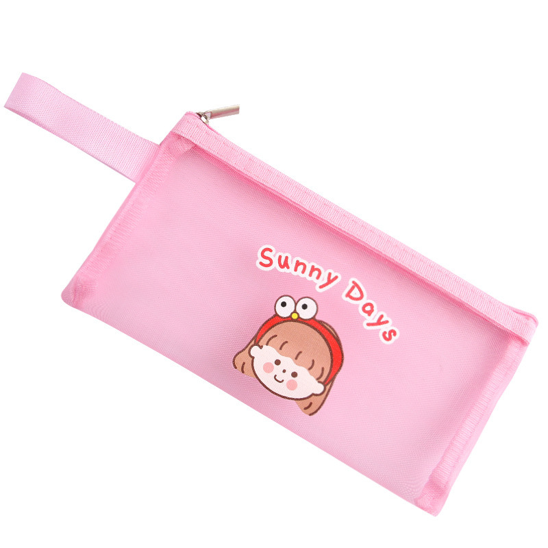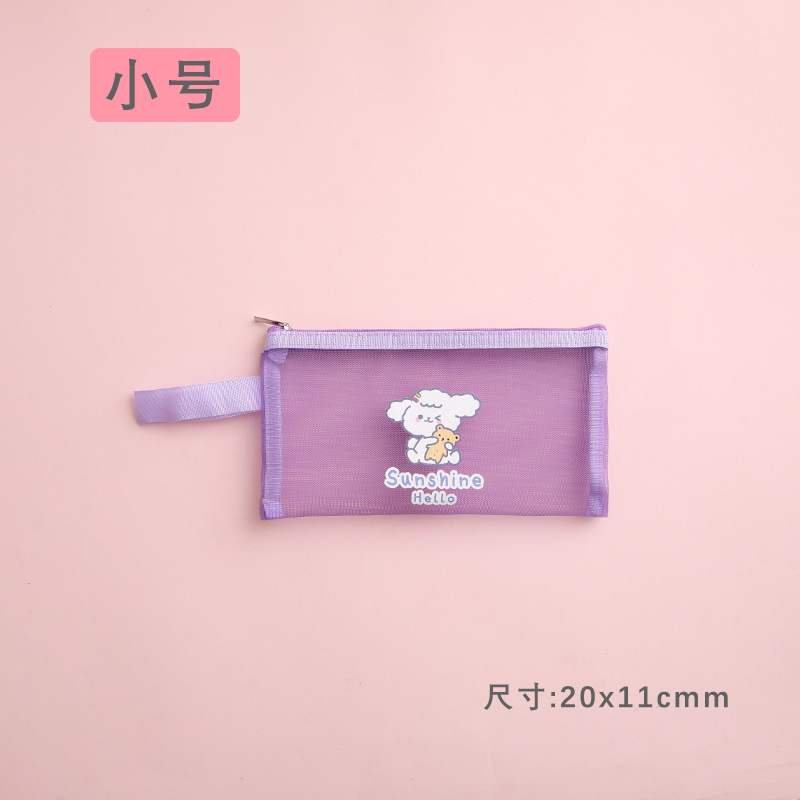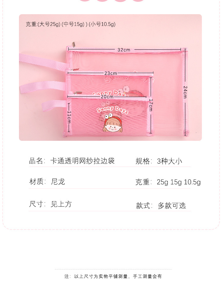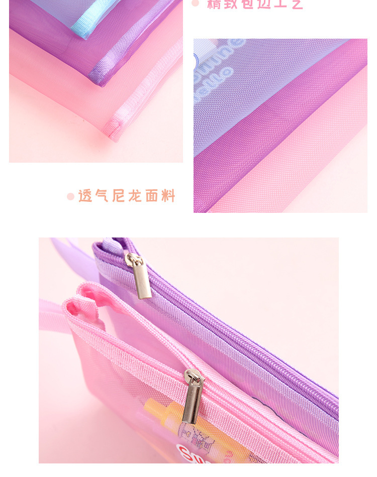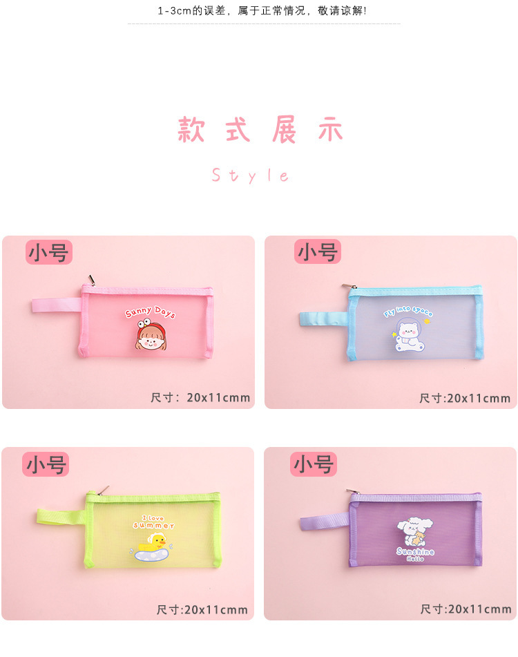 高颜值收纳袋可爱卡通大容量网纱简约学生透明文具拉链铅笔袋批发