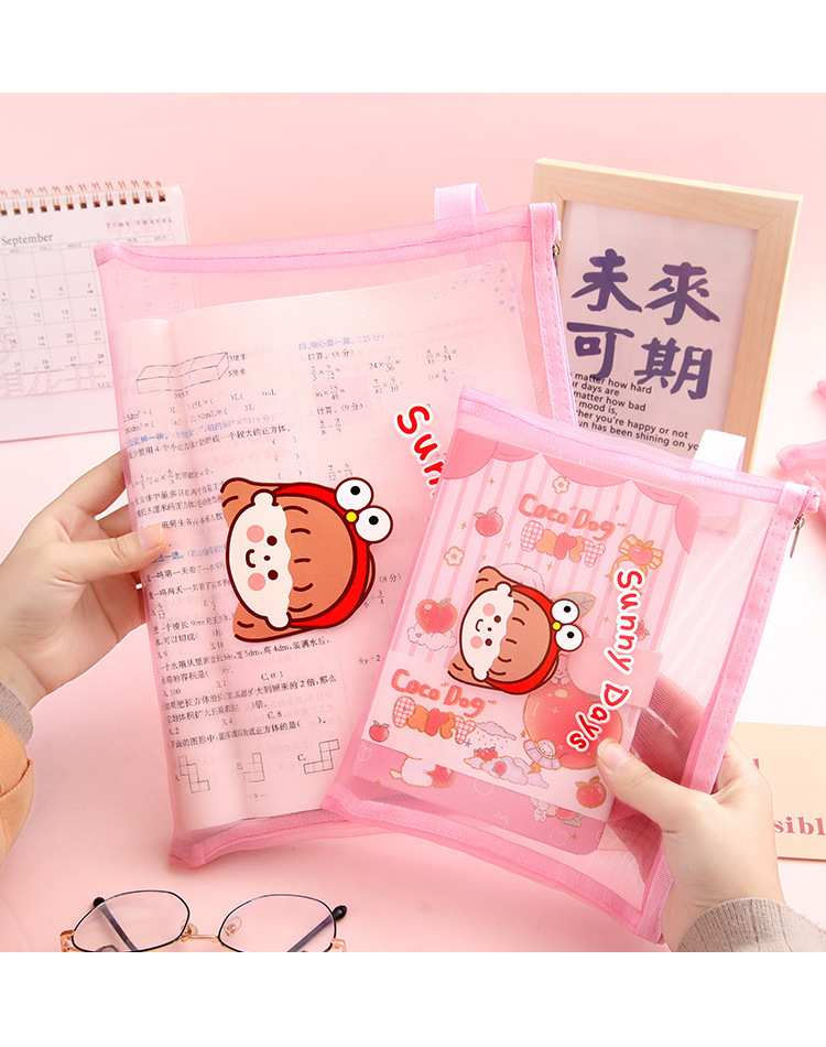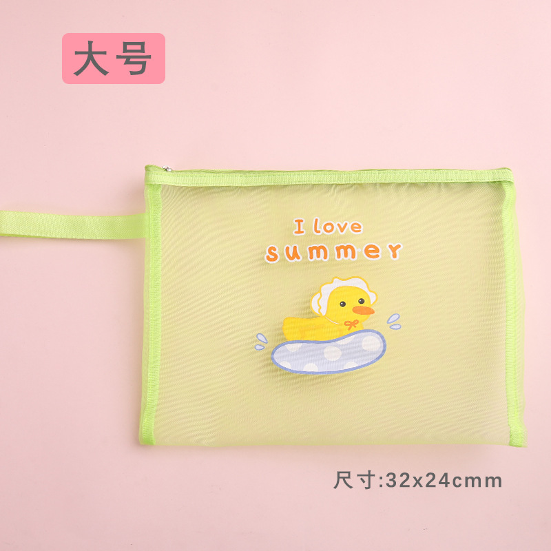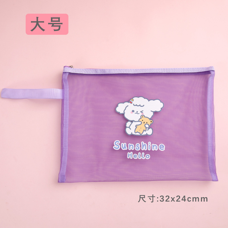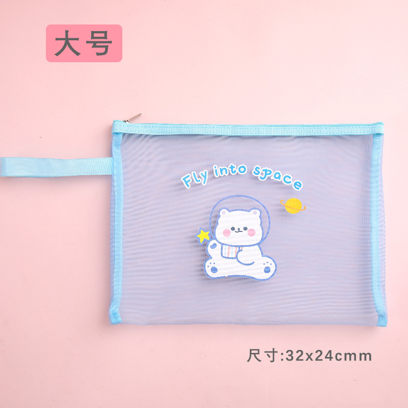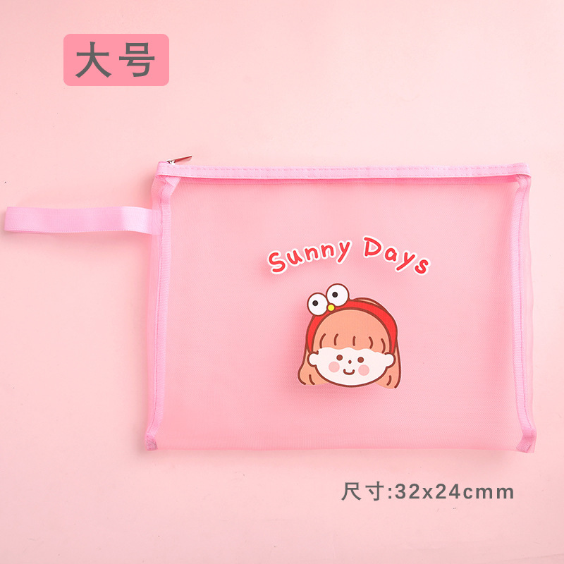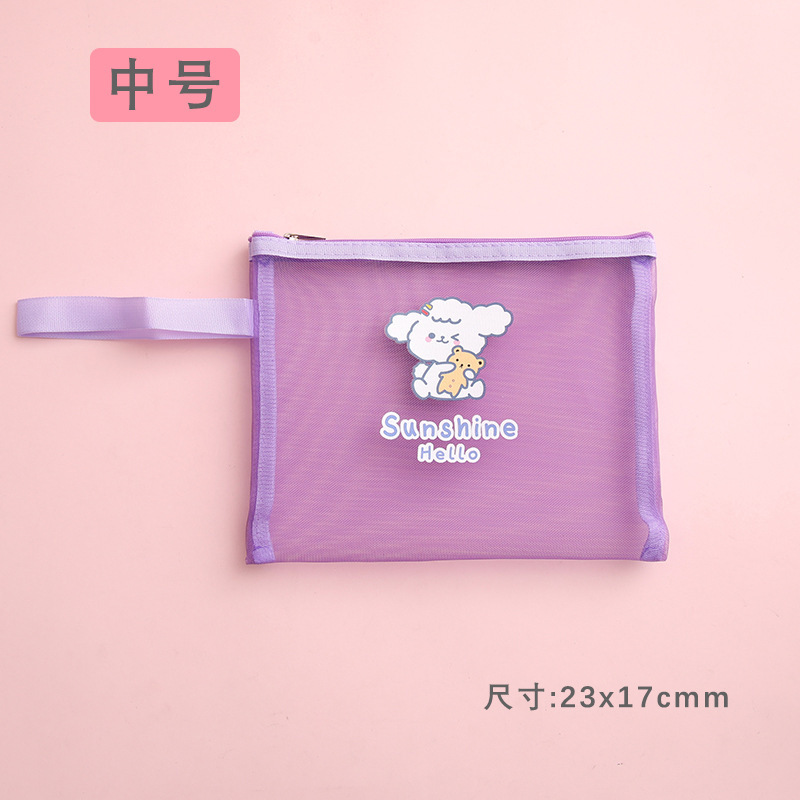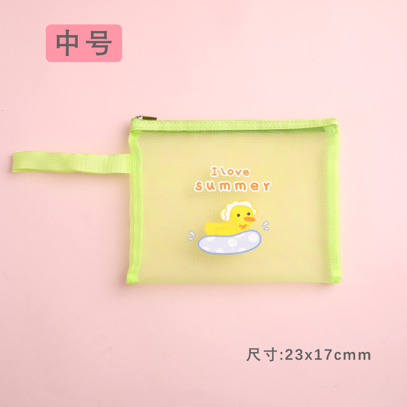 高颜值收纳袋可爱卡通大容量网纱简约学生透明文具拉链铅笔袋批发