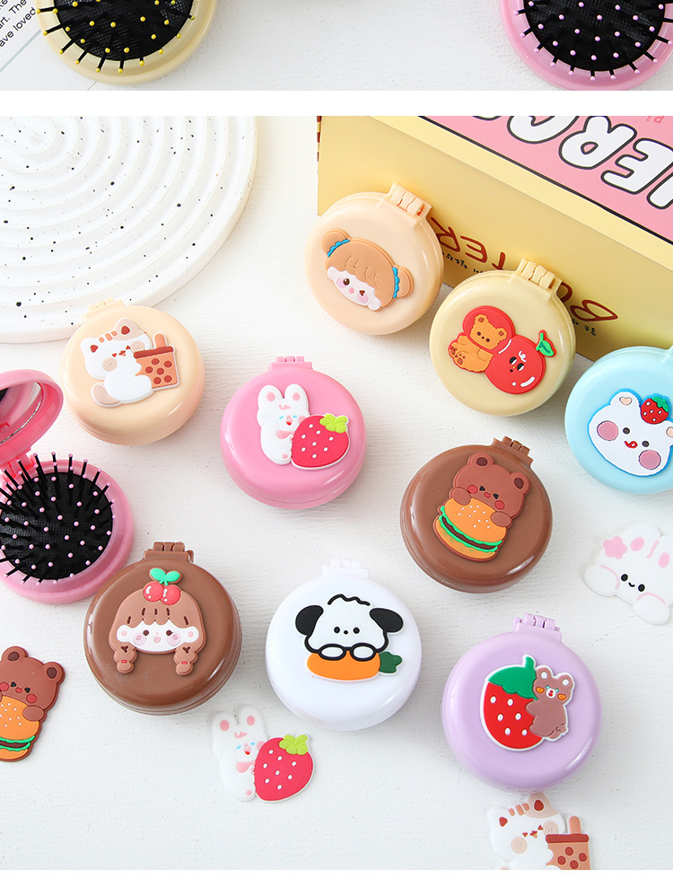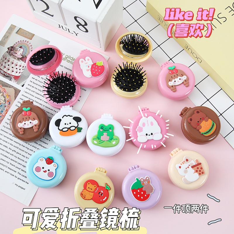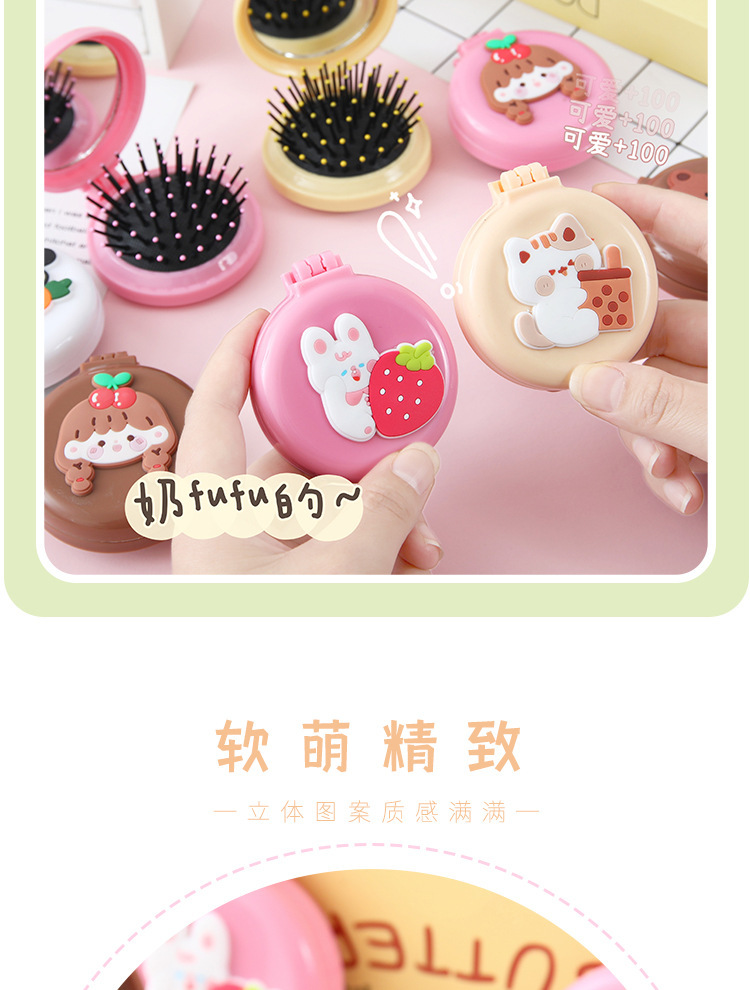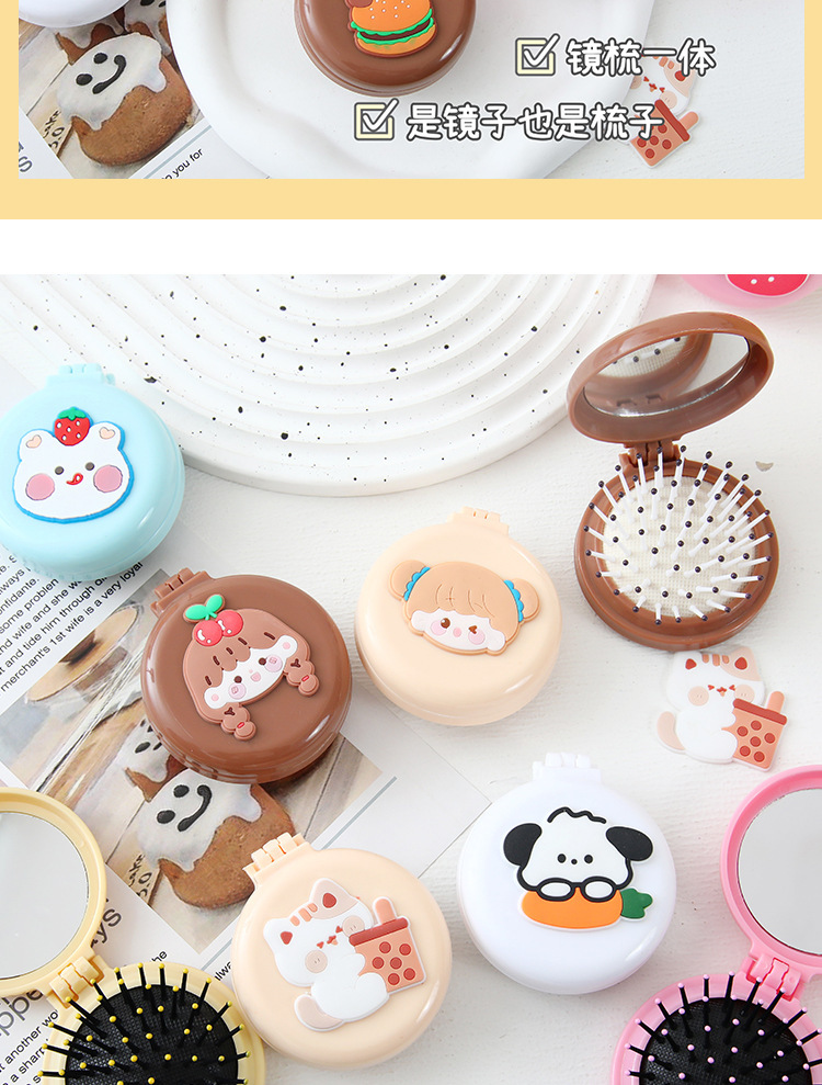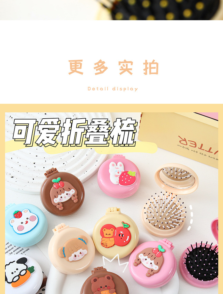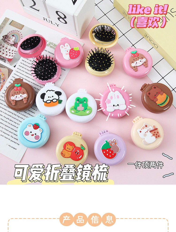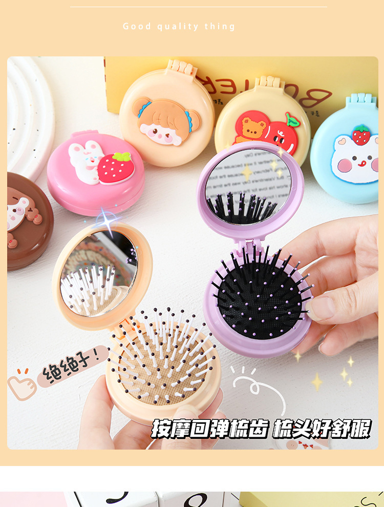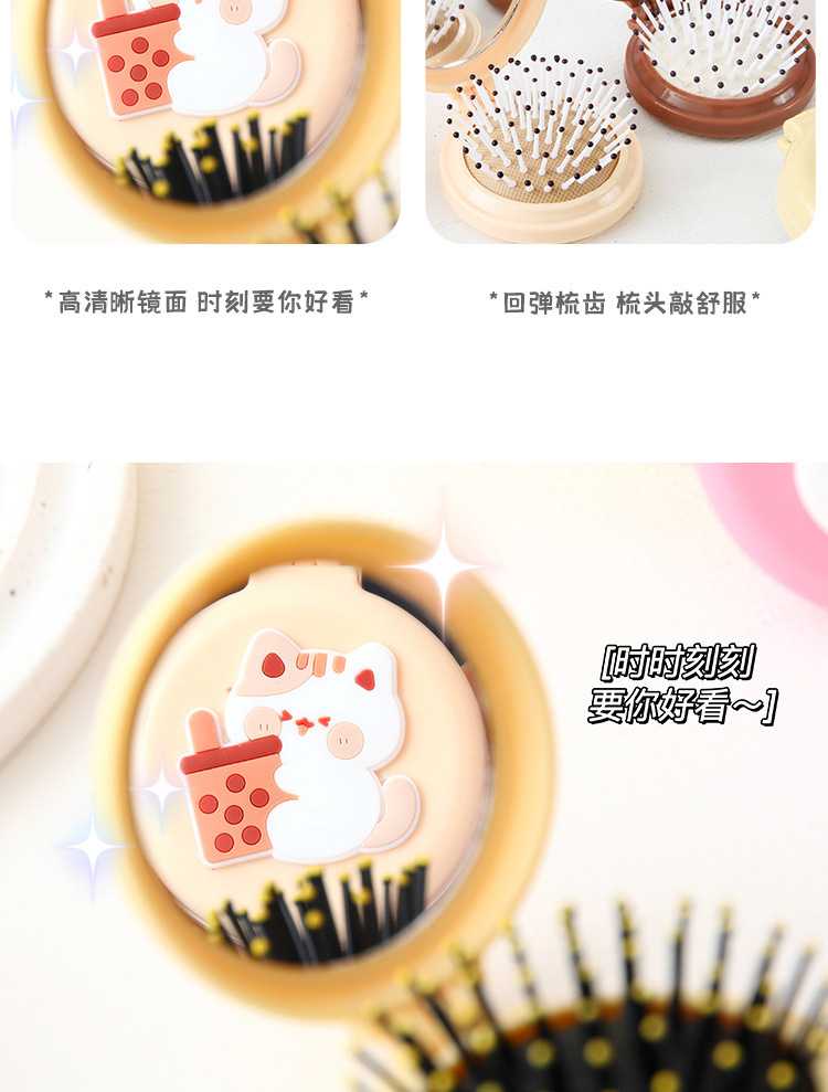 创意气垫梳可爱卡通女生专用随身便携迷你按摩梳镜子一体梳子批发