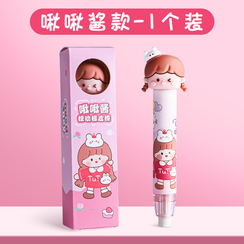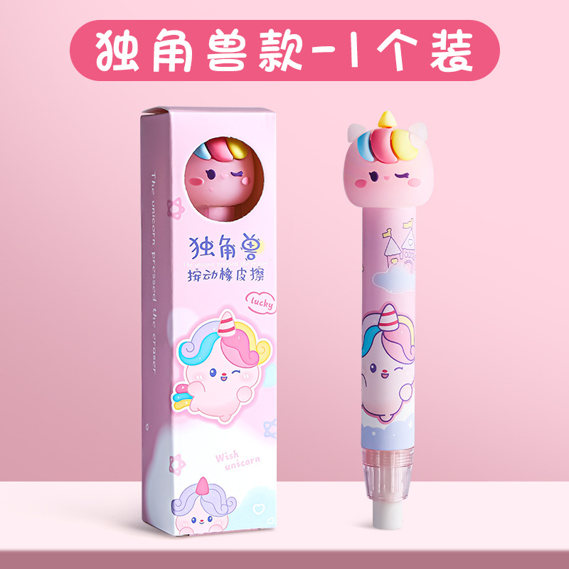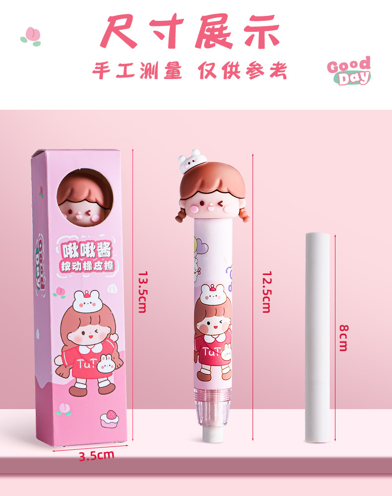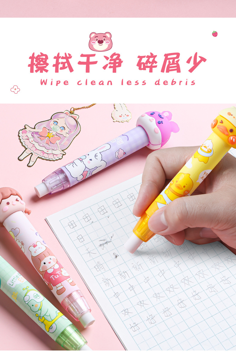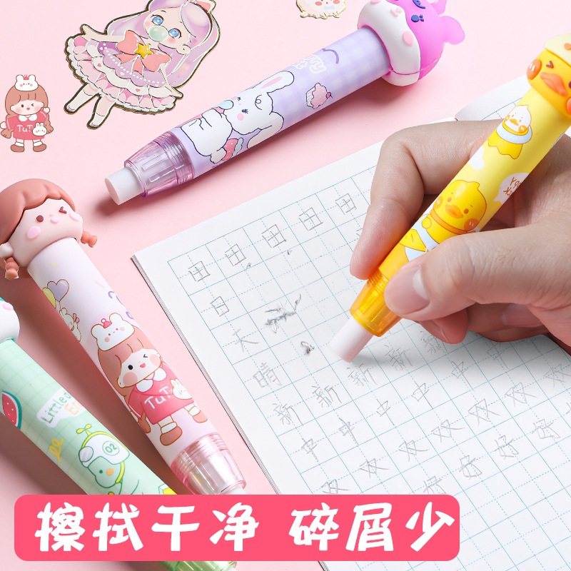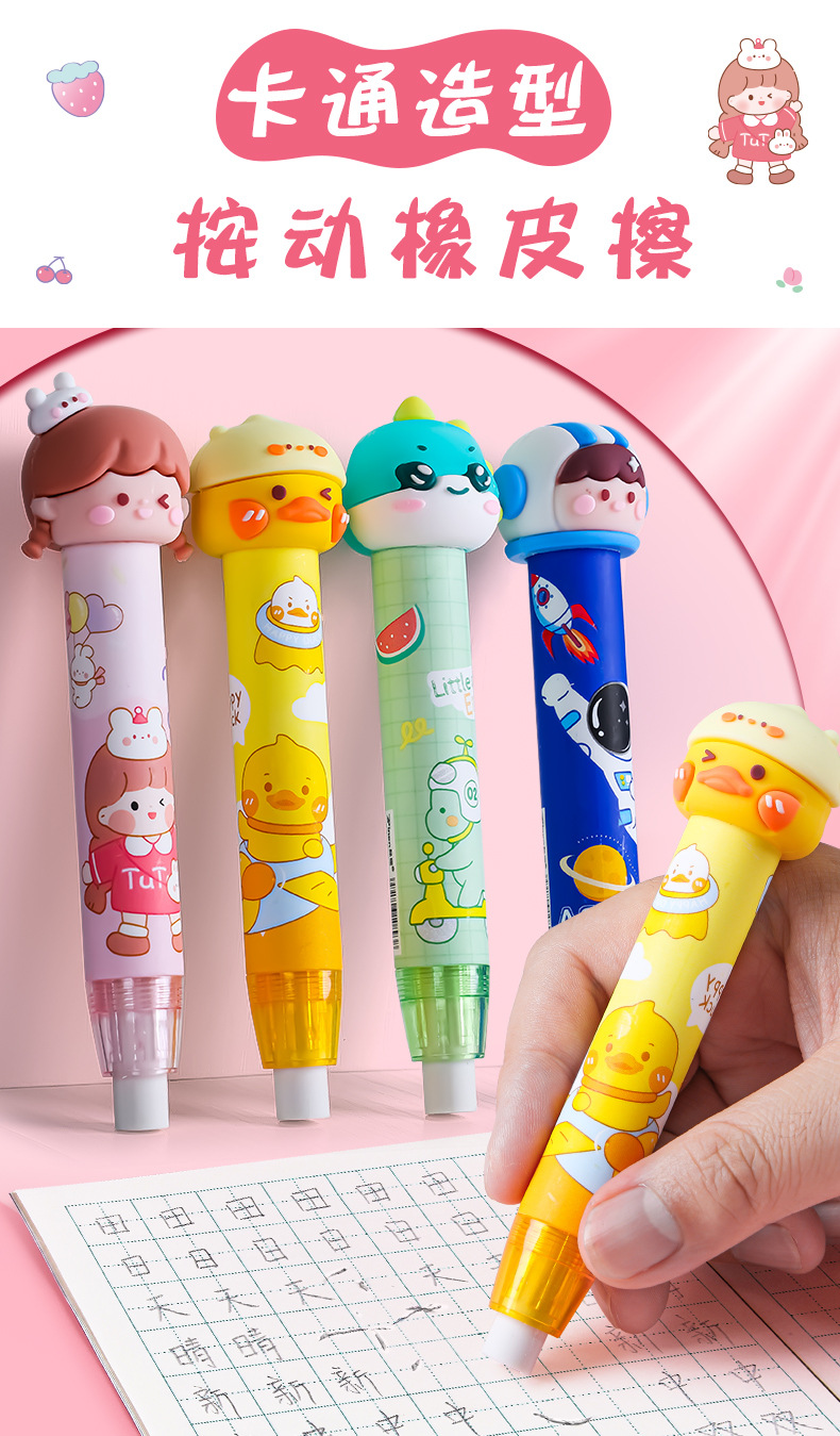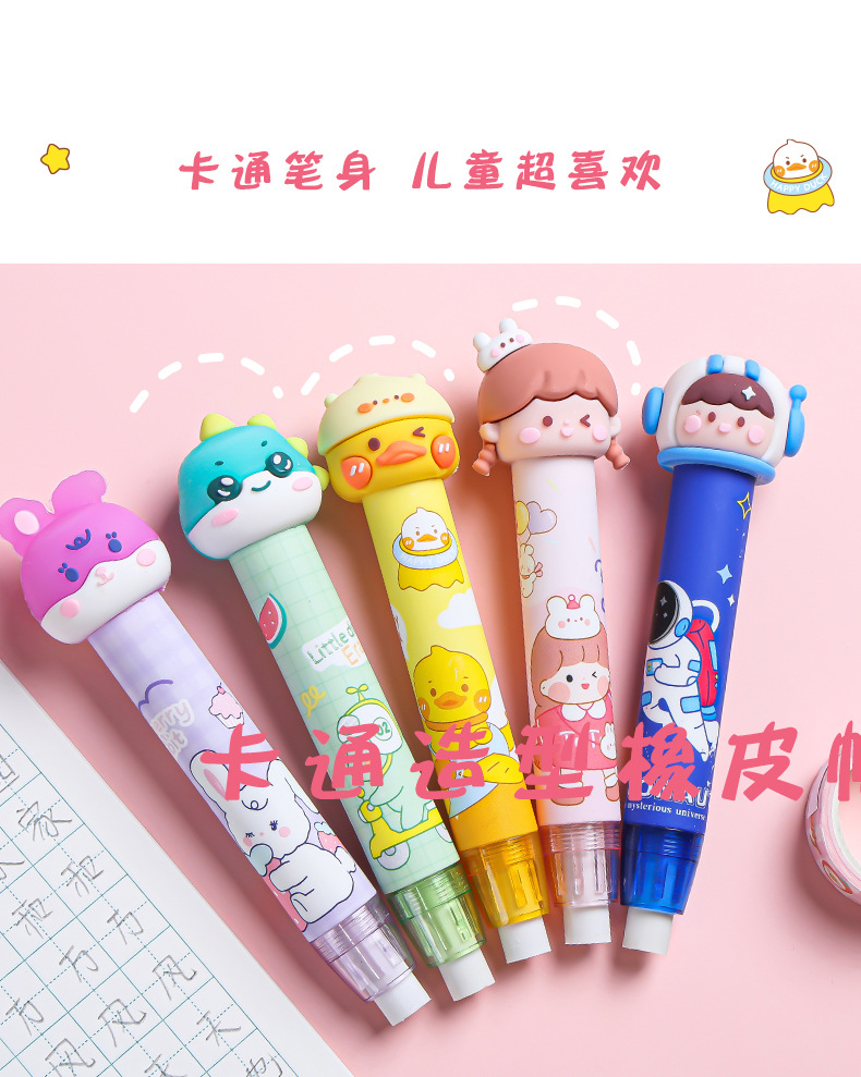 按动卡通盒装橡皮擦 学生创意文具擦字无痕可伸缩替换芯橡皮批发