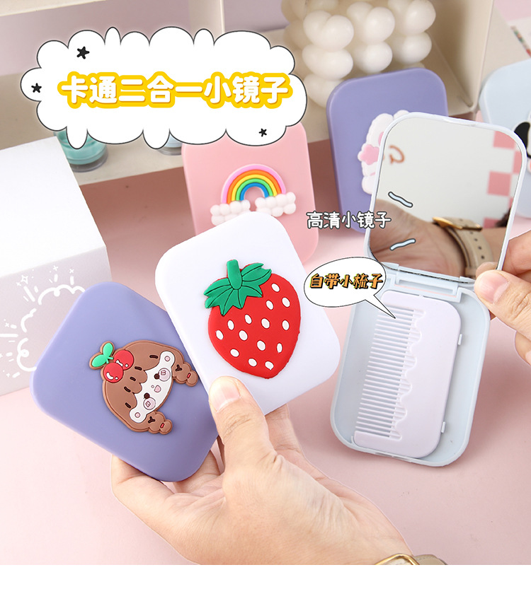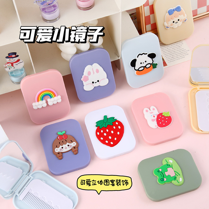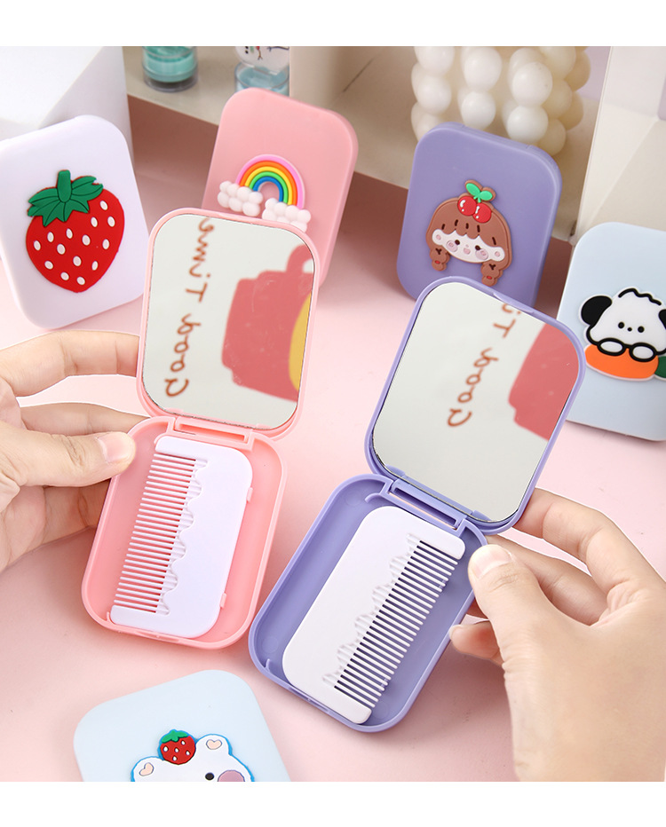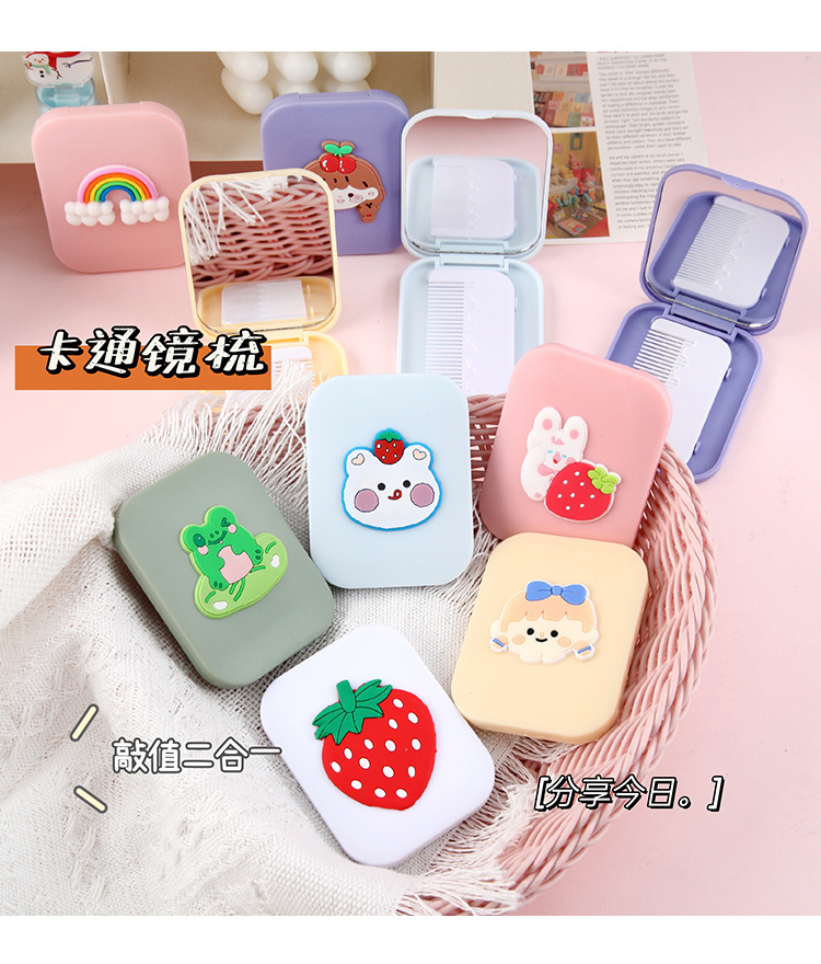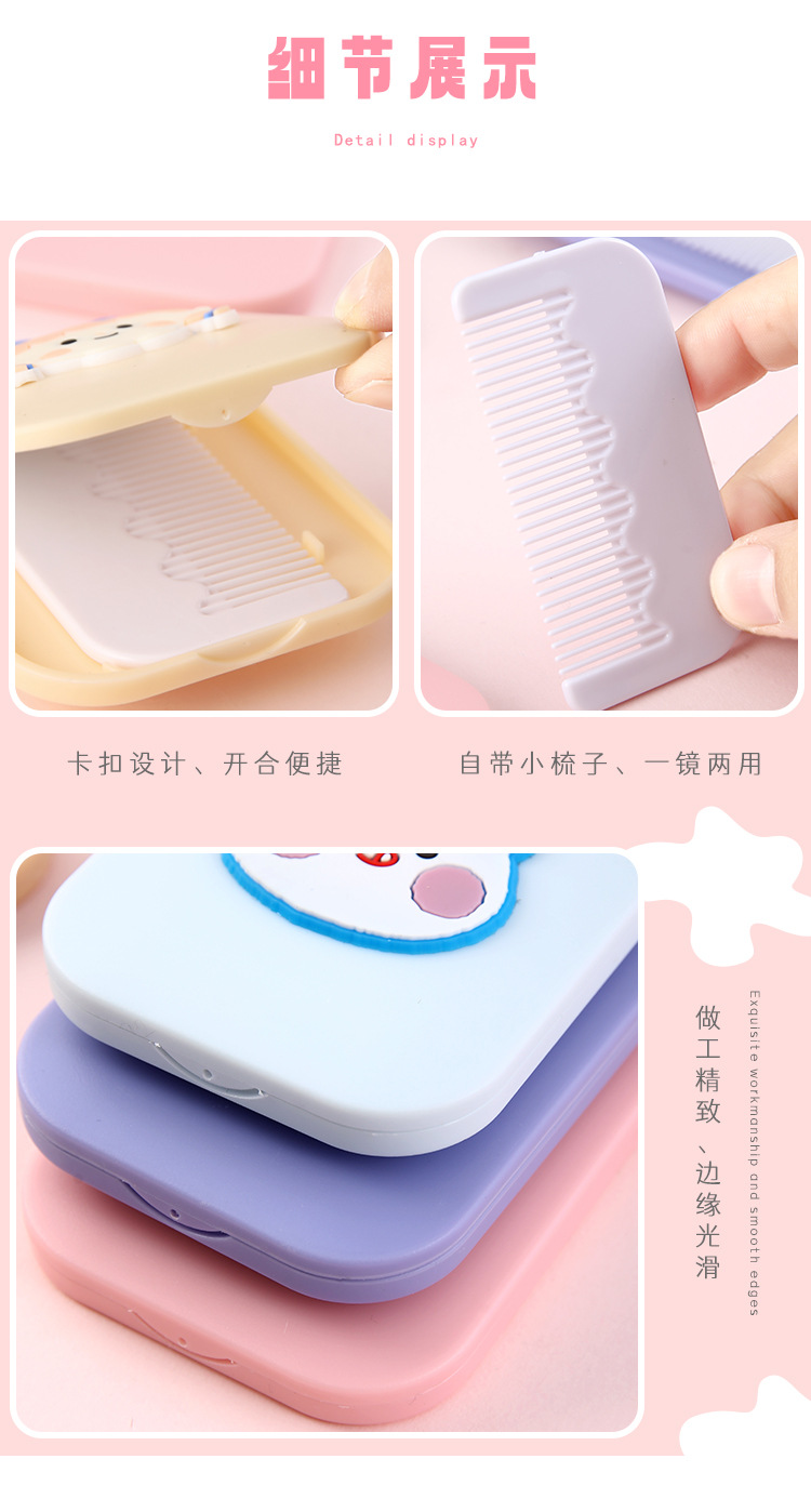 折叠镜子女学生高颜值随身便携塑料化妆镜可爱卡通小镜子梳子套装