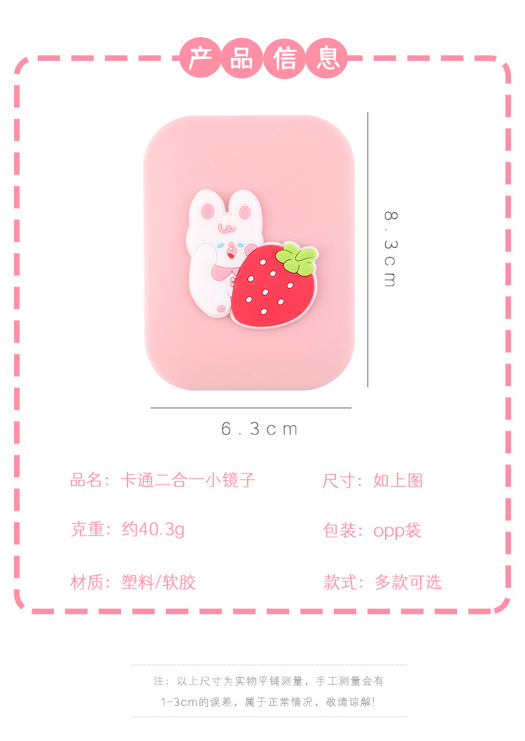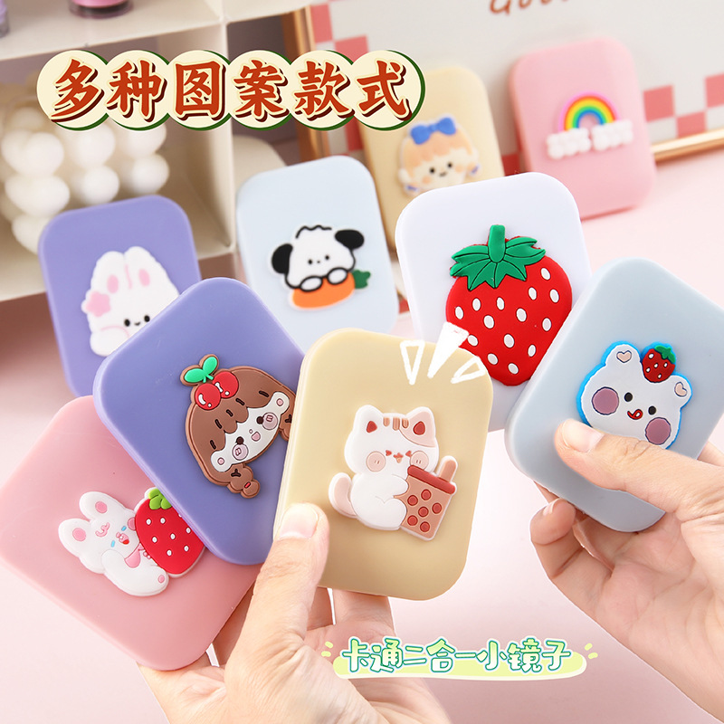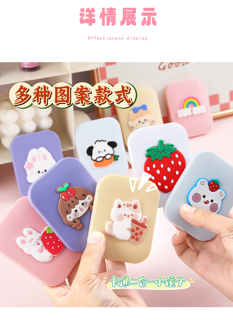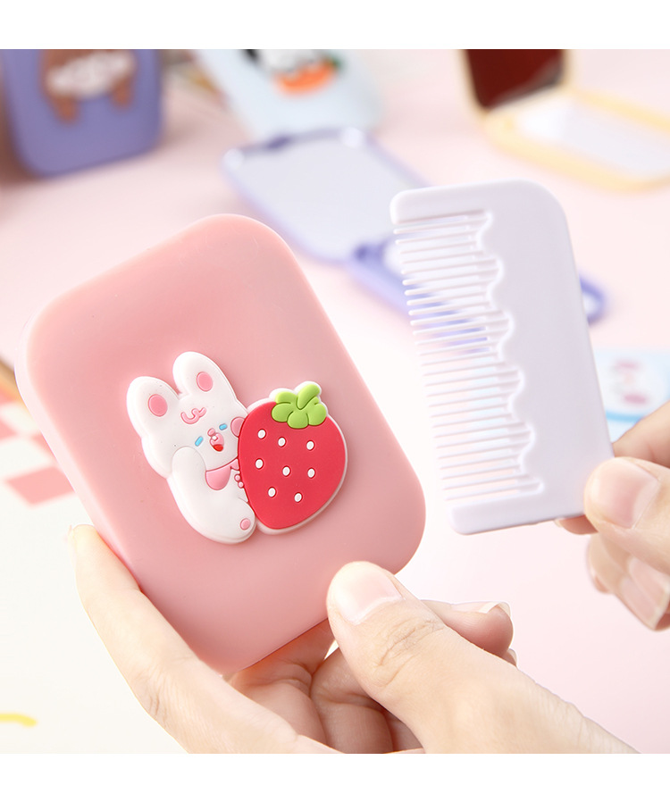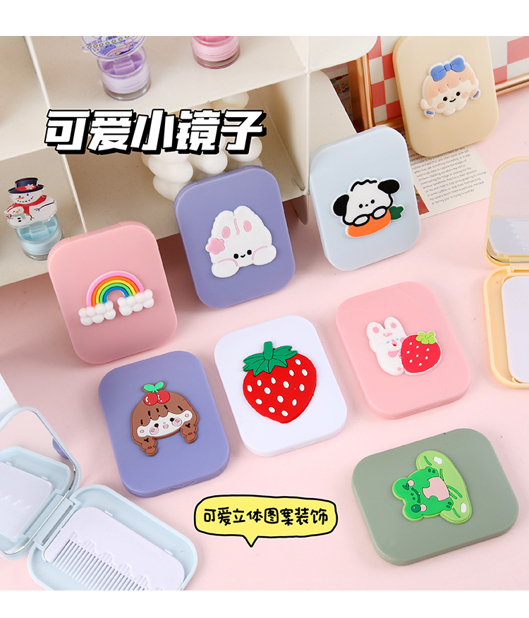 折叠镜子女学生高颜值随身便携塑料化妆镜可爱卡通小镜子梳子套装