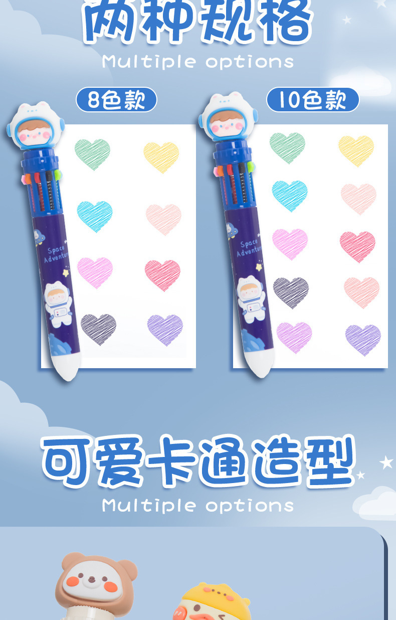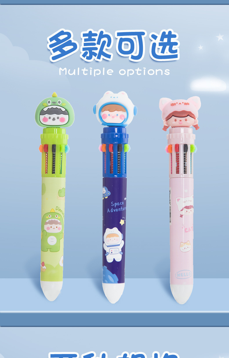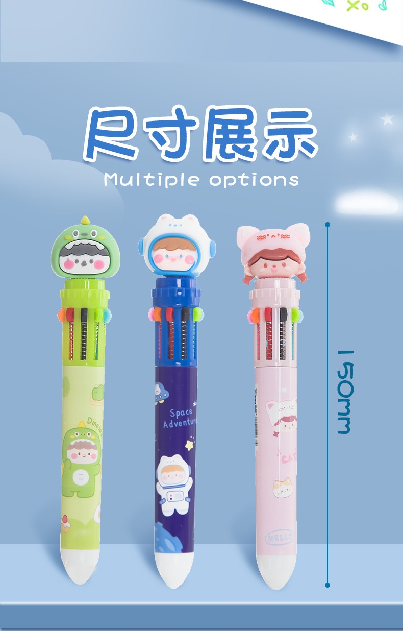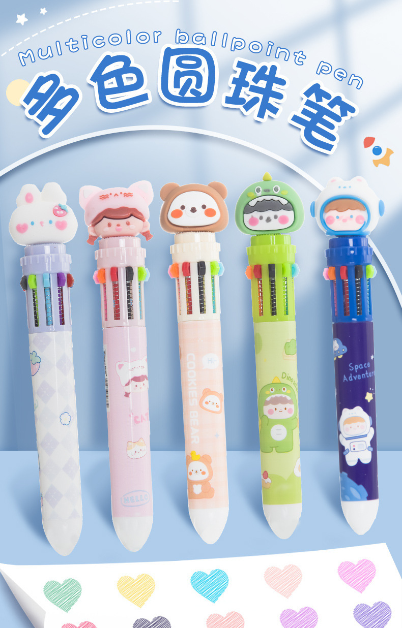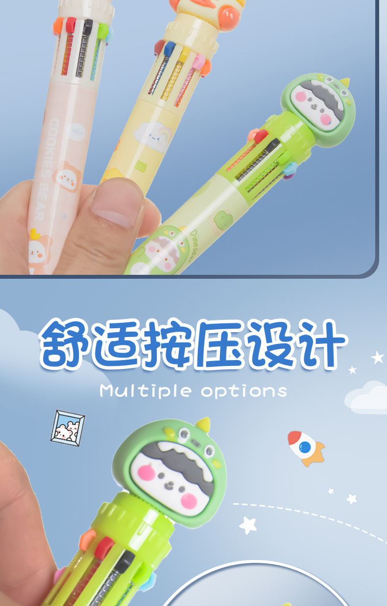 可爱卡通高颜值十色按动圆珠笔 学生多色彩色创意按压中性笔批发