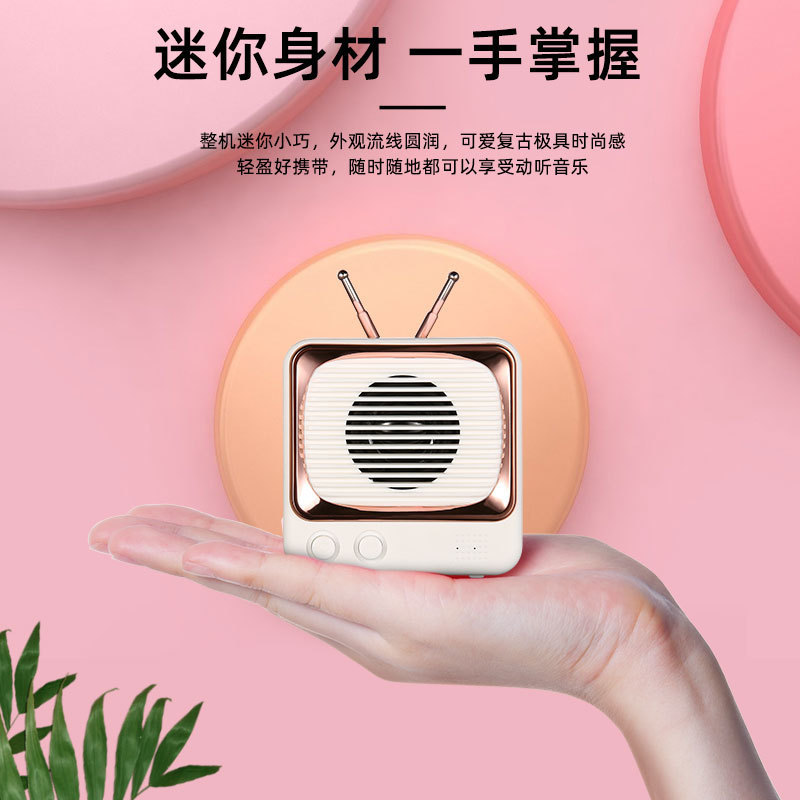跨境DW02复古蓝牙音箱迷你插卡重低音炮无线小电视蓝牙创意小音响