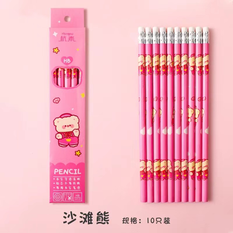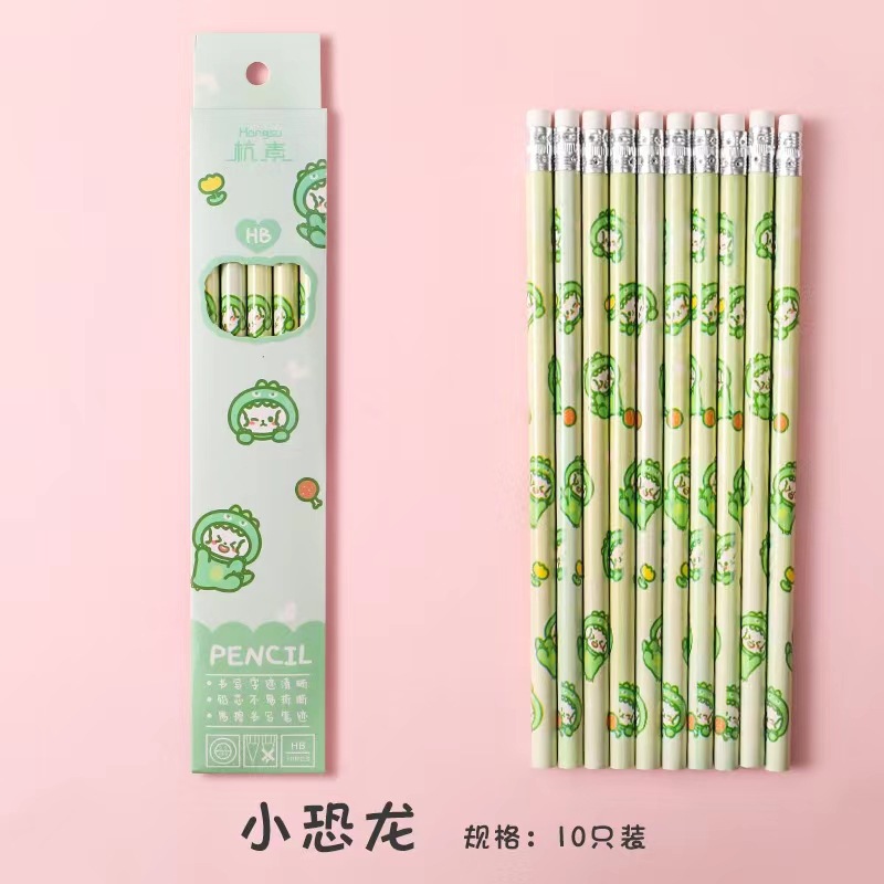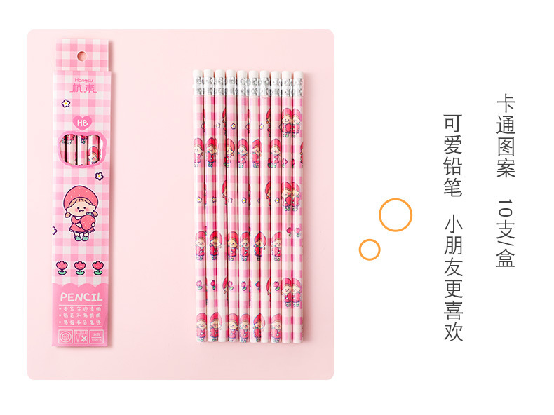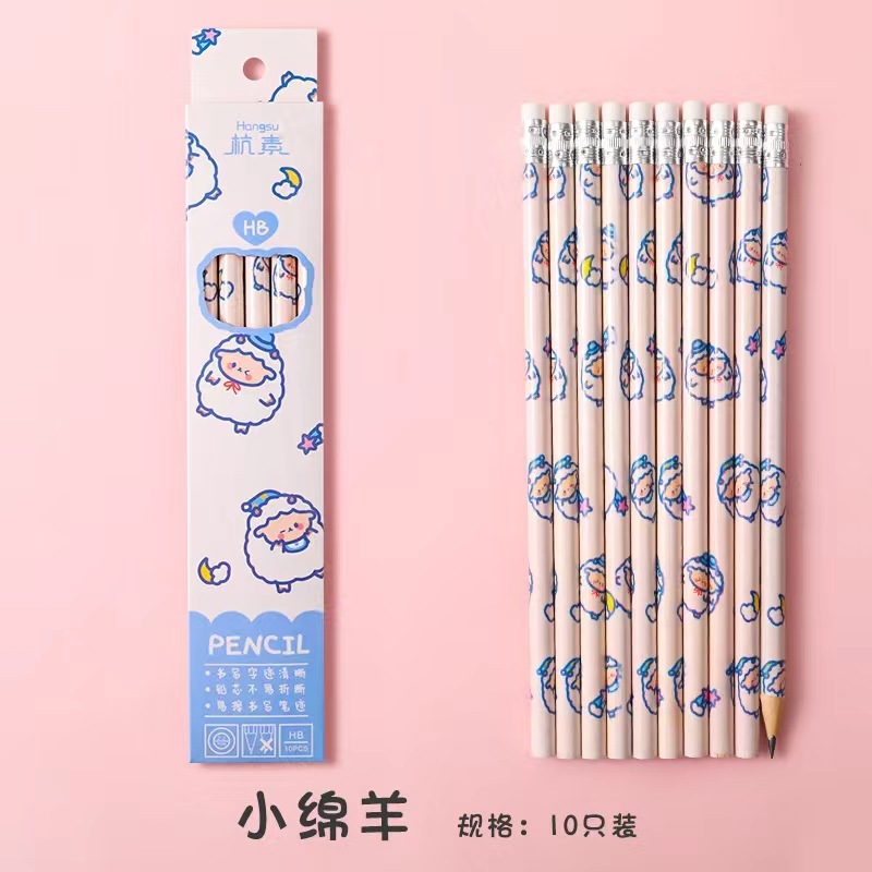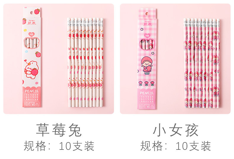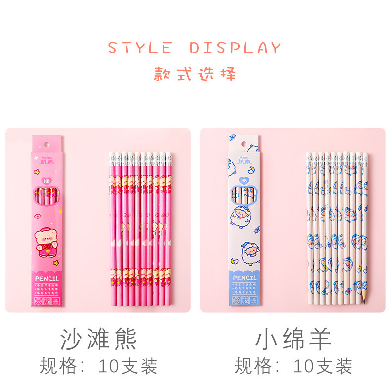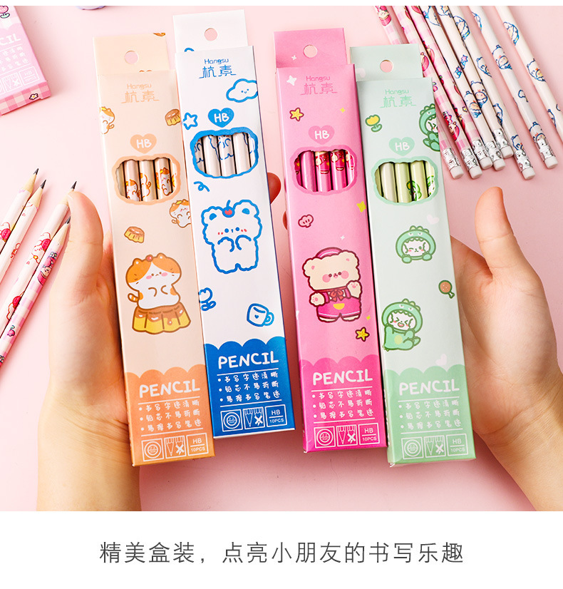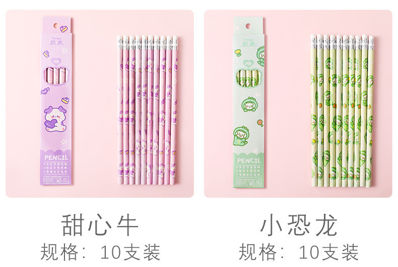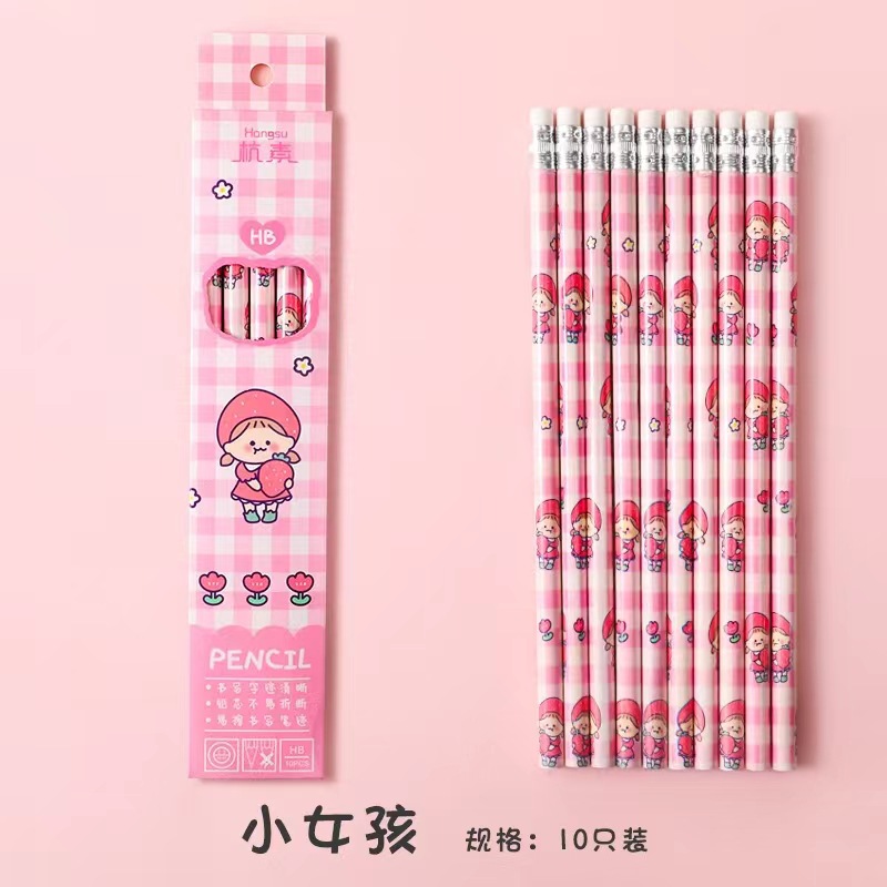 创意卡通10支盒装自带橡皮擦铅笔小学生高颜值HB铅笔文具奖品批发