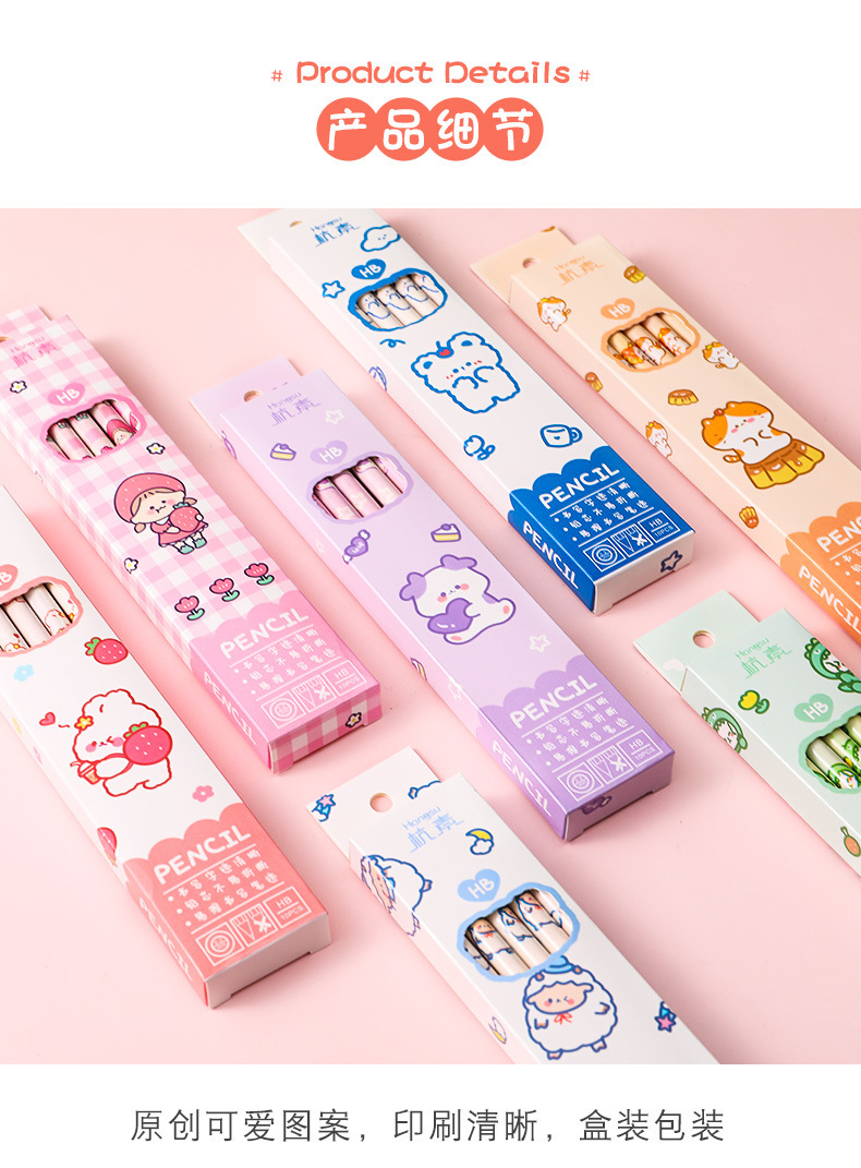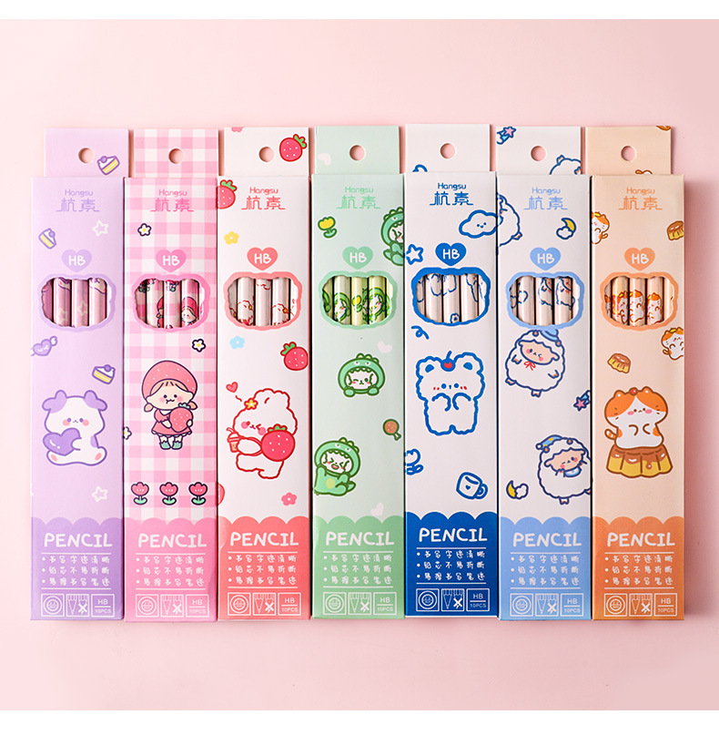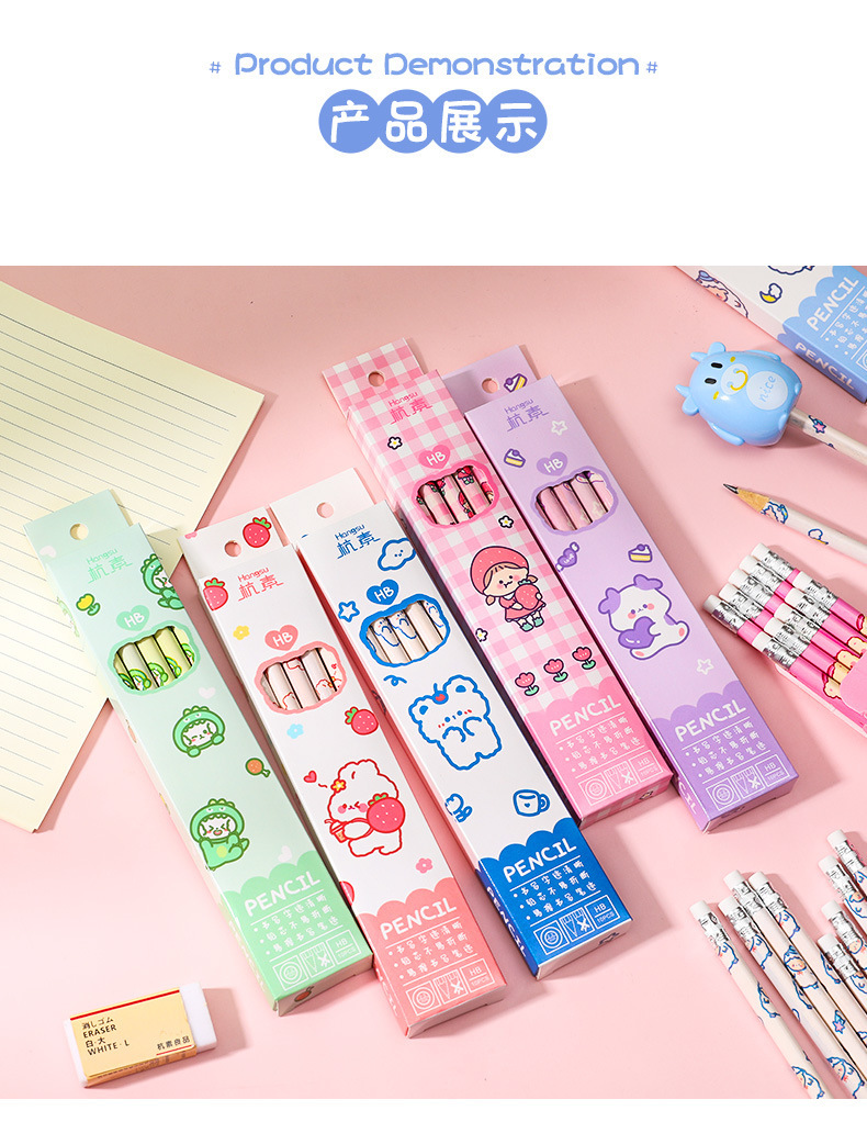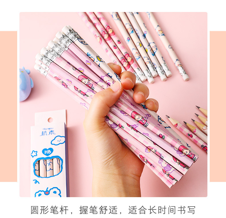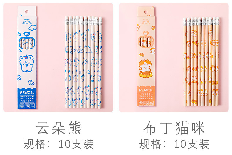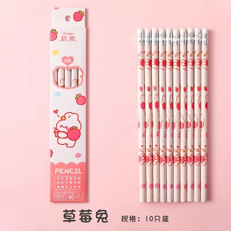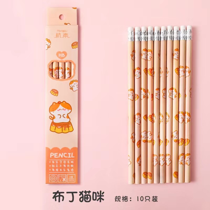 创意卡通10支盒装自带橡皮擦铅笔小学生高颜值HB铅笔文具奖品批发