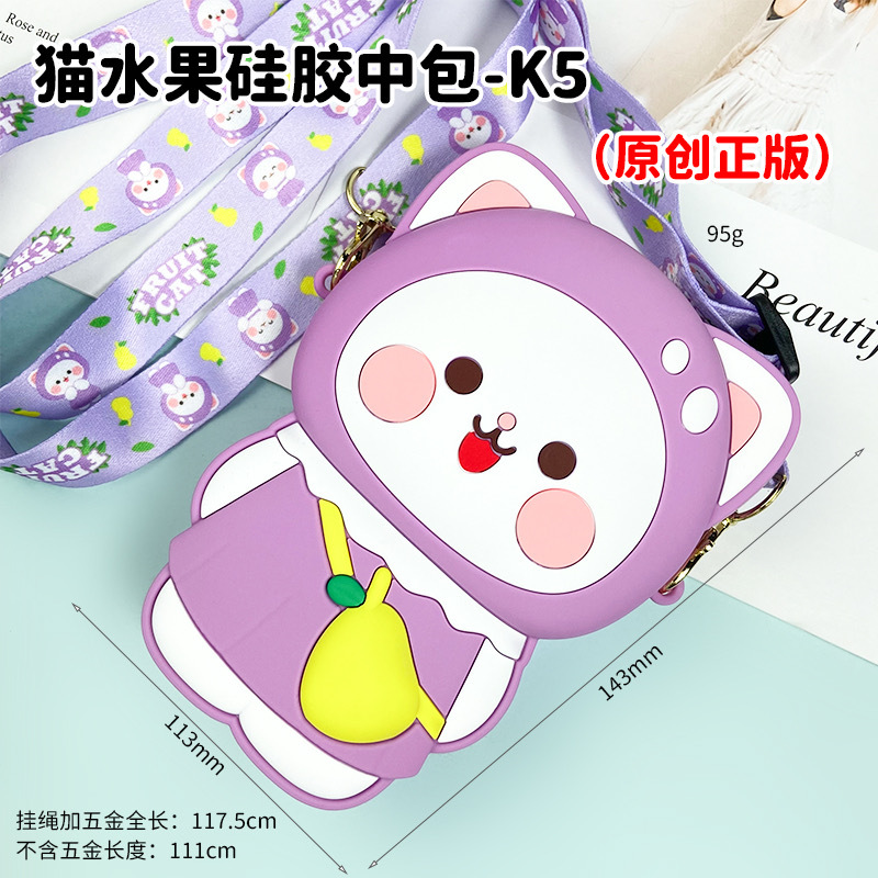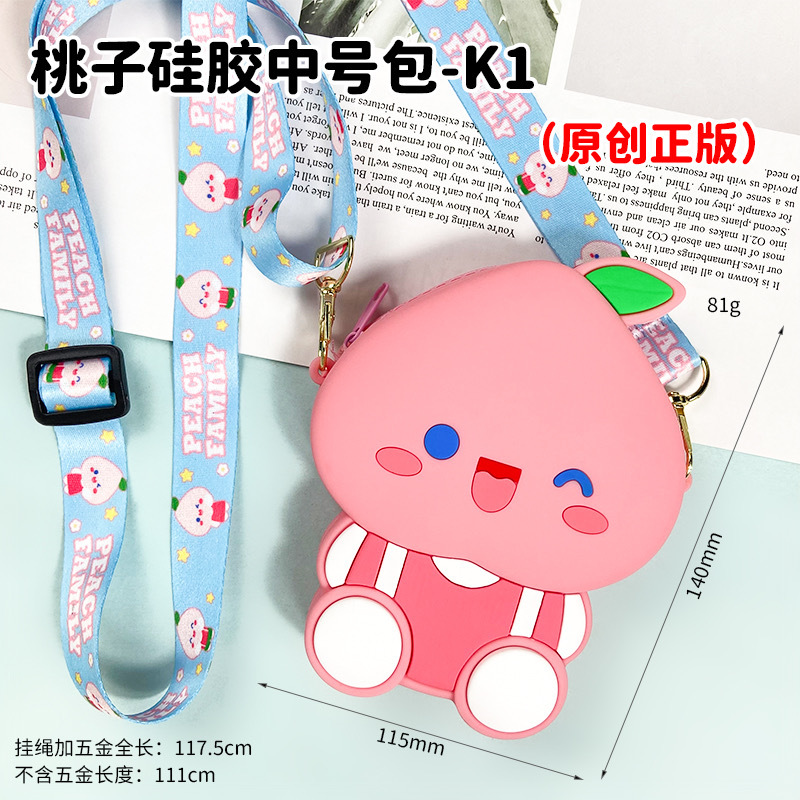 正版中包桃子家族招猫花小兔零钱包钥匙扣可爱青蛙钥匙包挂件