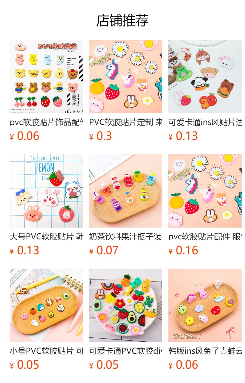 可爱卡通pvc软胶贴片 服饰鞋帽饰品百货文具装饰粘贴件厂家批发