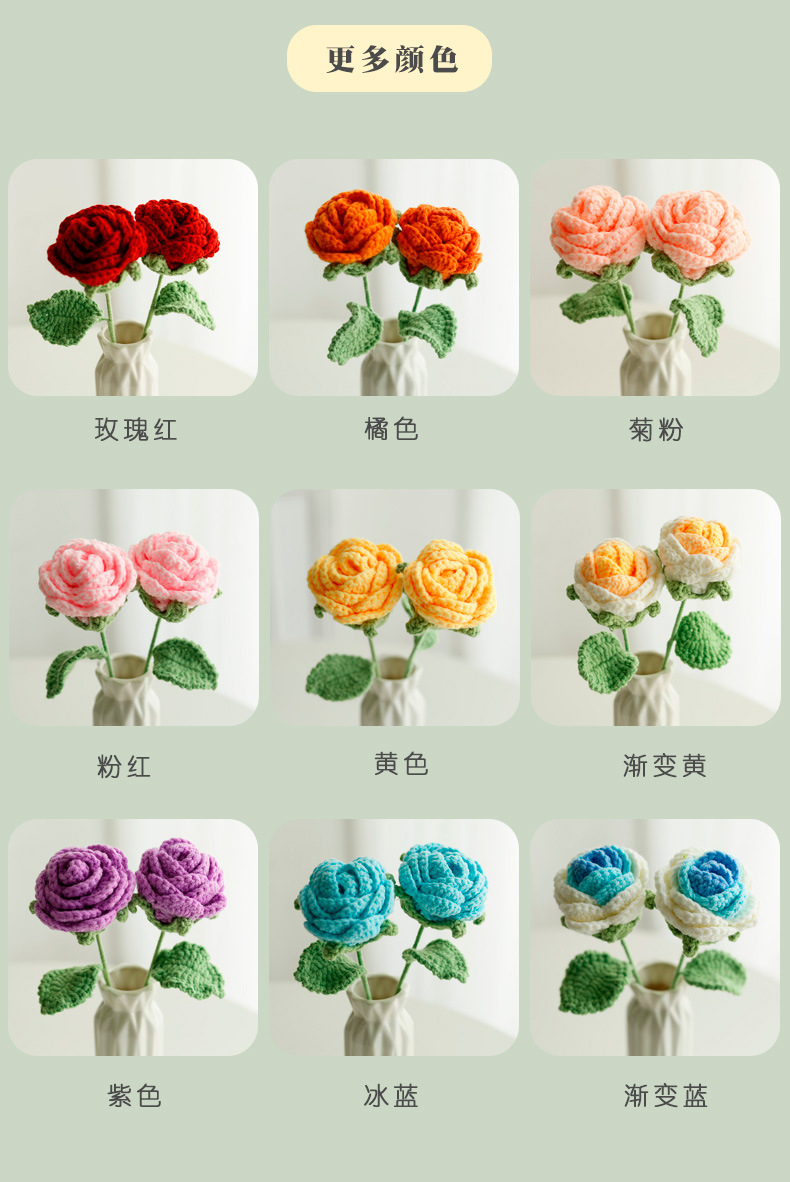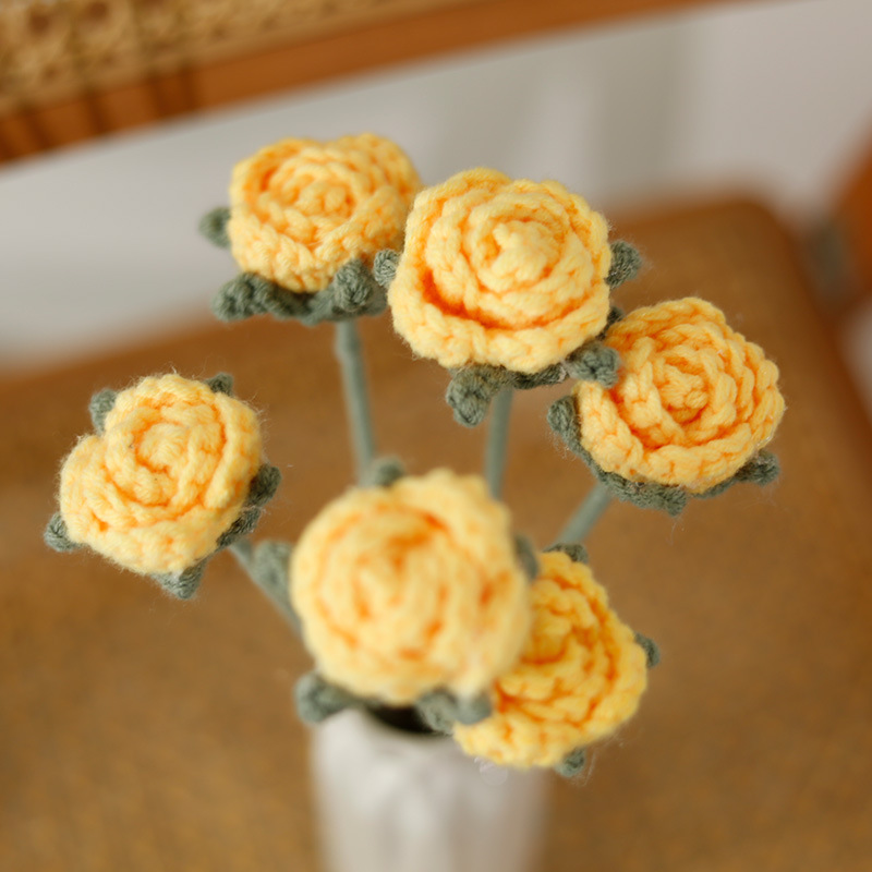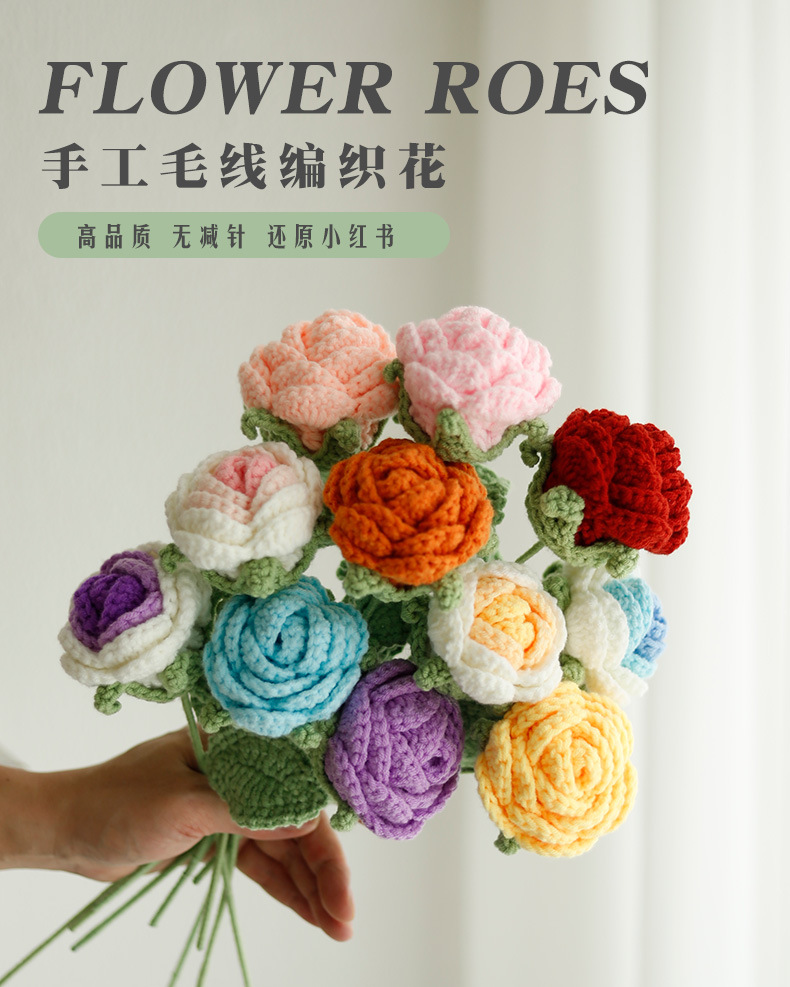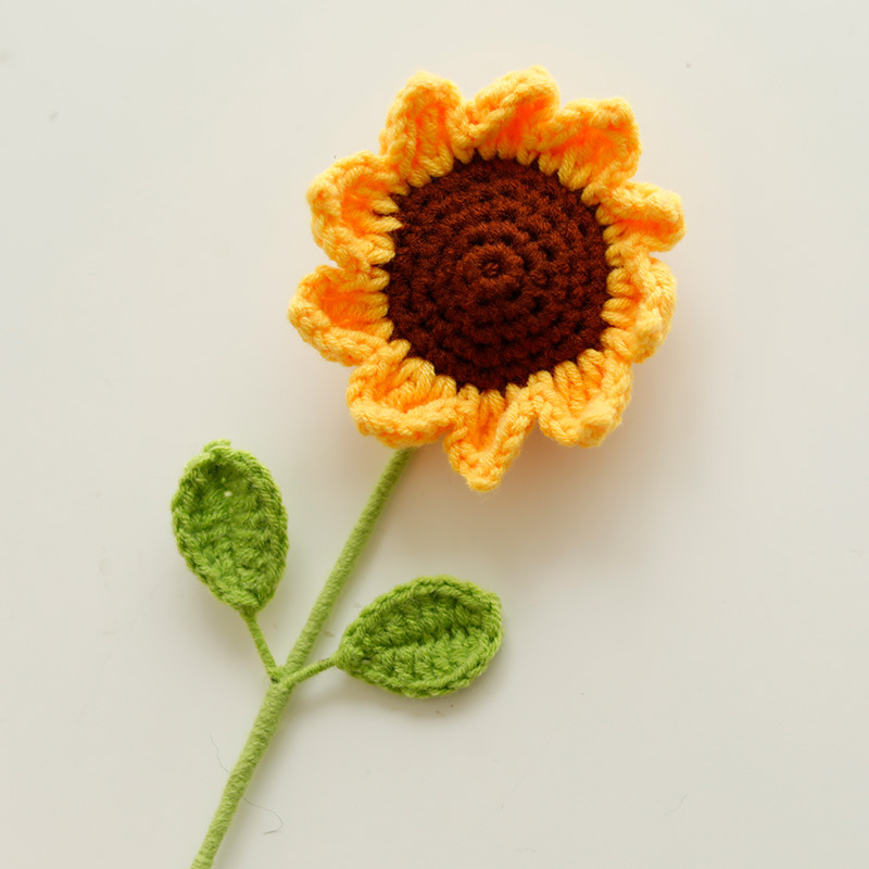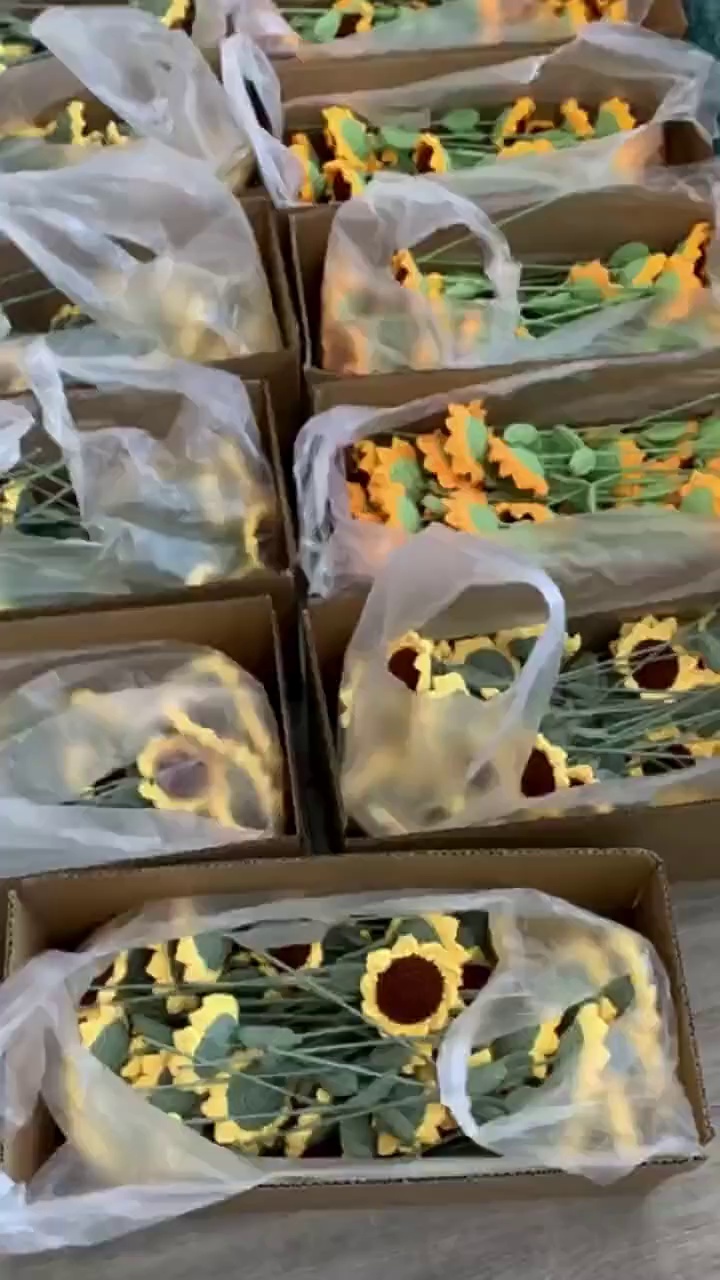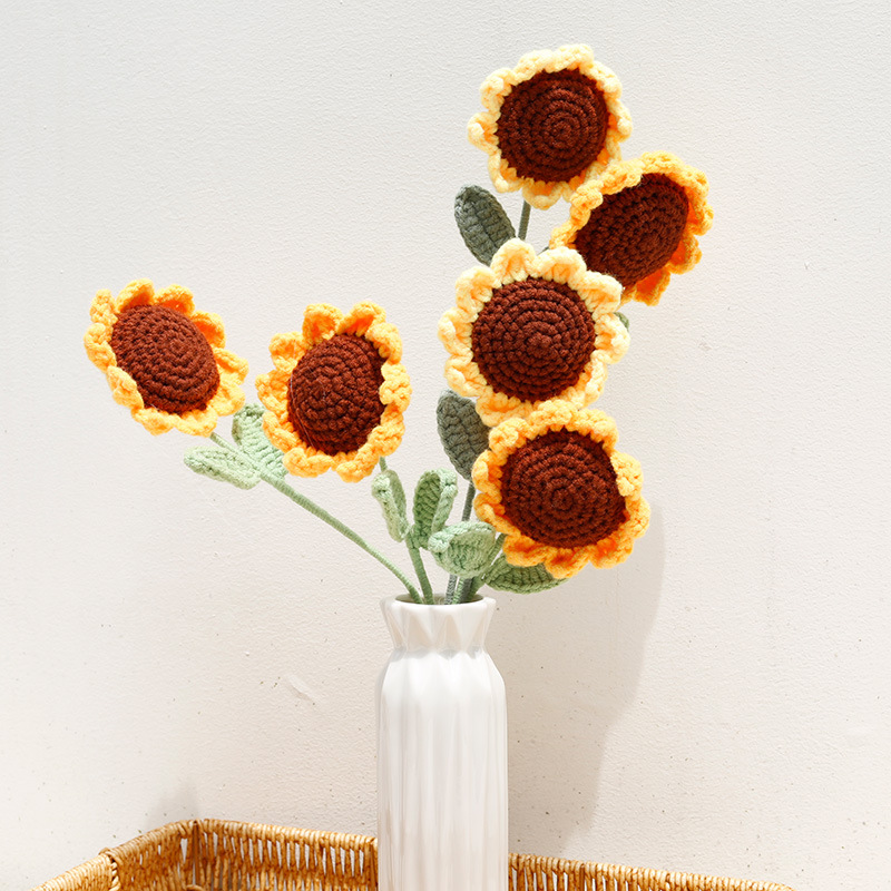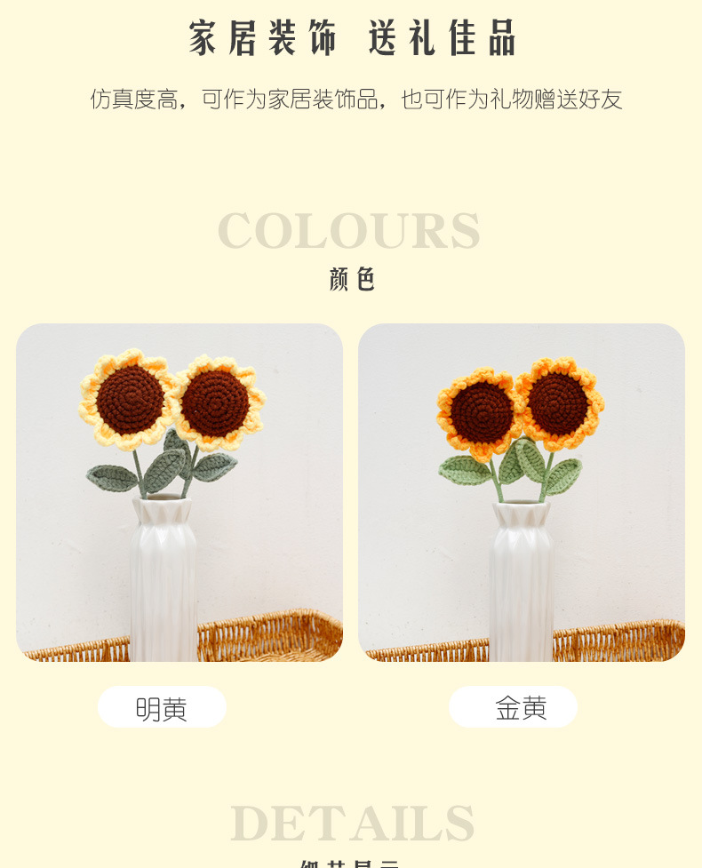 向日葵手工编织玫瑰花钩针毛线花仿真花编织钩织花束成品
