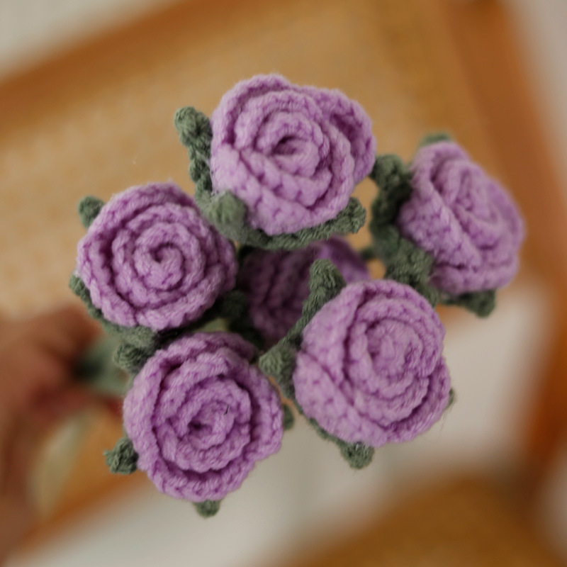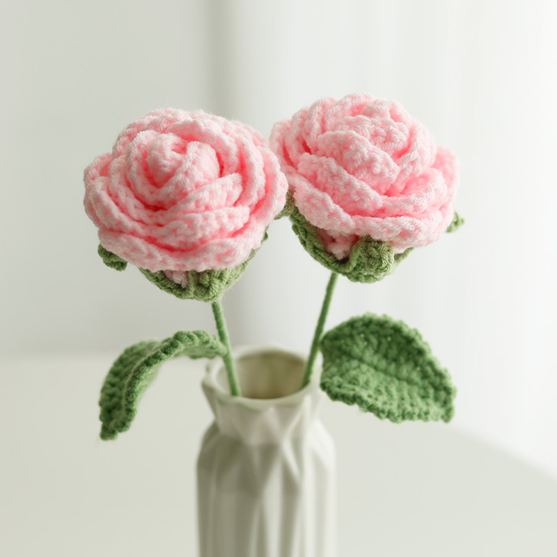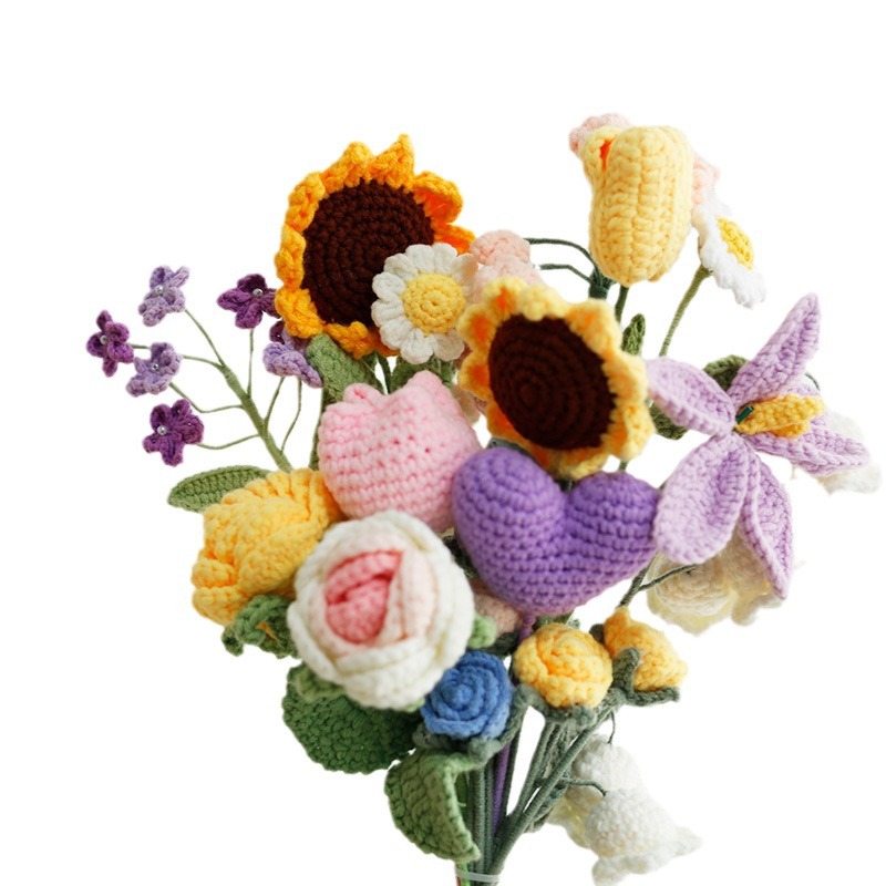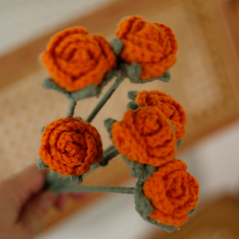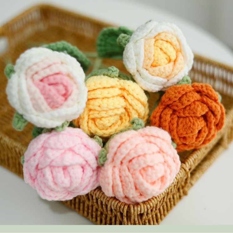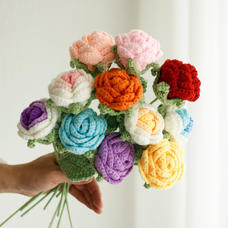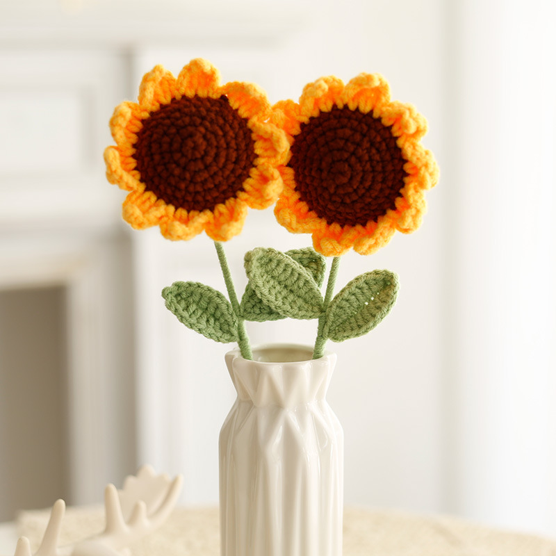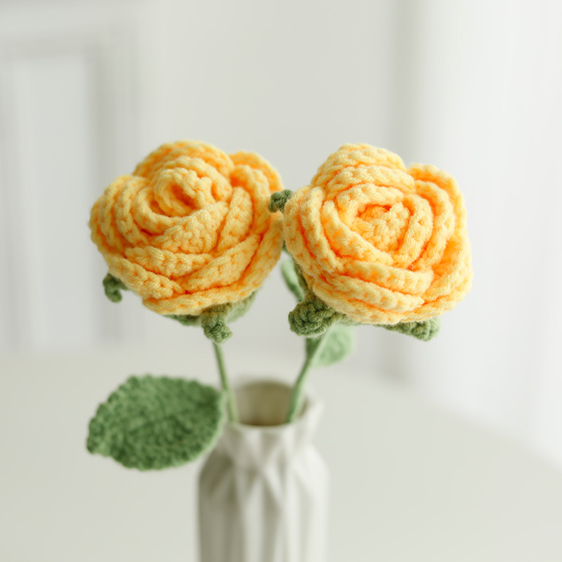 向日葵手工编织玫瑰花钩针毛线花仿真花编织钩织花束成品