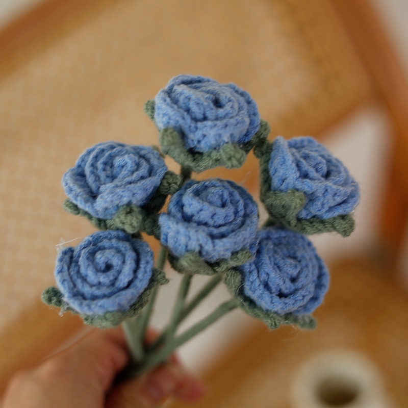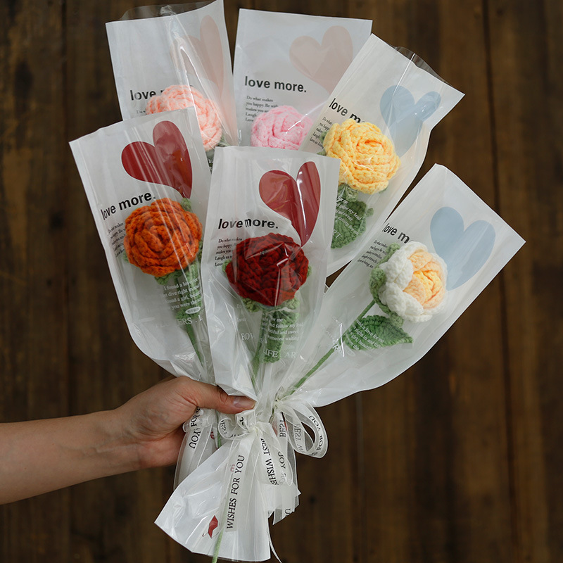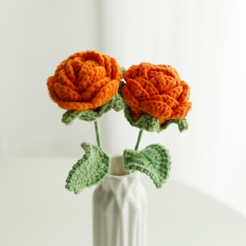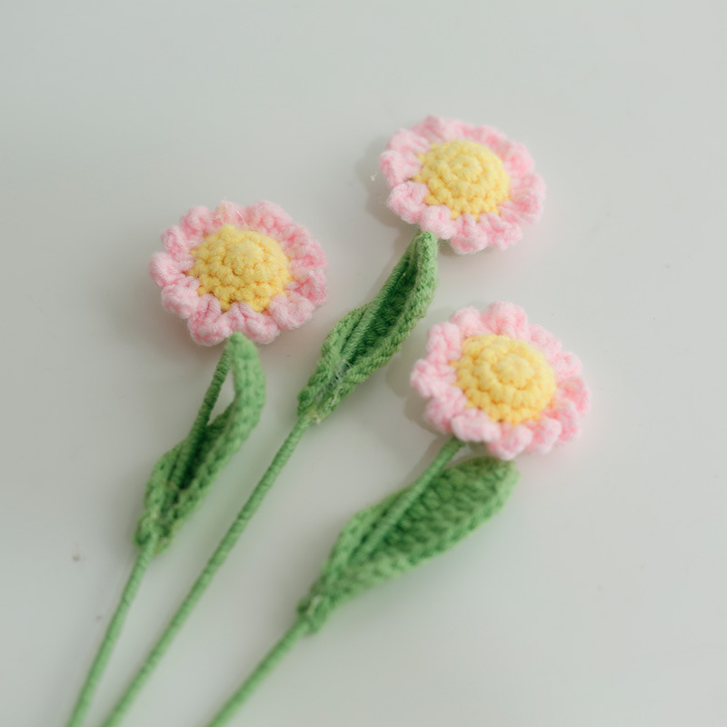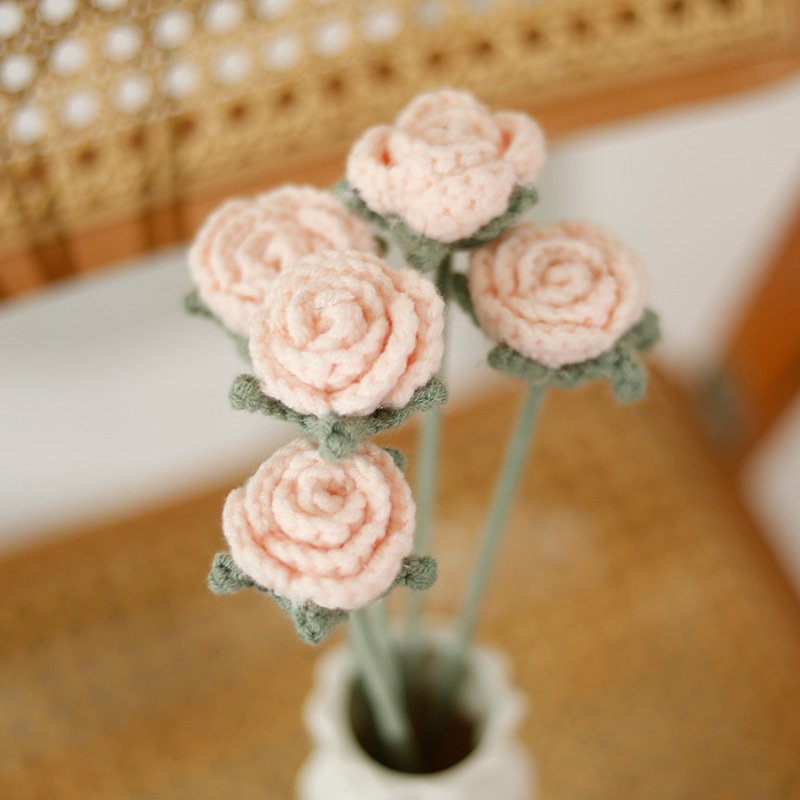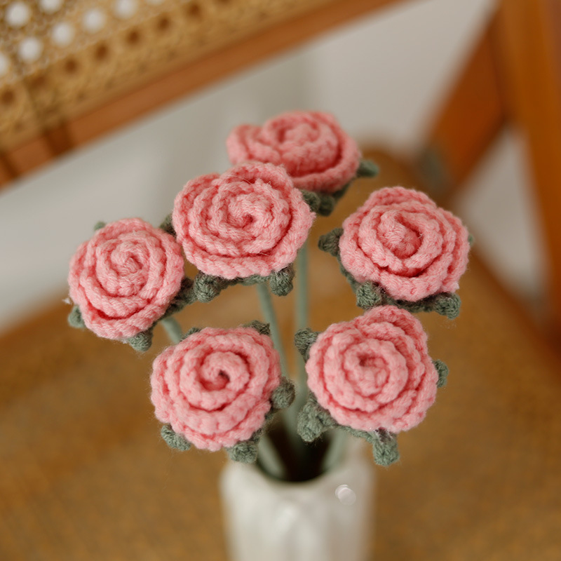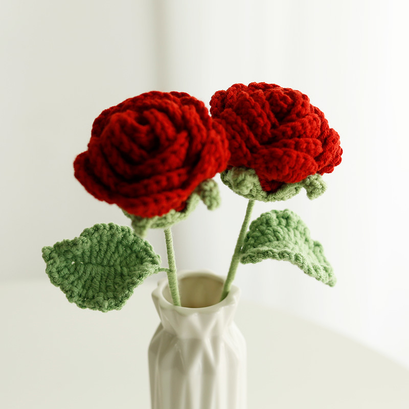 向日葵手工编织玫瑰花钩针毛线花仿真花编织钩织花束成品