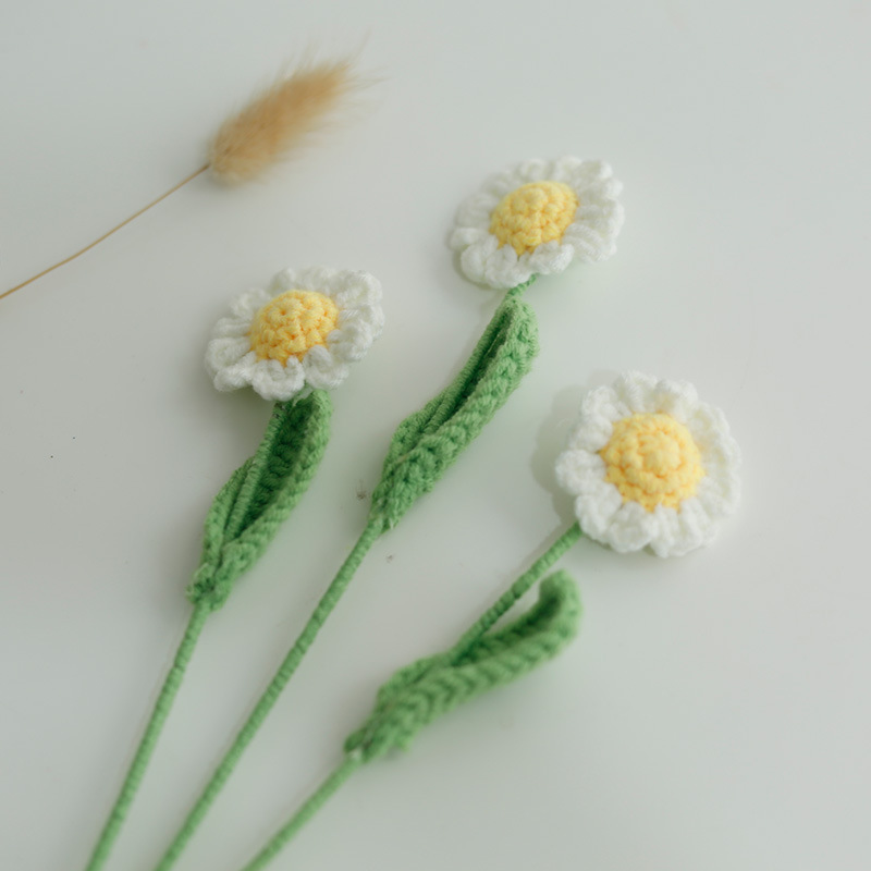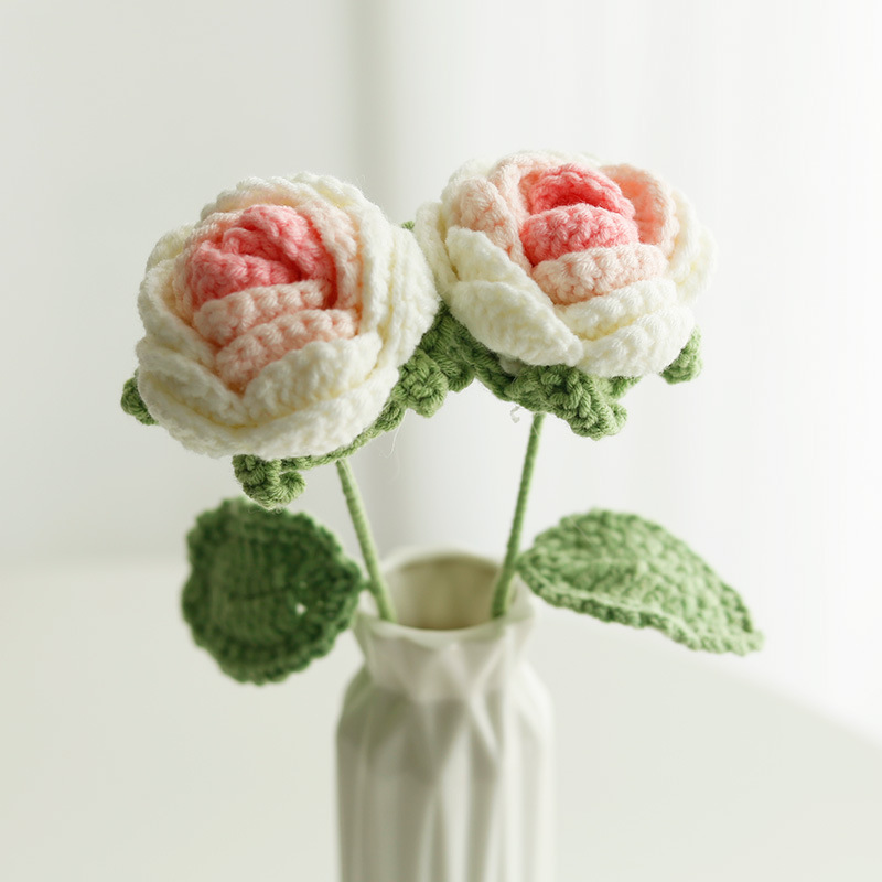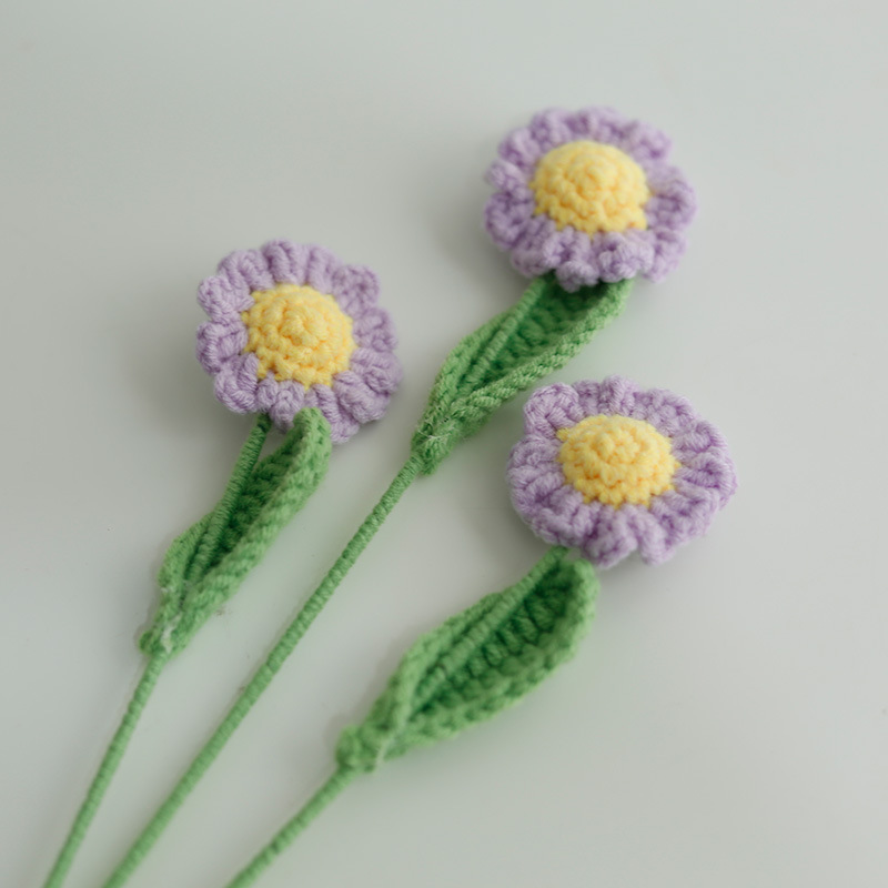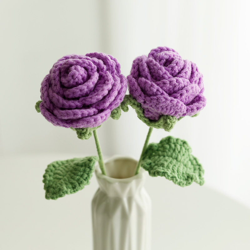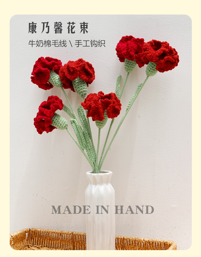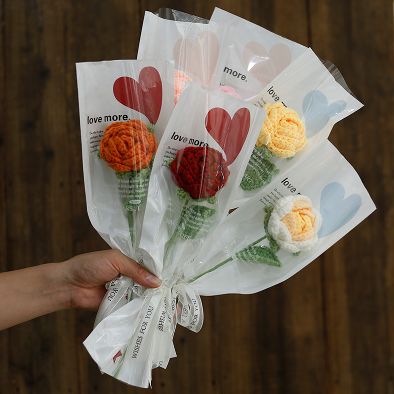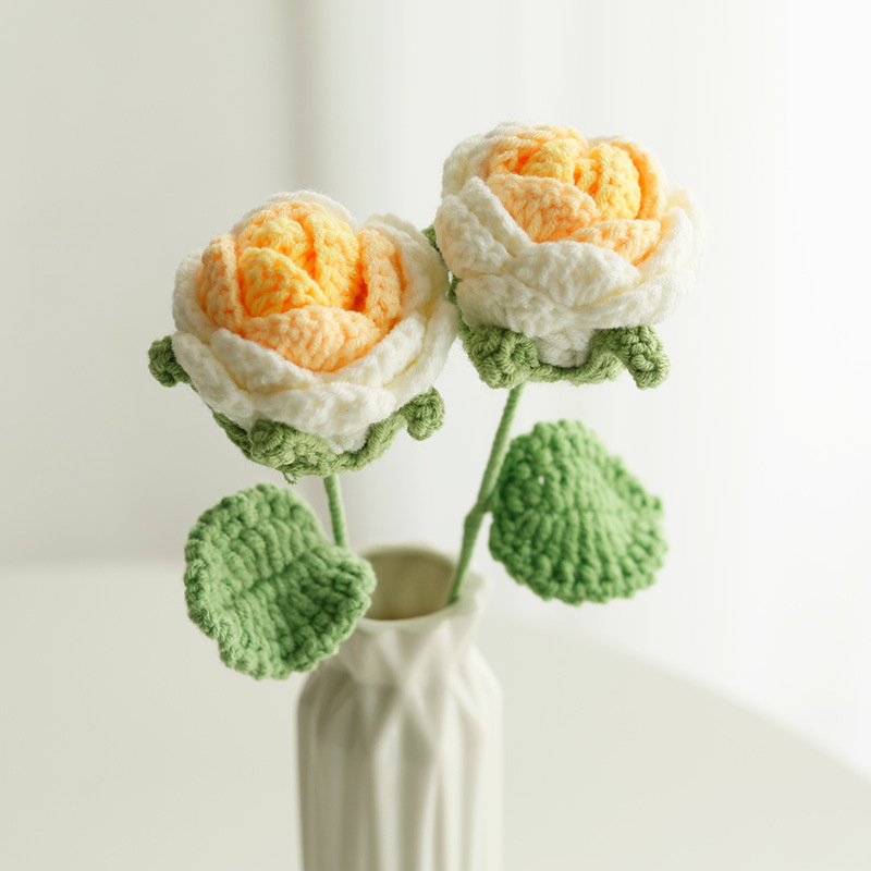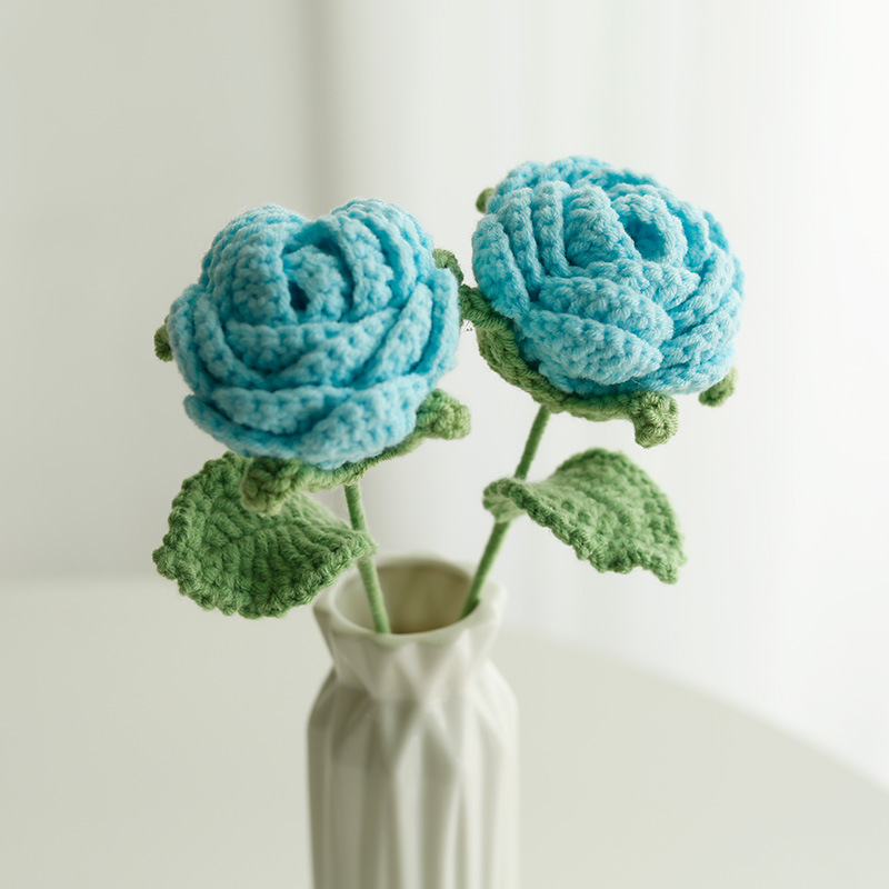 向日葵手工编织玫瑰花钩针毛线花仿真花编织钩织花束成品