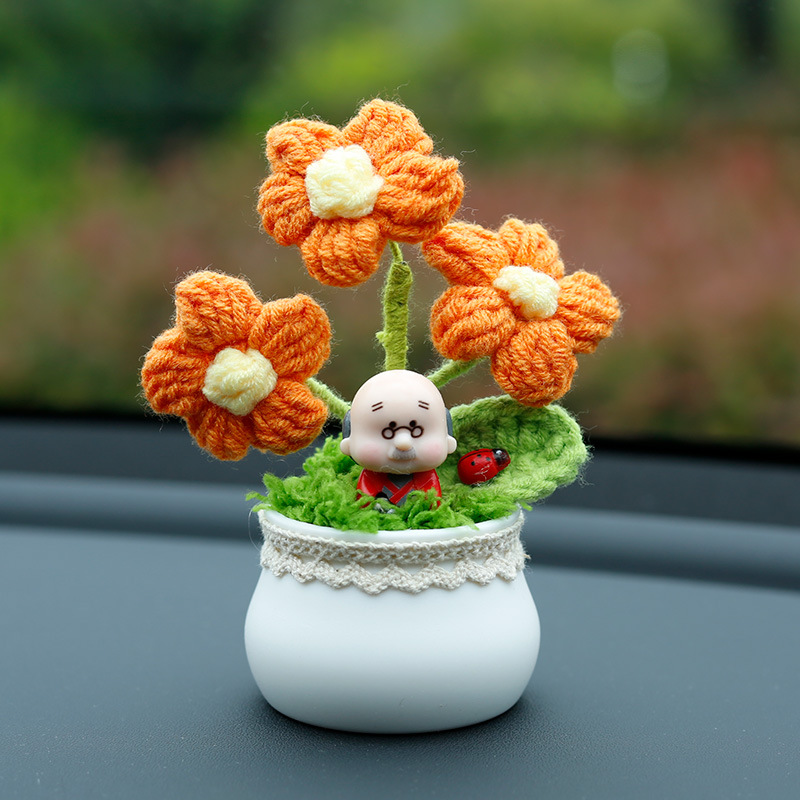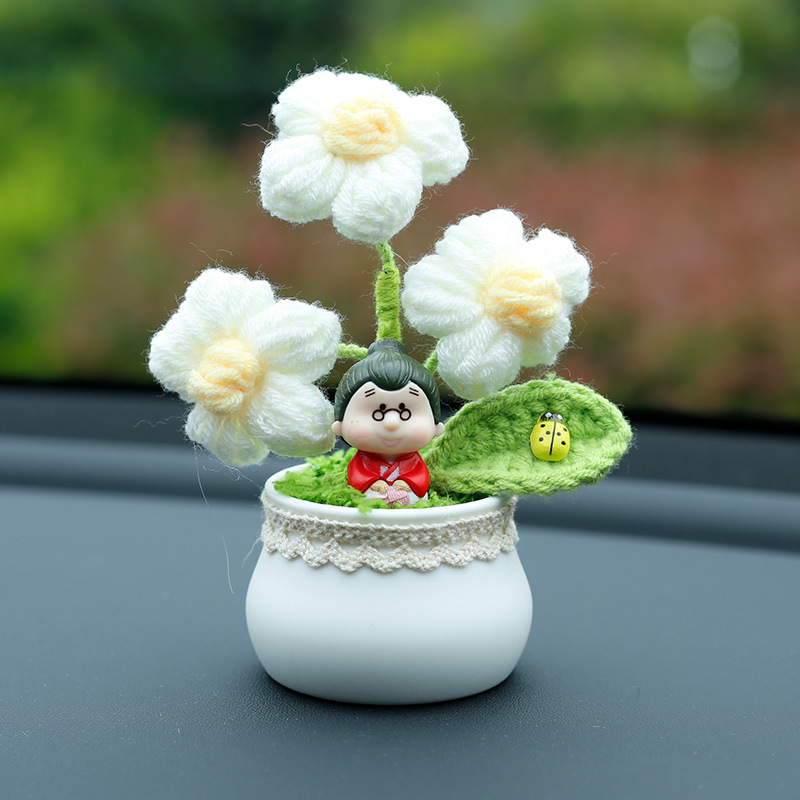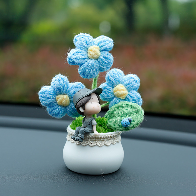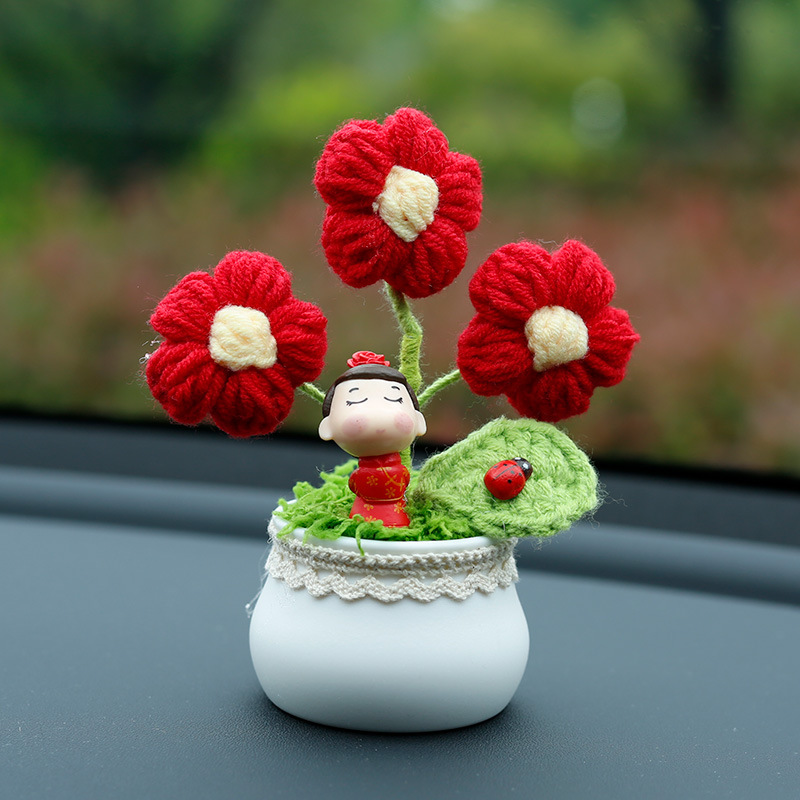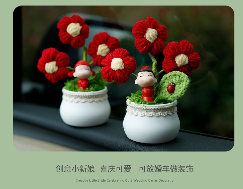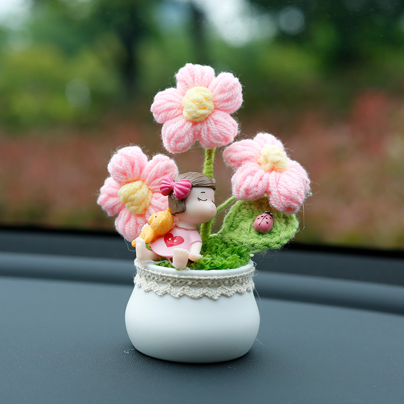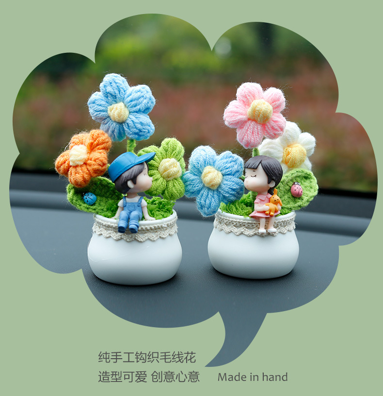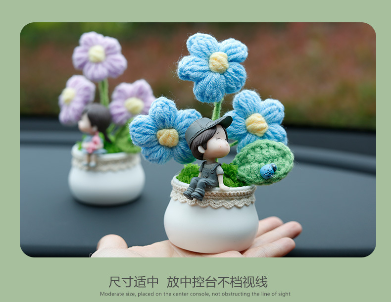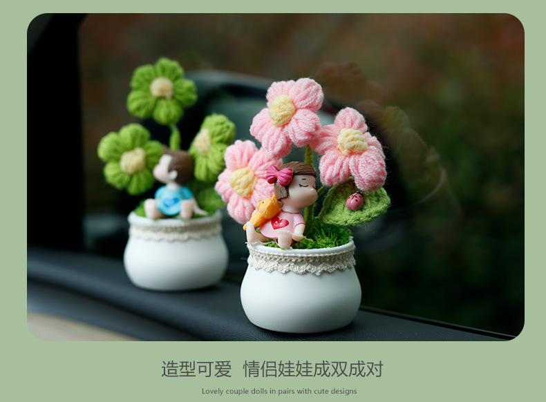 创意装饰汽车摆件车载车上车内装饰品可爱情侣女生编织花盆栽批发