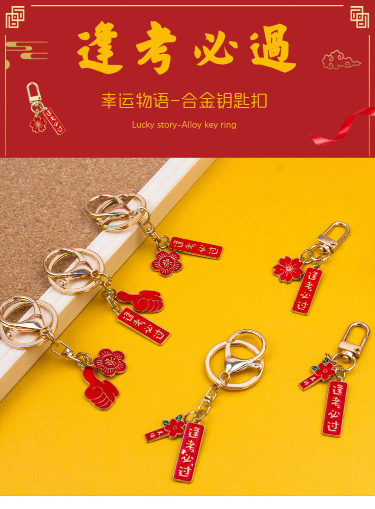2024创意文字逢考必过金属钥匙扣国风学生包包挂件吊坠文创小礼物