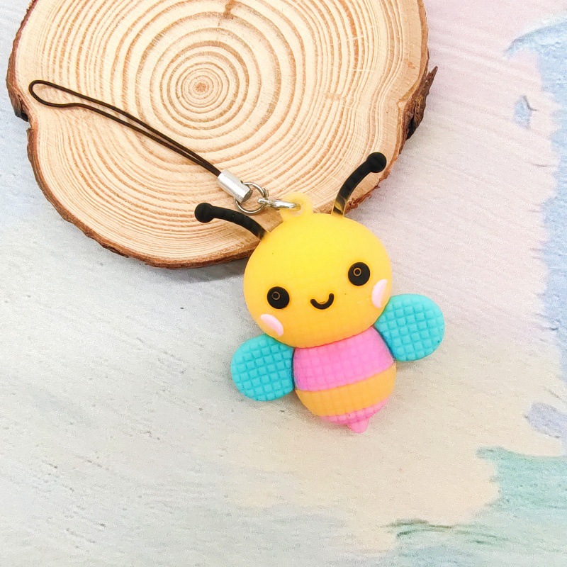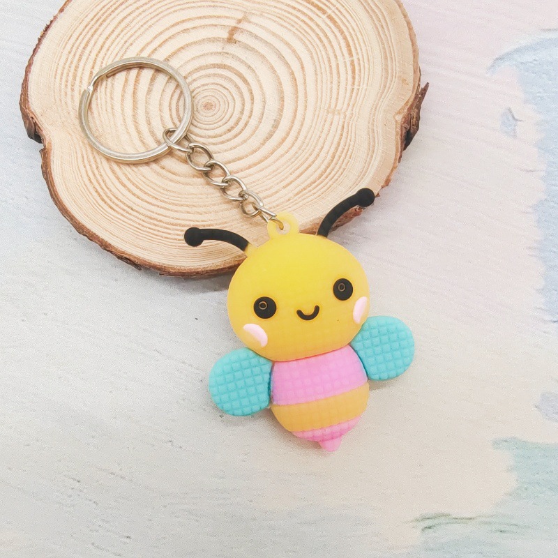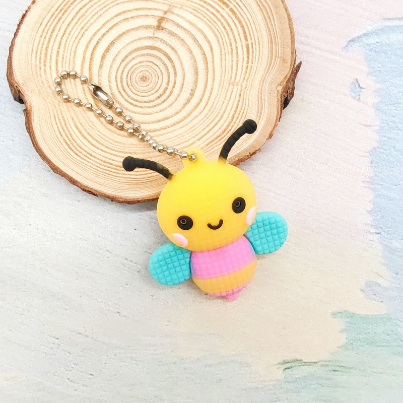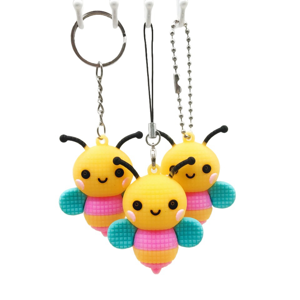 新款创意可爱卡通跨境热销粉色小蜜蜂钥匙扣背包手机小挂件小礼品