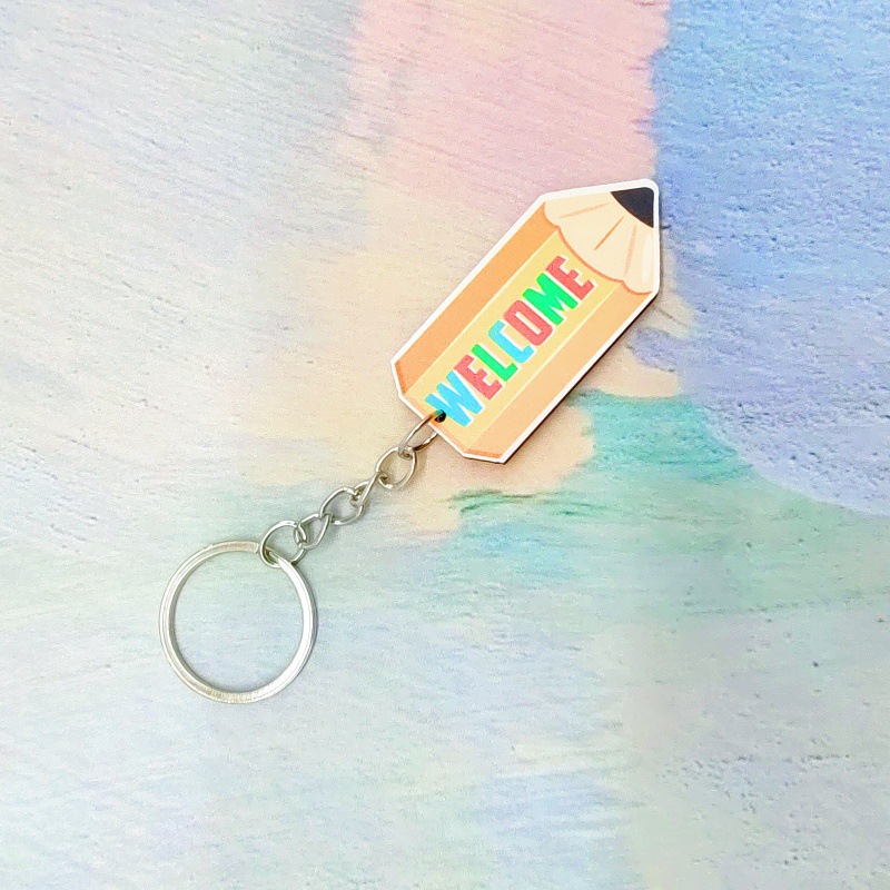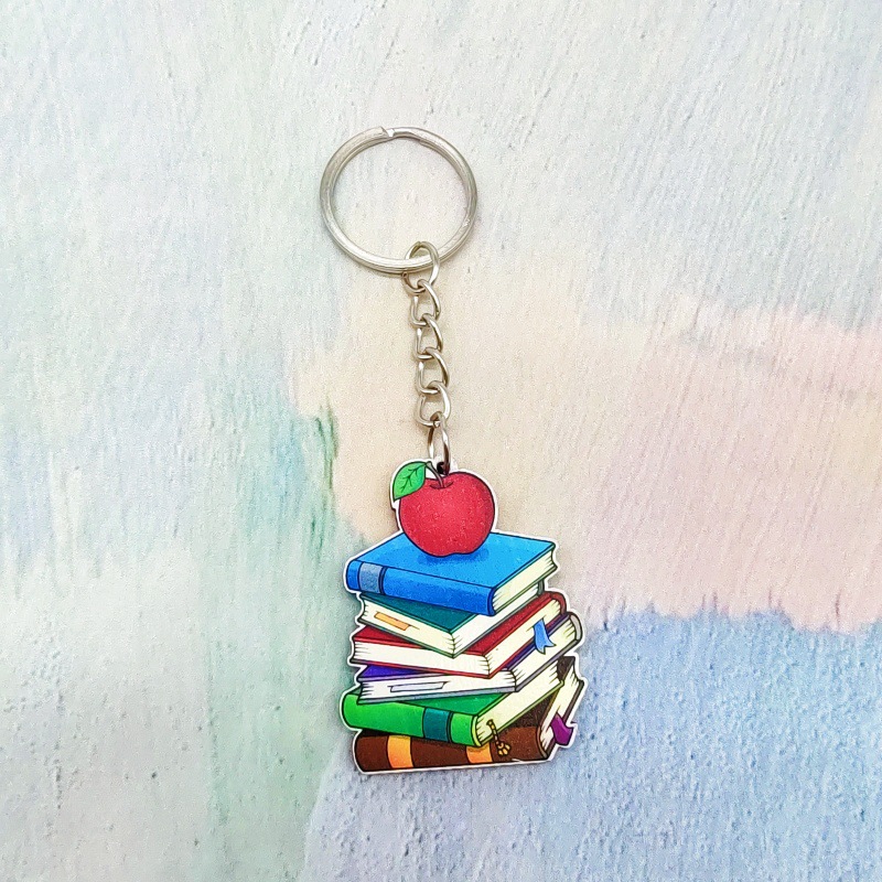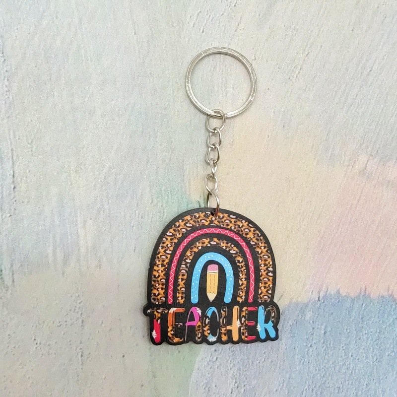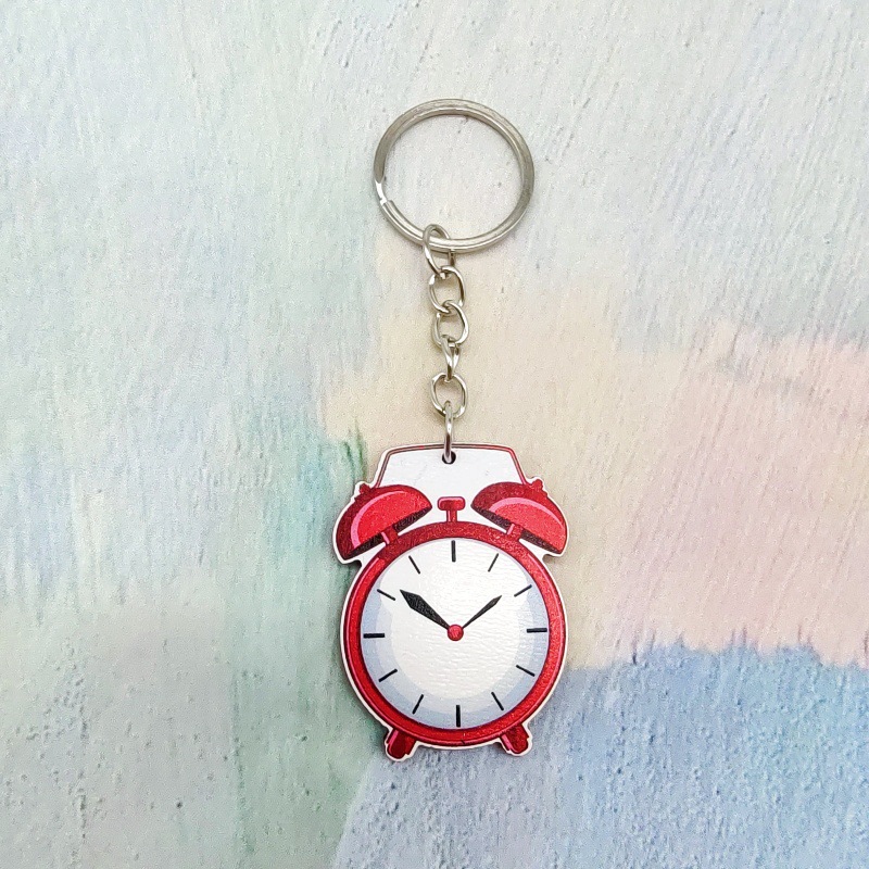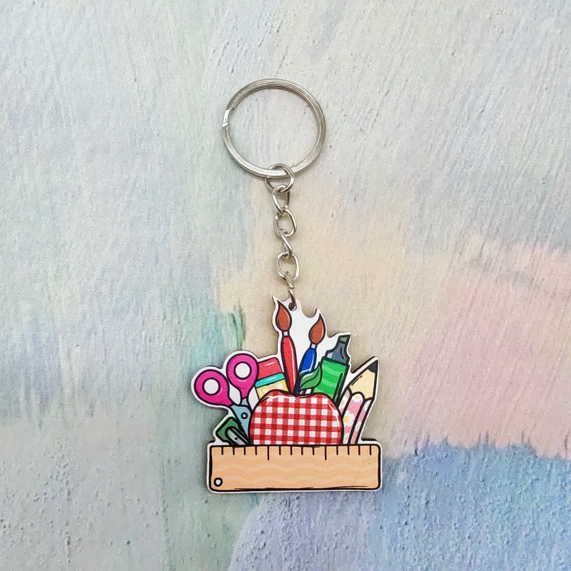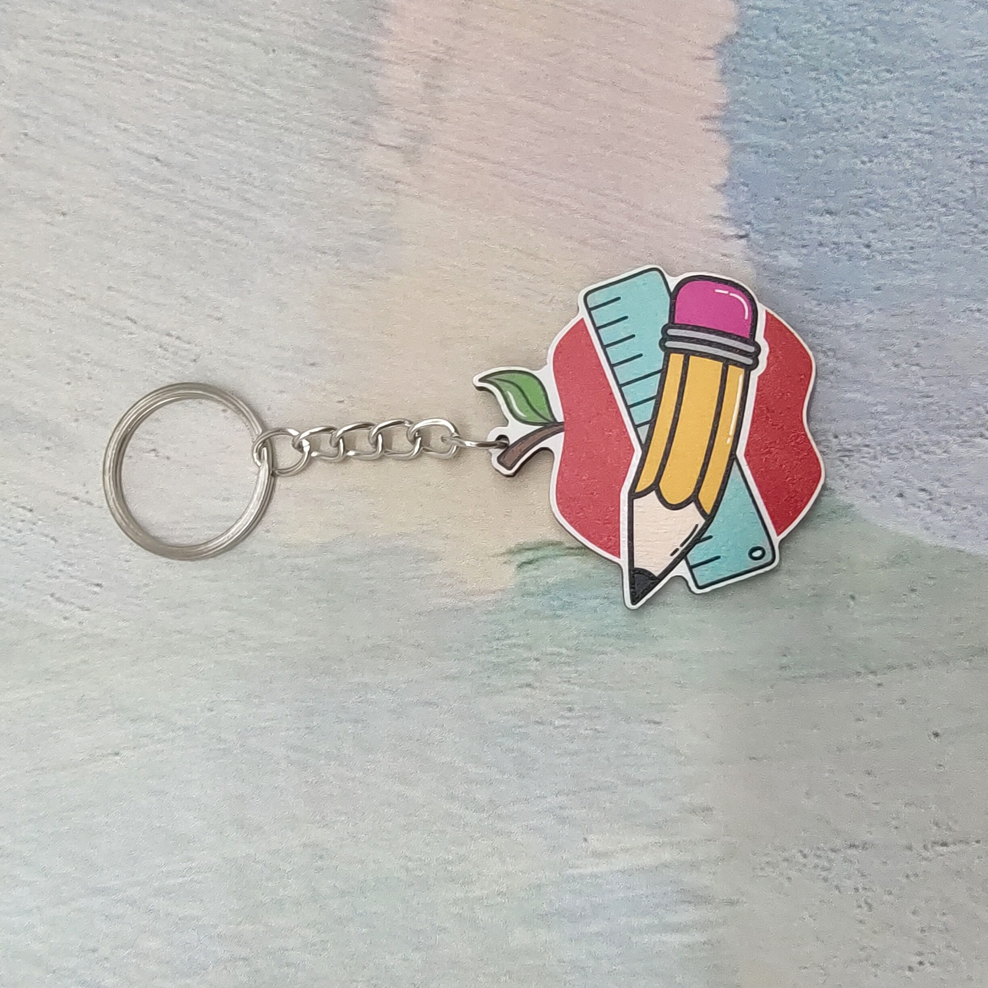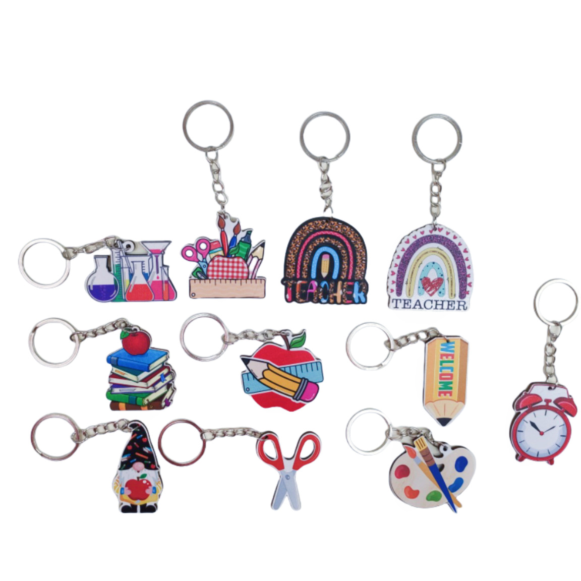 跨境爆款货源教师节木质印花铅笔闹钟钥匙扣挂件速卖通亚马逊