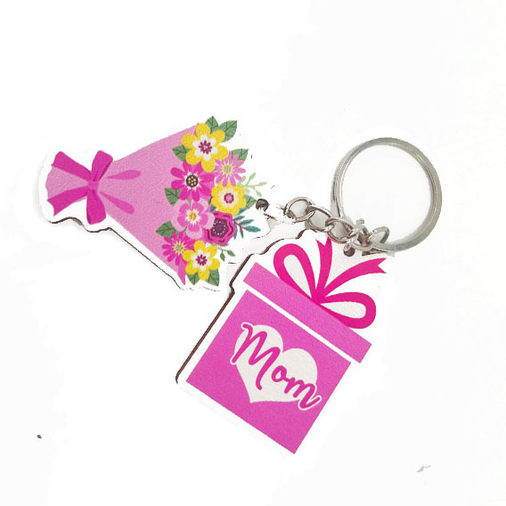 2024外贸新款粉色字母MAMA母亲节木牌钥匙扣礼盒花束挂件礼物