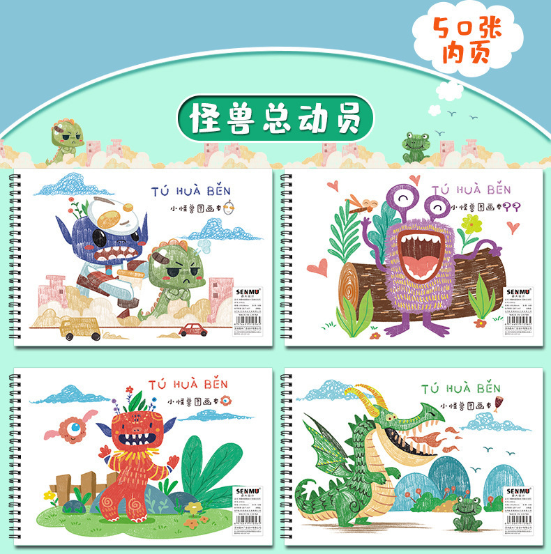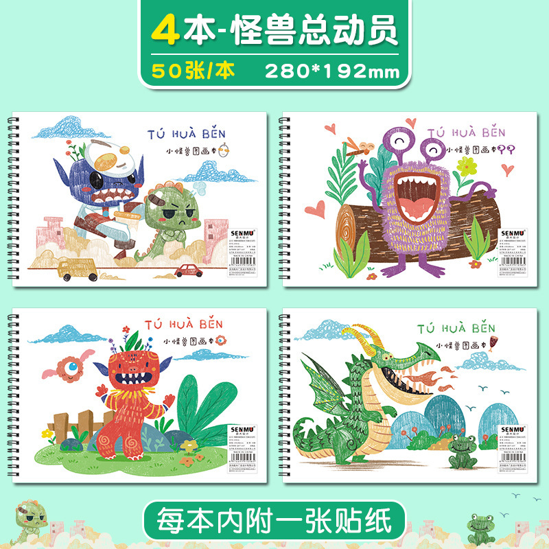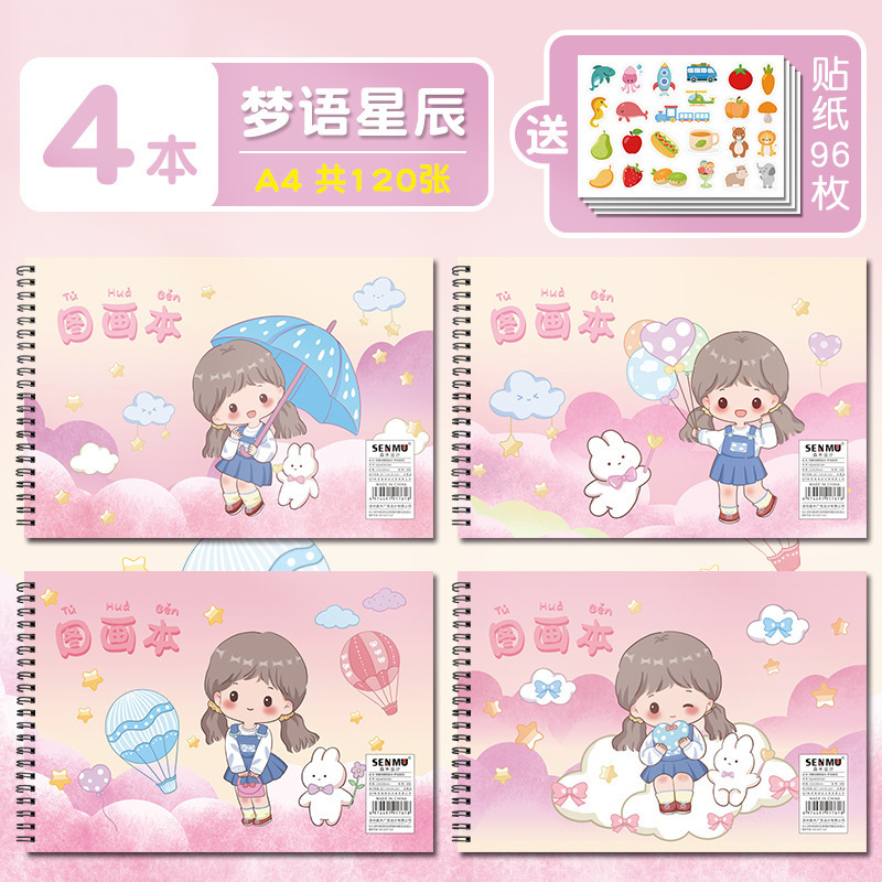 A4空白线圈绘画本 幼儿园儿童涂鸦画画本小学生美术生素描图画本