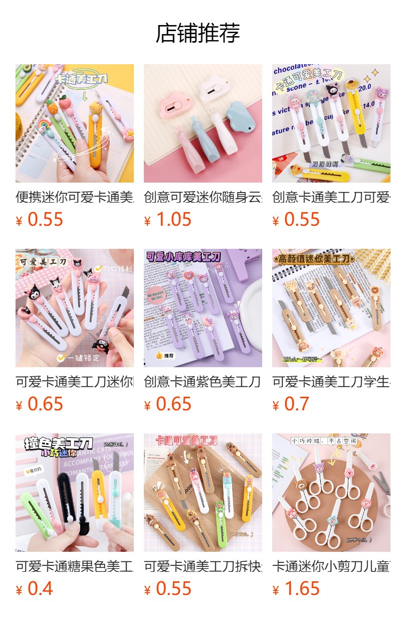 卡通迷你美工刀学生手账用裁纸刀文具手工刀拆快递小刀壁纸刀批发