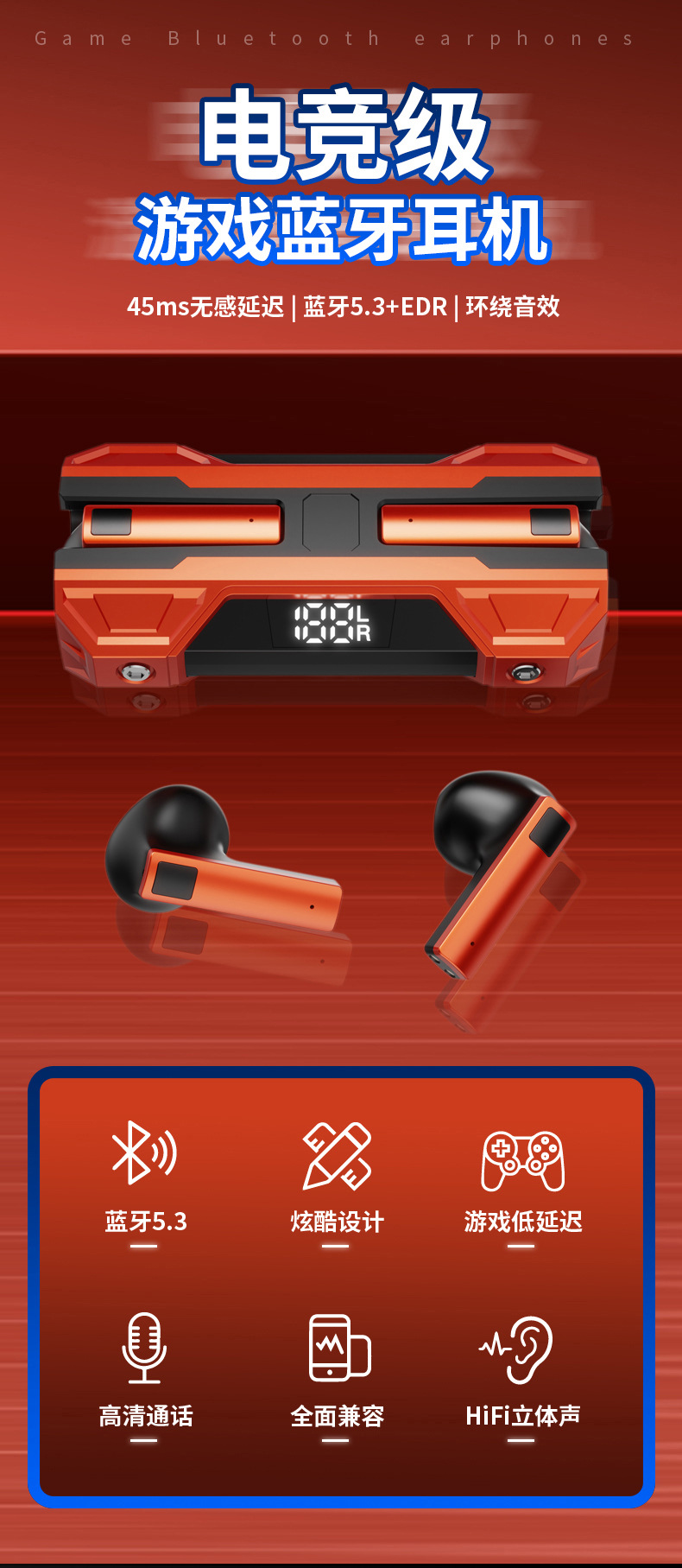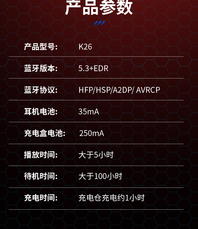 跨境爆款K26无线蓝牙耳机机甲风炫酷入耳式长续航低延迟佩戴舒适