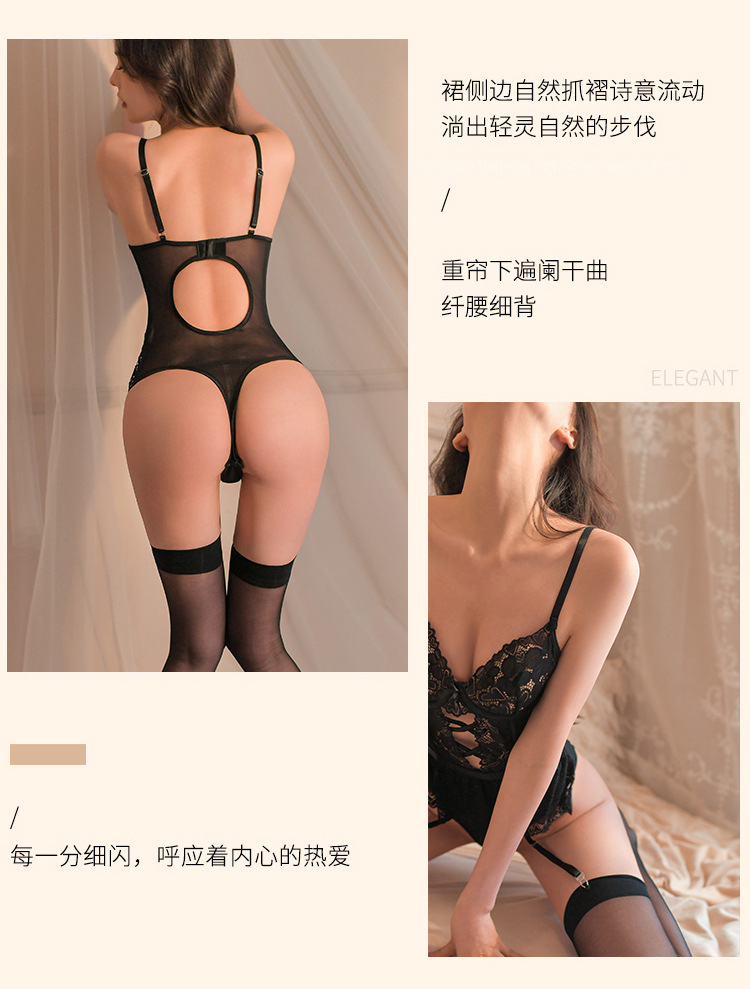 内销热款情趣内衣纯欲免脱开档诱惑蕾丝制服套装批发7086