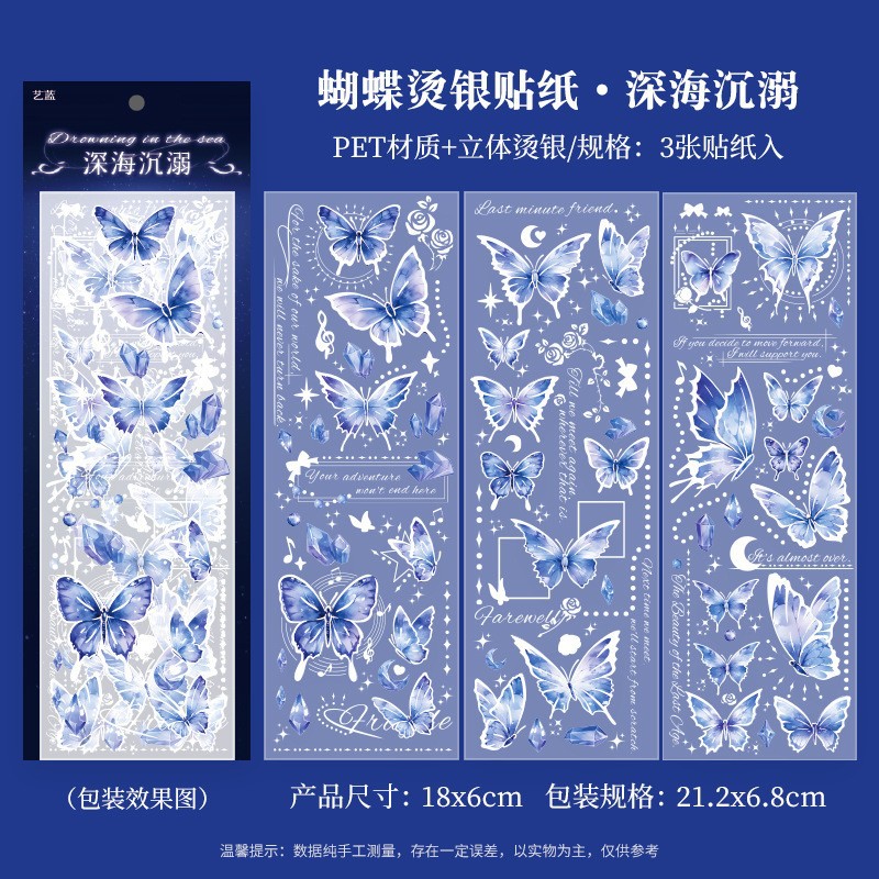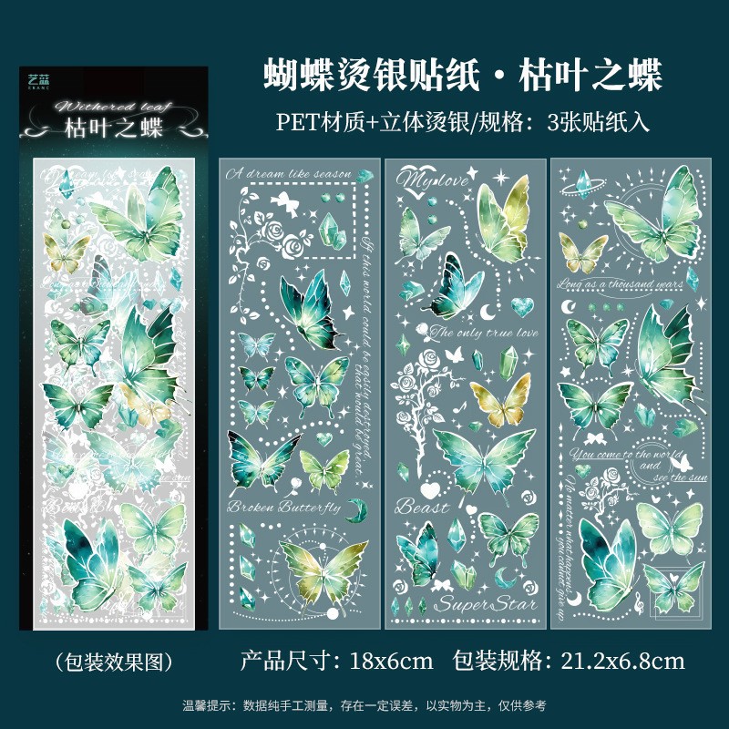炫彩烫金蝴蝶系列PET贴纸包立体镭射咕卡流麻手帐DIY装饰素材贴画