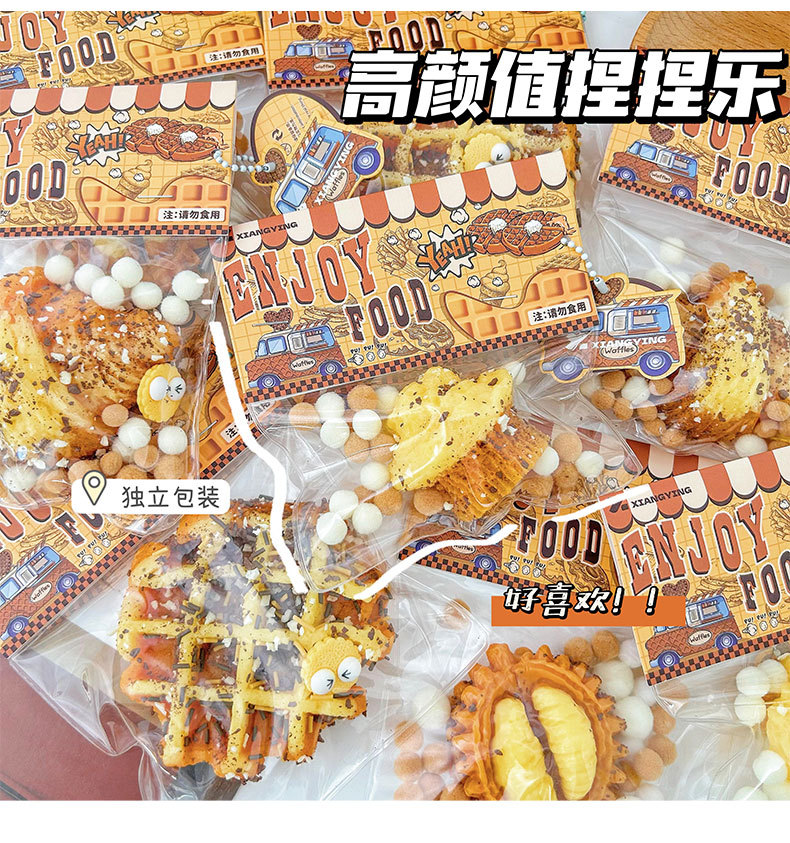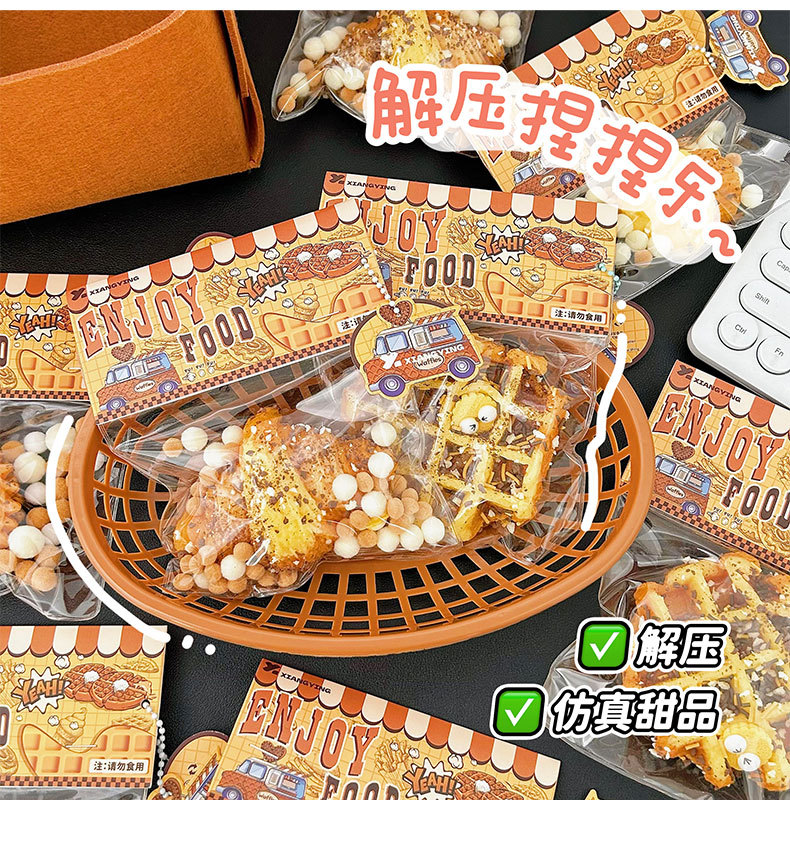 创意仿真食物捏捏乐解压玩具爆款华夫饼学生可爱过家家减压捏捏