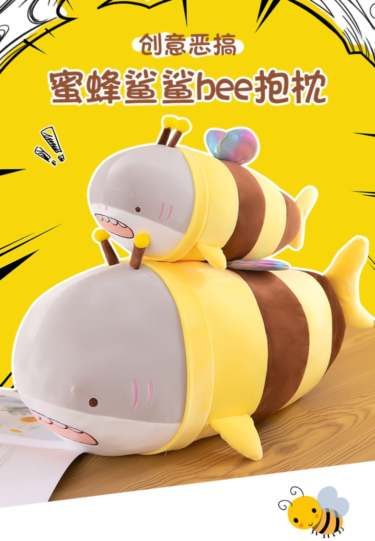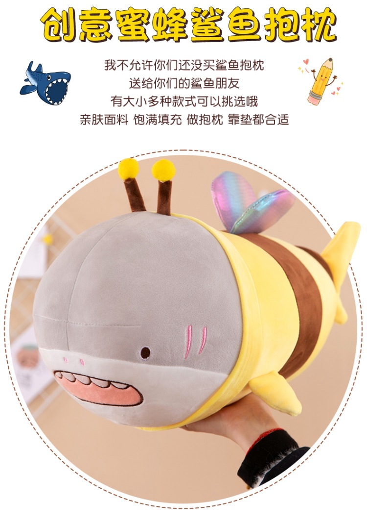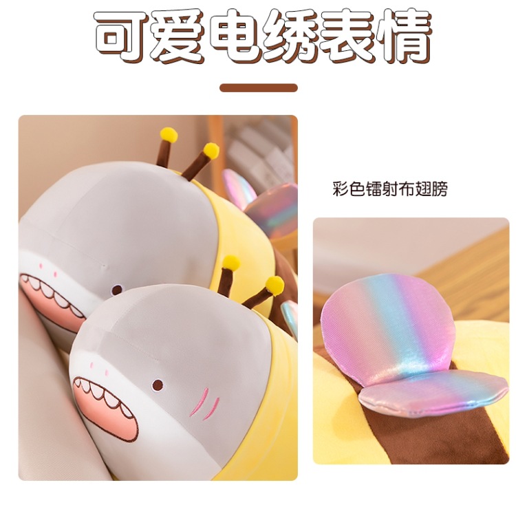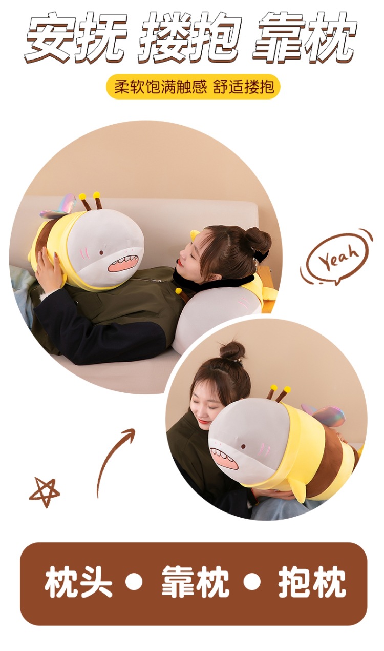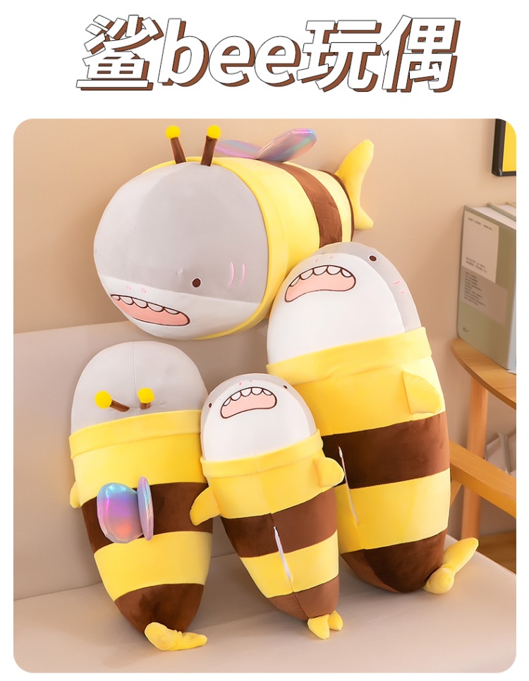 卡通鲨鱼公仔毛绒玩具谐音梗鲨bee公仔客厅靠垫床上抱睡腰靠礼物
