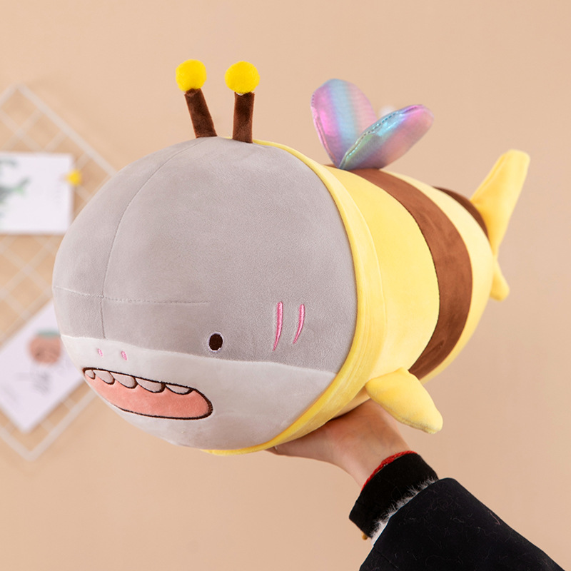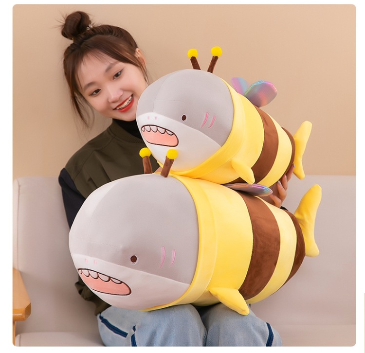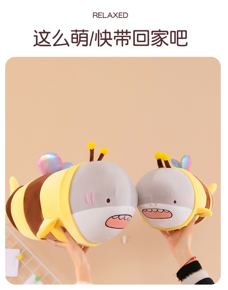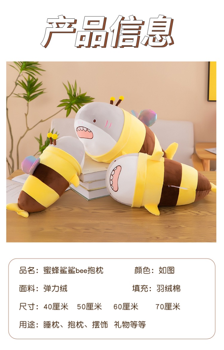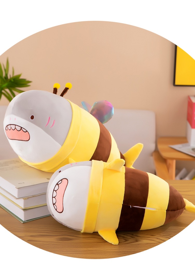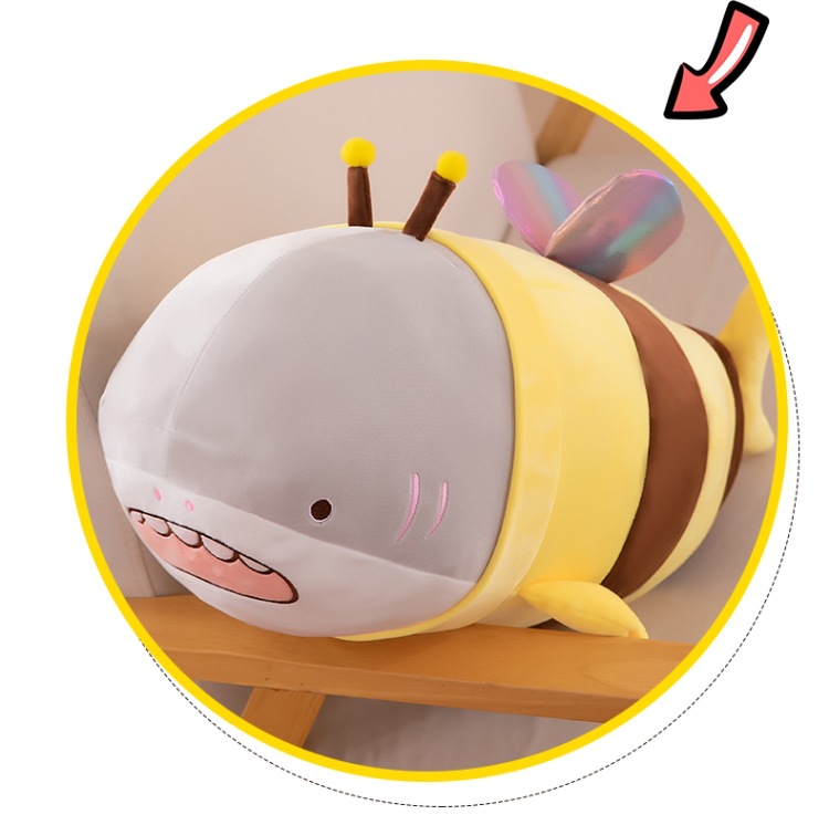 卡通鲨鱼公仔毛绒玩具谐音梗鲨bee公仔客厅靠垫床上抱睡腰靠礼物