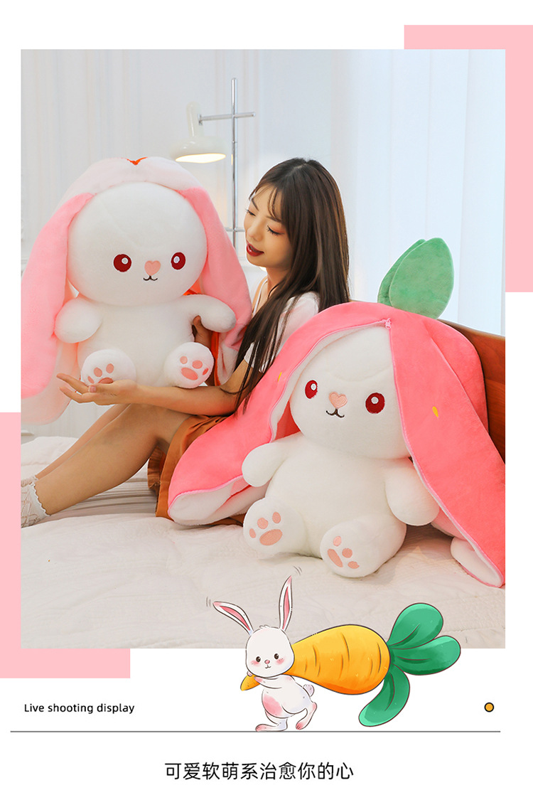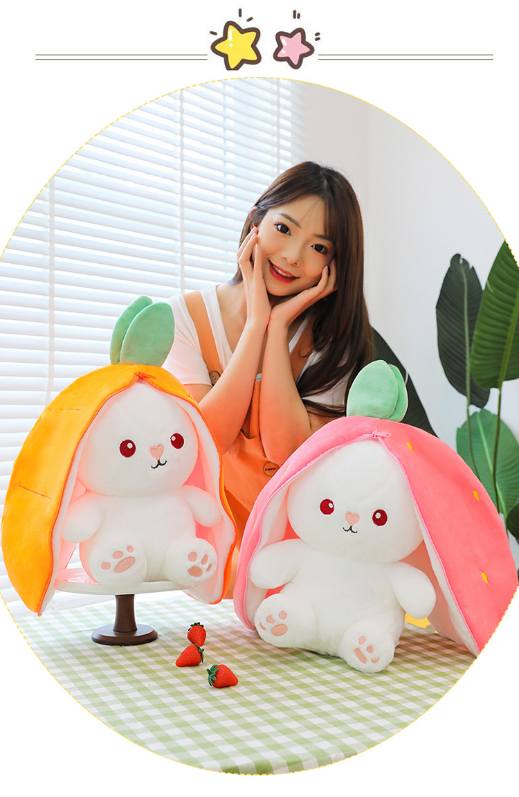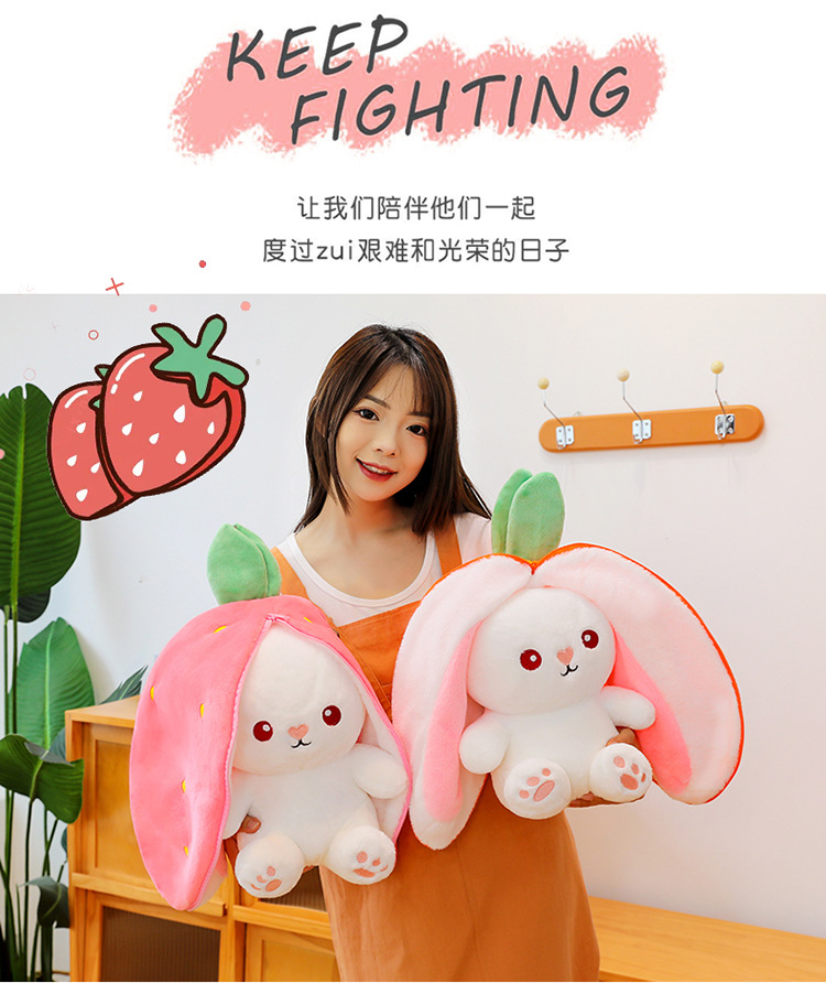 草莓兔子变身小兔子玩偶公仔布偶胡萝卜兔兔毛绒娃娃陪伴外贸批发